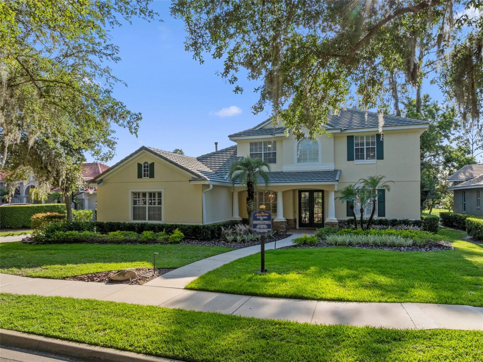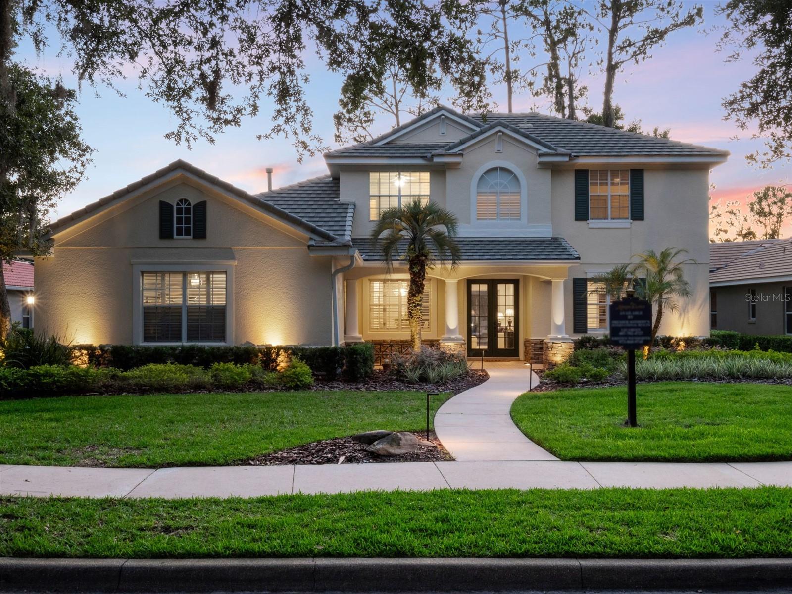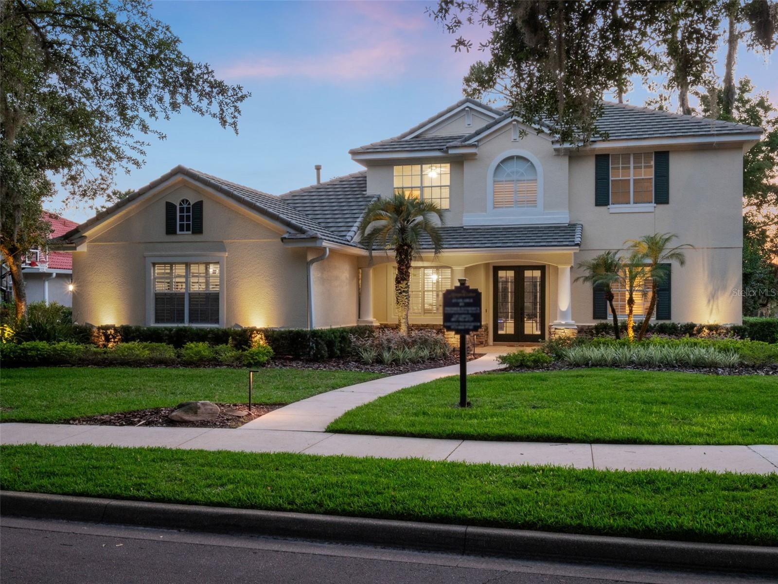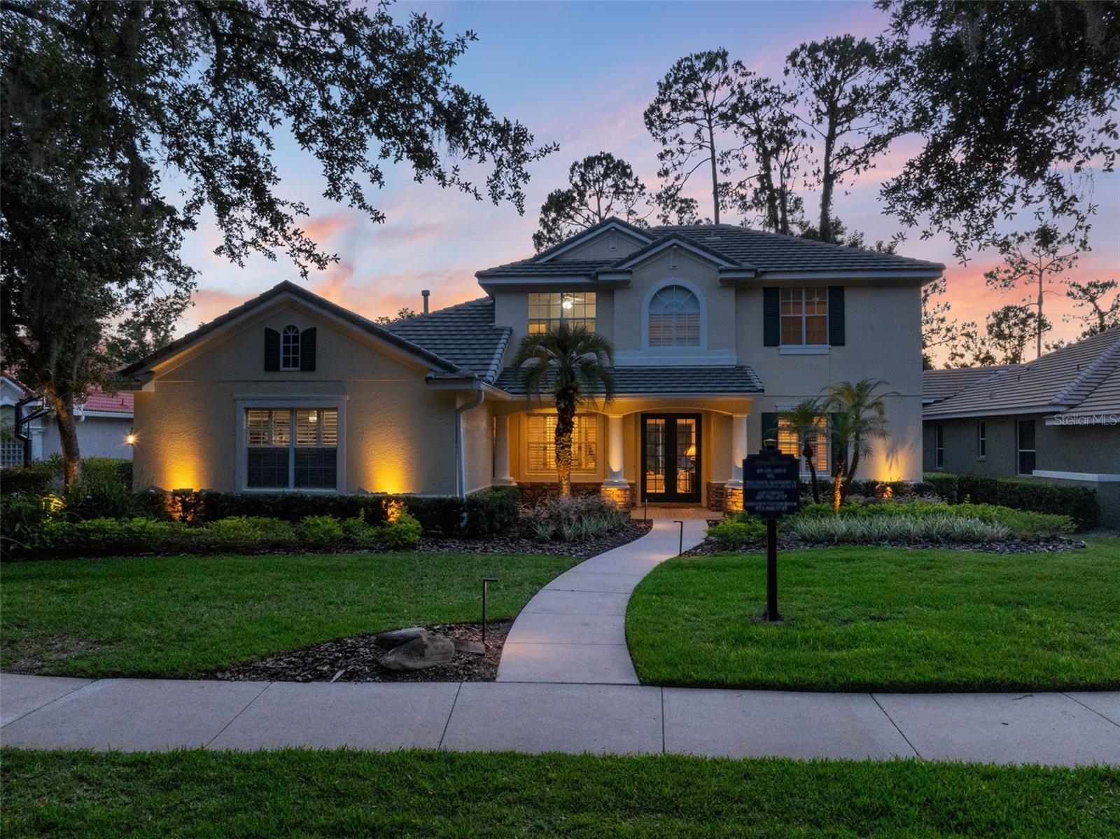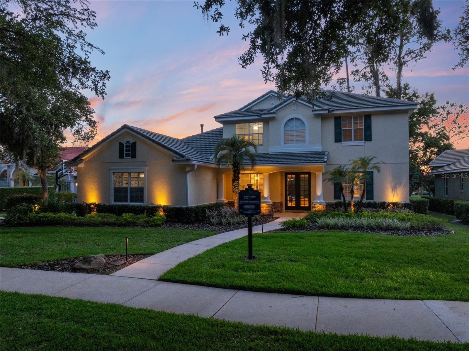 Brand new roof finished May 2025!!! Welcome to this exceptional home, set on one of the desirable lots in Alaqua Lakes with sweeping golf and water views, and stunning sunsets every evening. On a quiet cut-de-sac, this home offers timeless elegance, upscale finishes, and a classic, traditional floor plan, ideal for refined family living. The spacious primary suite is conveniently on the main floor, offering peaceful views and luxurious comfort. The additional bedrooms and bonus loft upstairs provide a retreat for family or guests. Step outside to your private outdoor sanctuary - complete with a resort-style pool and spa. Pool equipment including control panel, chlorinator, pump, gas heater, and lights were replaced in 2022. The patio pavers were pulled up and re-sanded in 2024. Also includes a new roof with May install. Alaqua Lakes is one of Central Florida's sought-after communities, offering unparalleled lifestyle with resort-style amenities, including a seven-acre park, five Har-Tru clay tennis courts, sand volleyball, playground, basketball and a stunning community pool. Golf enthusiasts will appreciate the proximity to the private Heathrow Legacy Golf & Country Club. Experience the ultimate in luxury, privacy and security, just minutes from upscale dining, top-rated schools, boutique shopping and major highways. You will not find better value in such a desirable community!