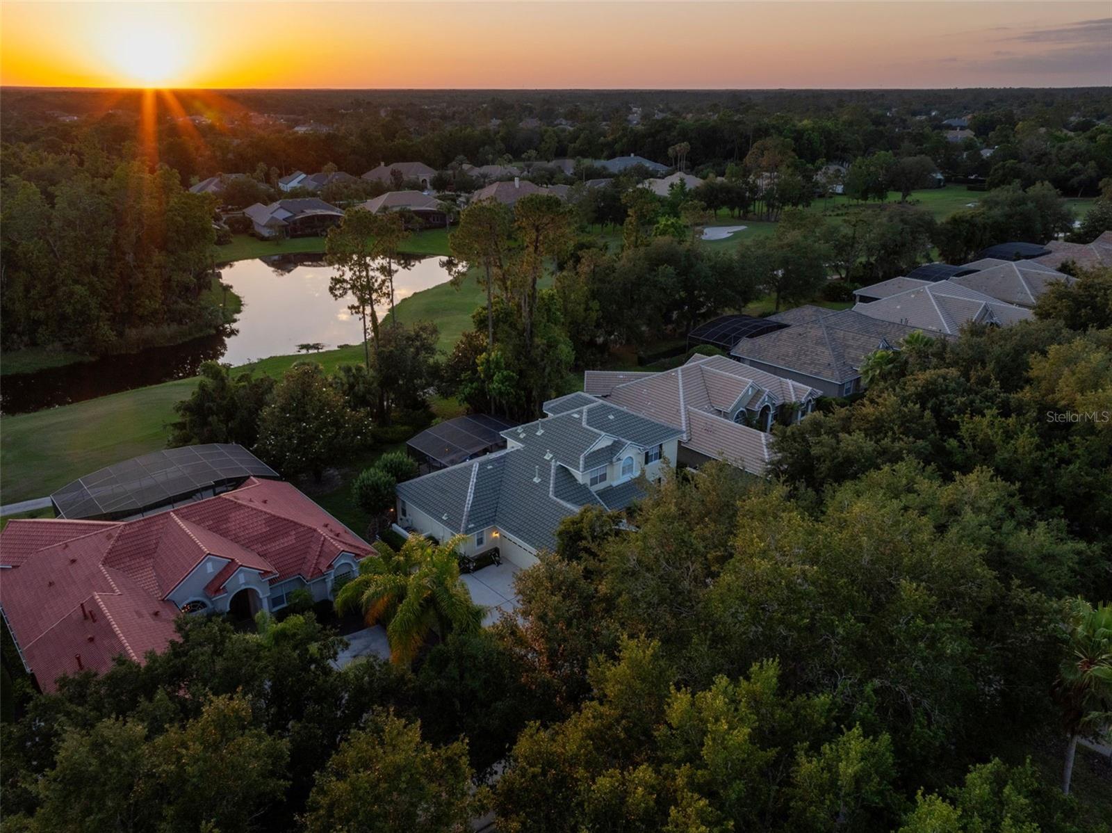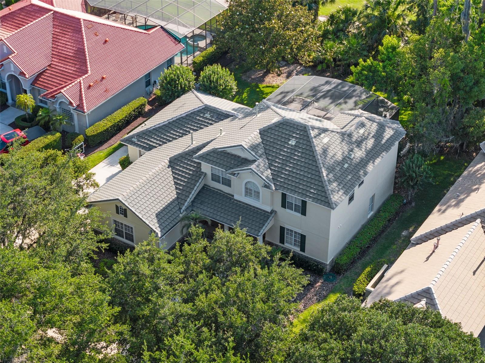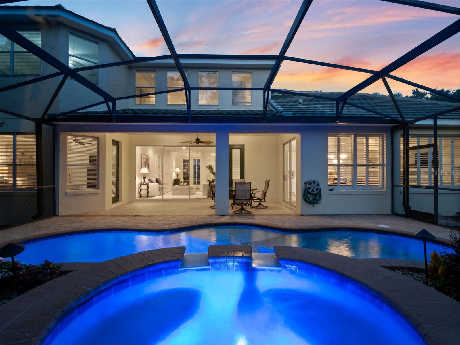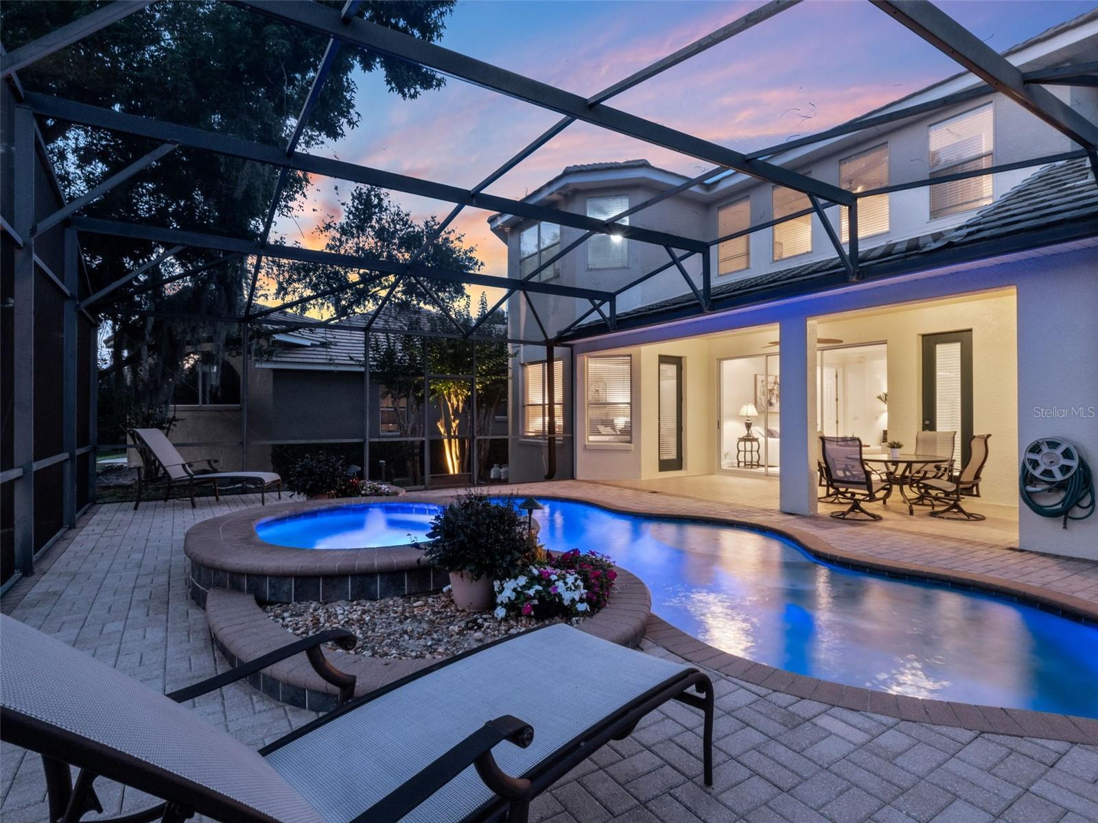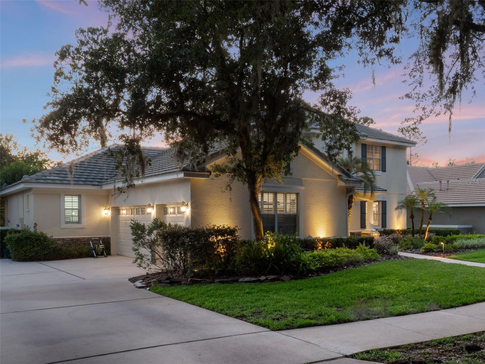 Brand new roof finished May 2025!!! Welcome to this exceptional home, set on one of the desirable lots in Alaqua Lakes with sweeping golf and water views, and stunning sunsets every evening. On a quiet cut-de-sac, this home offers timeless elegance, upscale finishes, and a classic, traditional floor plan, ideal for refined family living. The spacious primary suite is conveniently on the main floor, offering peaceful views and luxurious comfort. The additional bedrooms and bonus loft upstairs provide a retreat for family or guests. Step outside to your private outdoor sanctuary - complete with a resort-style pool and spa. Pool equipment including control panel, chlorinator, pump, gas heater, and lights were replaced in 2022. The patio pavers were pulled up and re-sanded in 2024. Also includes a new roof with May install. Alaqua Lakes is one of Central Florida's sought-after communities, offering unparalleled lifestyle with resort-style amenities, including a seven-acre park, five Har-Tru clay tennis courts, sand volleyball, playground, basketball and a stunning community pool. Golf enthusiasts will appreciate the proximity to the private Heathrow Legacy Golf & Country Club. Experience the ultimate in luxury, privacy and security, just minutes from upscale dining, top-rated schools, boutique shopping and major highways. You will not find better value in such a desirable community!