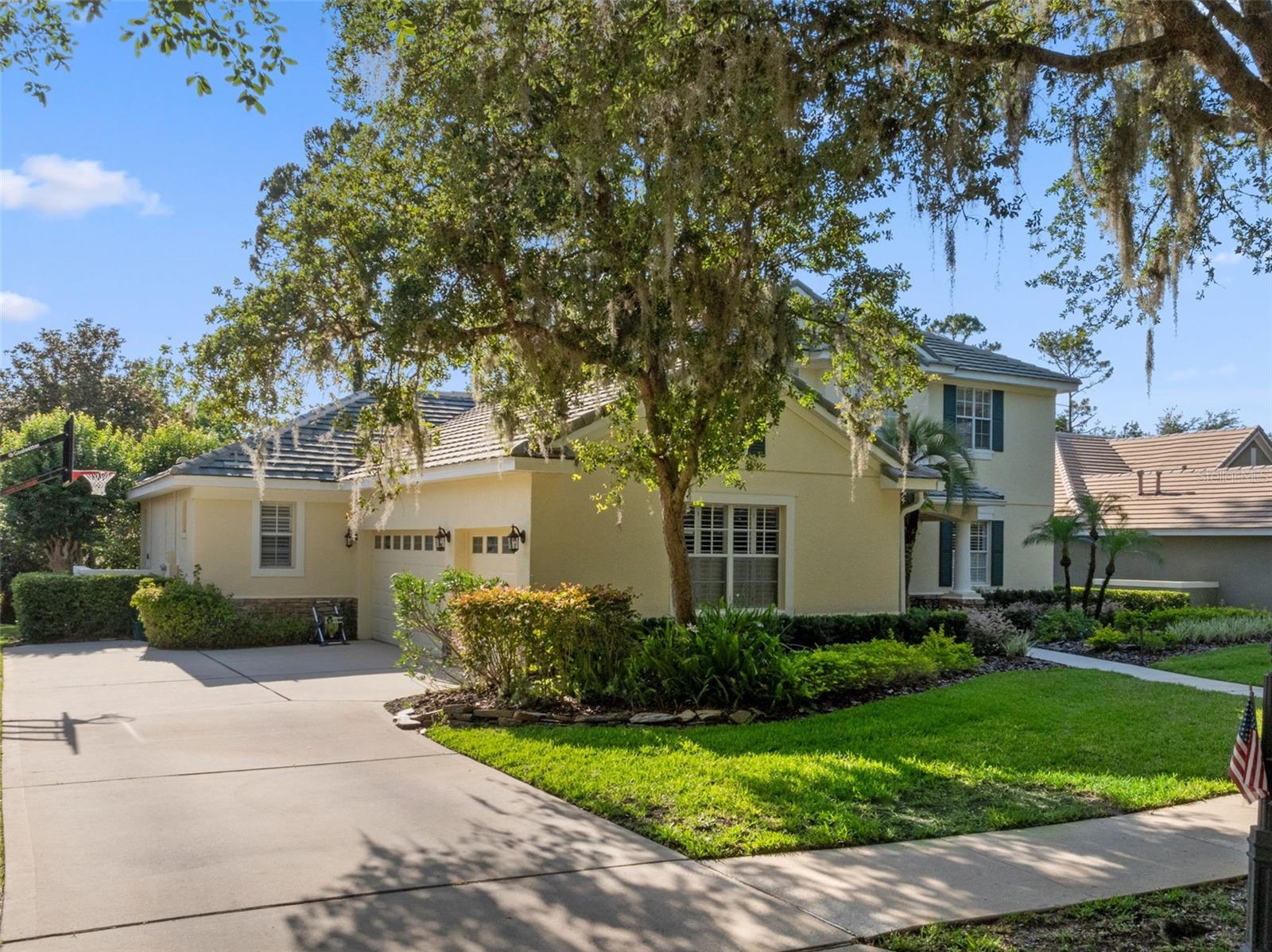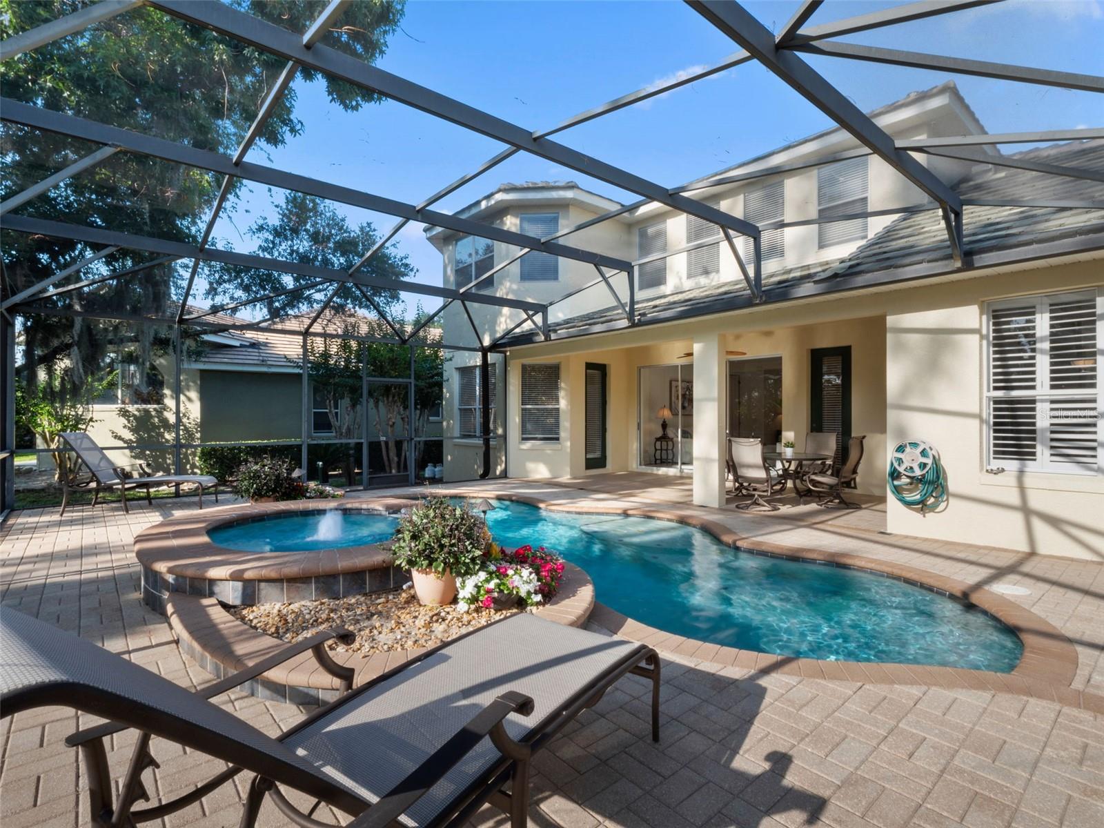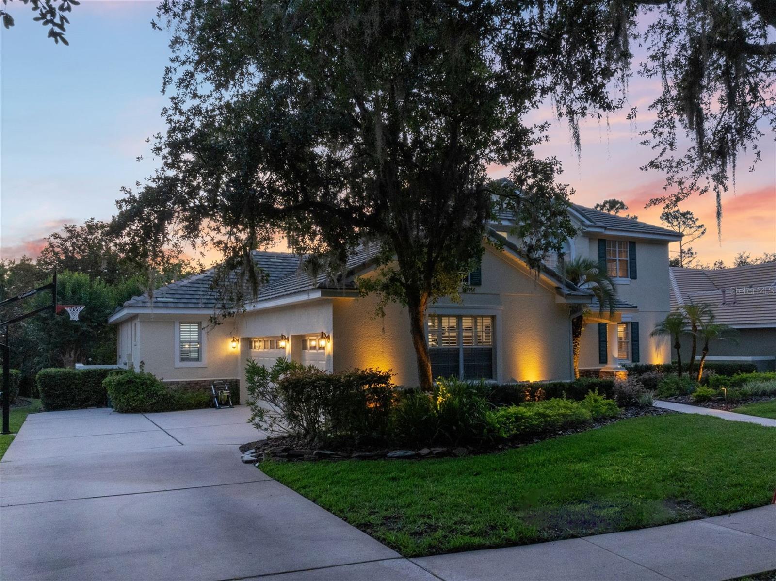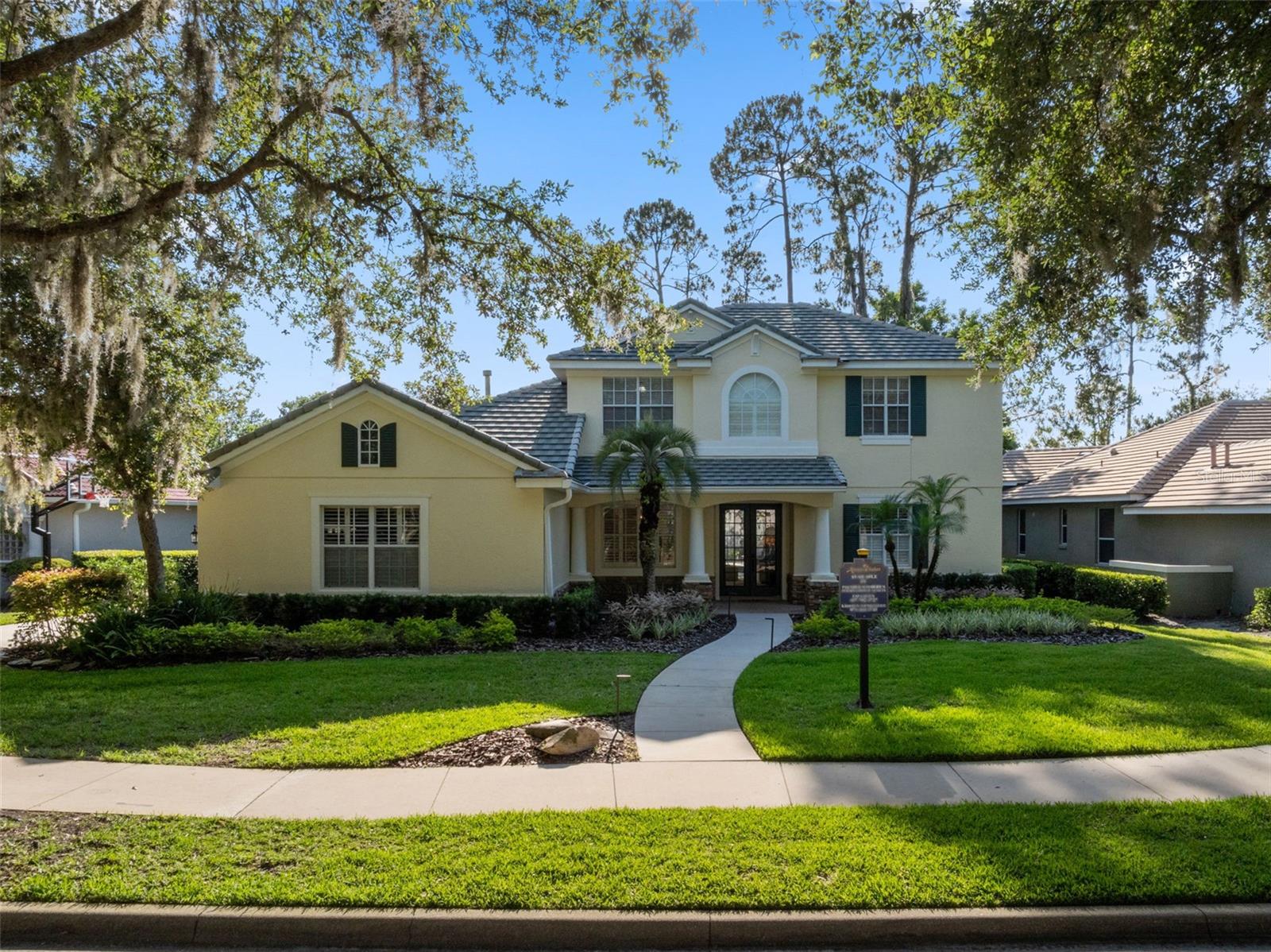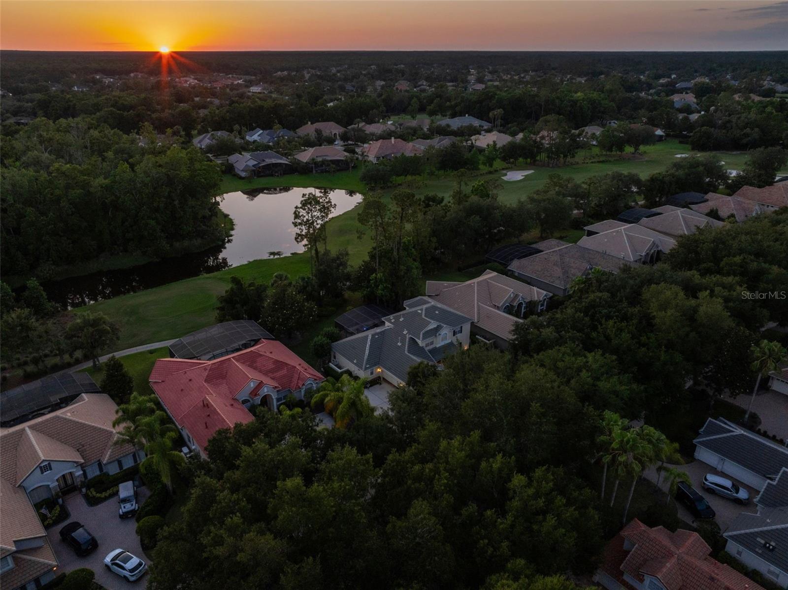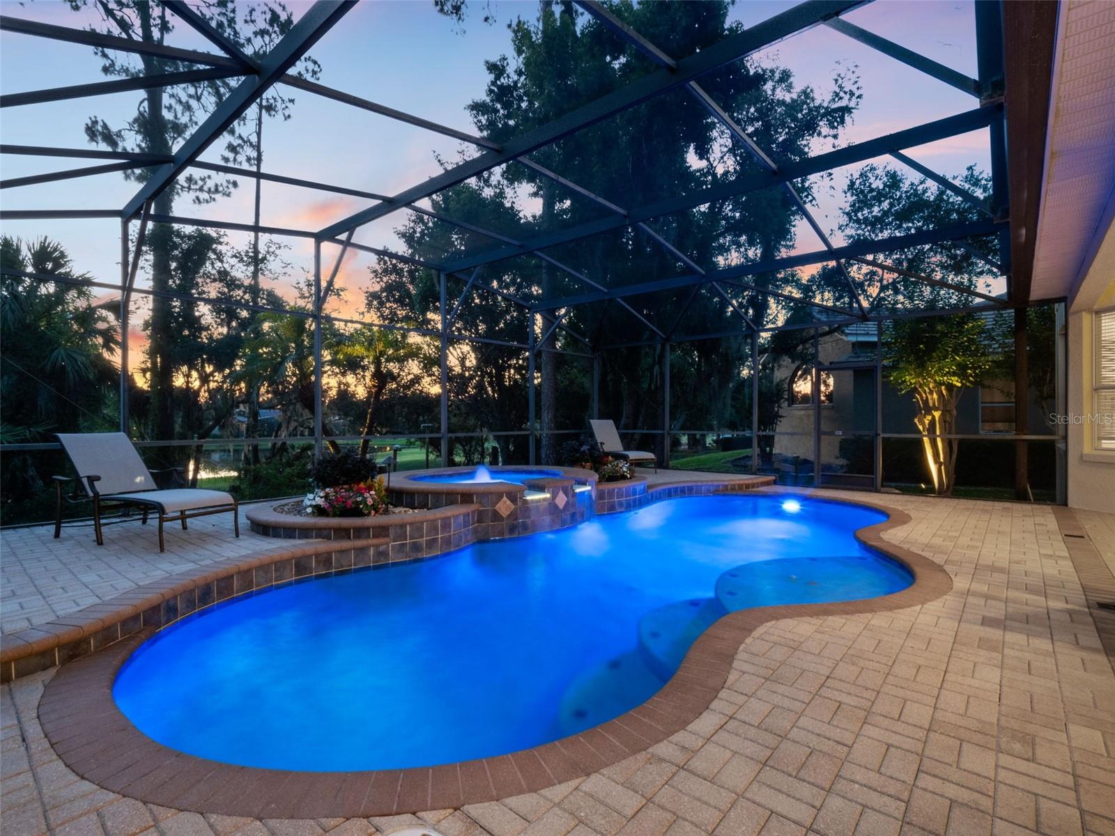 Brand new roof finished May 2025!!! Welcome to this exceptional home, set on one of the desirable lots in Alaqua Lakes with sweeping golf and water views, and stunning sunsets every evening. On a quiet cut-de-sac, this home offers timeless elegance, upscale finishes, and a classic, traditional floor plan, ideal for refined family living. The spacious primary suite is conveniently on the main floor, offering peaceful views and luxurious comfort. The additional bedrooms and bonus loft upstairs provide a retreat for family or guests. Step outside to your private outdoor sanctuary - complete with a resort-style pool and spa. Pool equipment including control panel, chlorinator, pump, gas heater, and lights were replaced in 2022. The patio pavers were pulled up and re-sanded in 2024. Also includes a new roof with May install. Alaqua Lakes is one of Central Florida's sought-after communities, offering unparalleled lifestyle with resort-style amenities, including a seven-acre park, five Har-Tru clay tennis courts, sand volleyball, playground, basketball and a stunning community pool. Golf enthusiasts will appreciate the proximity to the private Heathrow Legacy Golf & Country Club. Experience the ultimate in luxury, privacy and security, just minutes from upscale dining, top-rated schools, boutique shopping and major highways. You will not find better value in such a desirable community!