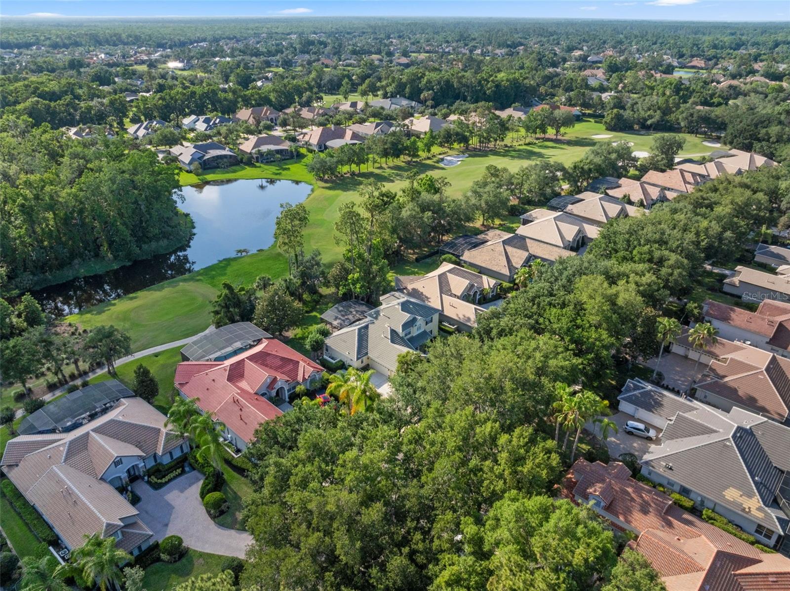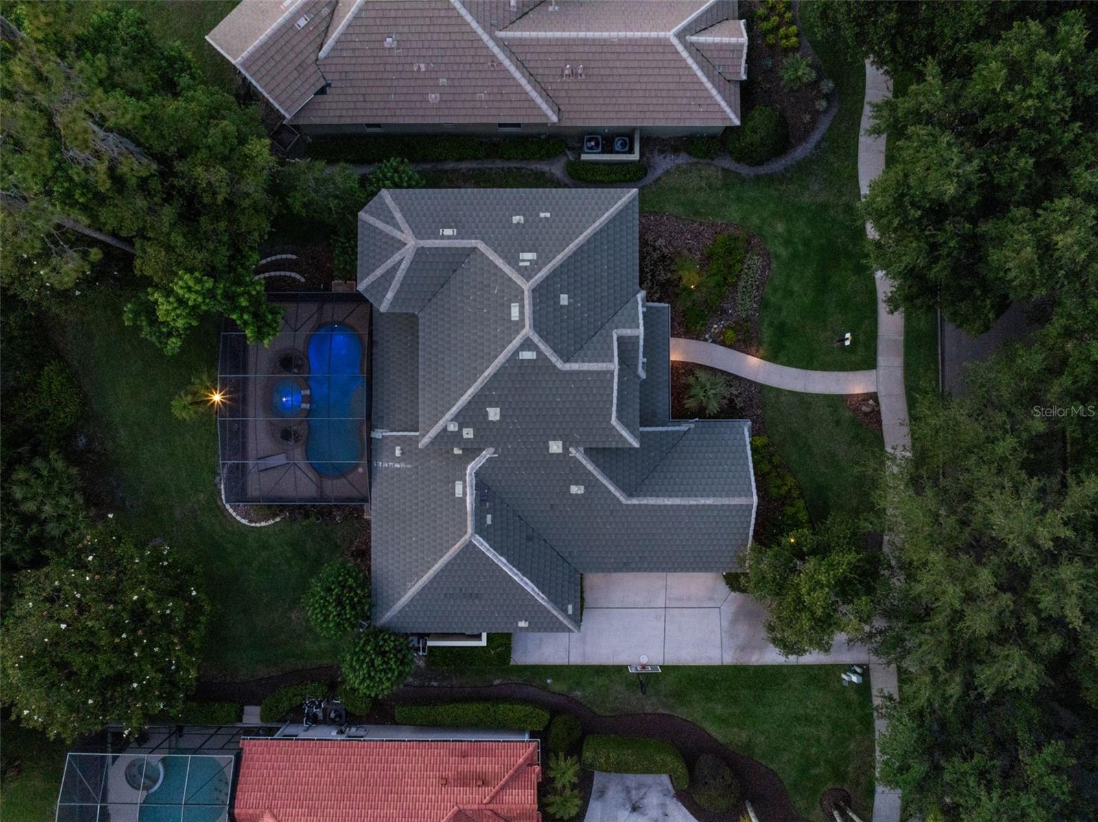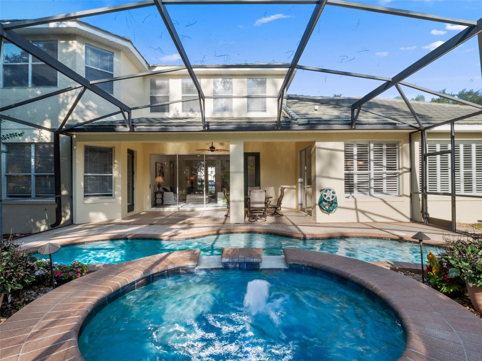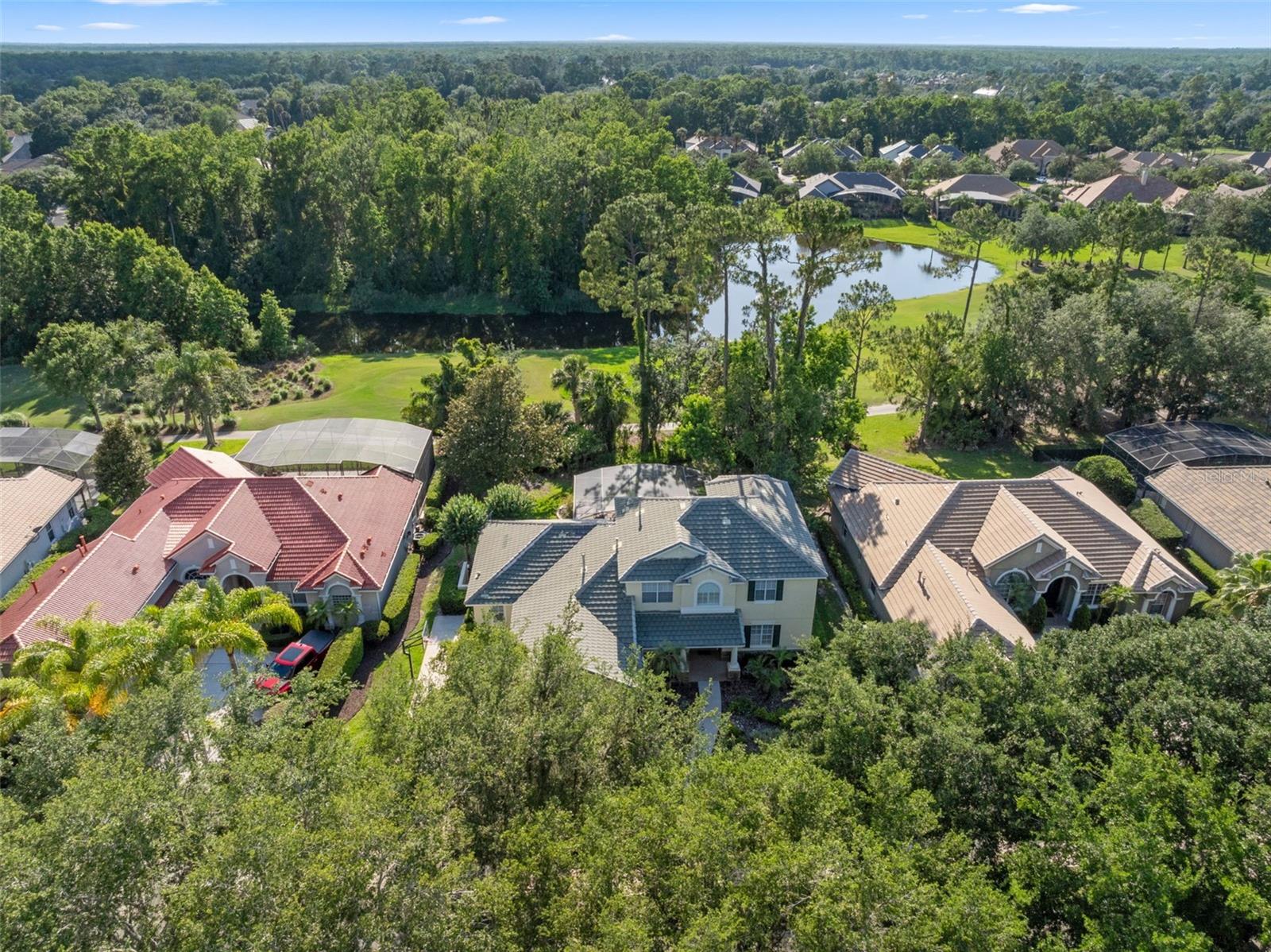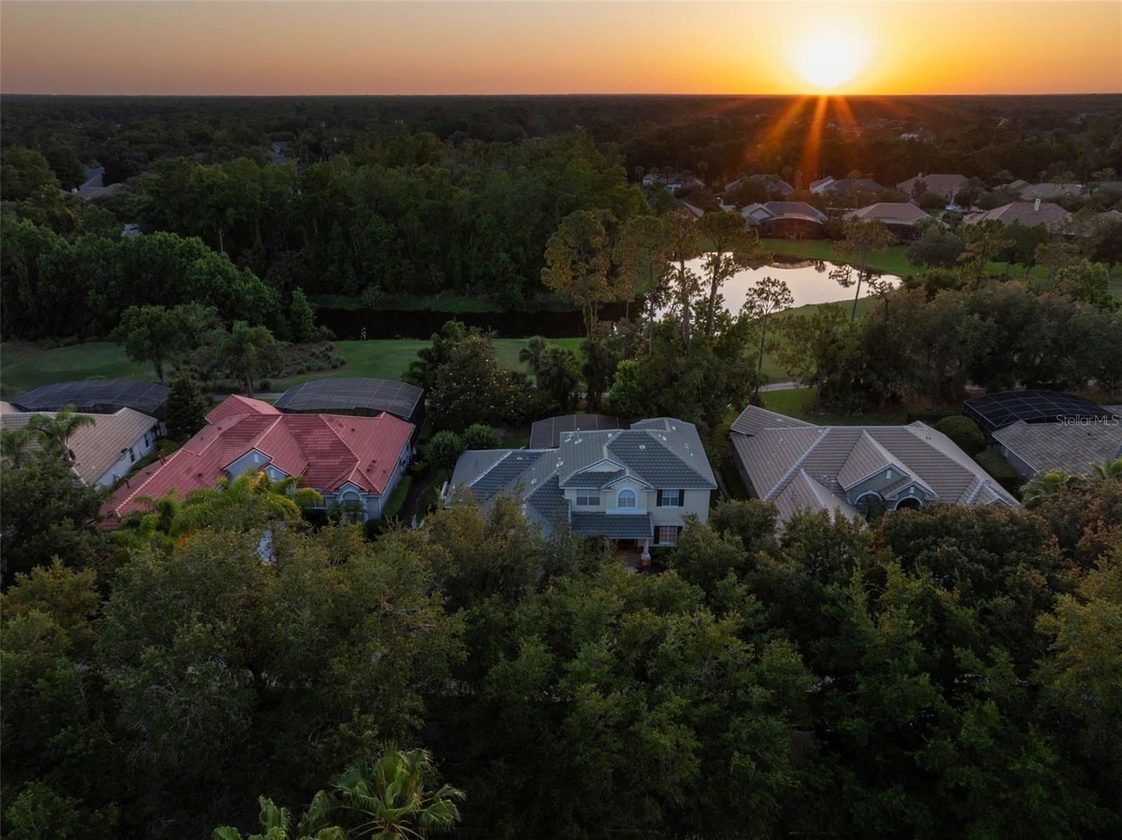 Brand new roof finished May 2025!!! Welcome to this exceptional home, set on one of the desirable lots in Alaqua Lakes with sweeping golf and water views, and stunning sunsets every evening. On a quiet cut-de-sac, this home offers timeless elegance, upscale finishes, and a classic, traditional floor plan, ideal for refined family living. The spacious primary suite is conveniently on the main floor, offering peaceful views and luxurious comfort. The additional bedrooms and bonus loft upstairs provide a retreat for family or guests. Step outside to your private outdoor sanctuary - complete with a resort-style pool and spa. Pool equipment including control panel, chlorinator, pump, gas heater, and lights were replaced in 2022. The patio pavers were pulled up and re-sanded in 2024. Also includes a new roof with May install. Alaqua Lakes is one of Central Florida's sought-after communities, offering unparalleled lifestyle with resort-style amenities, including a seven-acre park, five Har-Tru clay tennis courts, sand volleyball, playground, basketball and a stunning community pool. Golf enthusiasts will appreciate the proximity to the private Heathrow Legacy Golf & Country Club. Experience the ultimate in luxury, privacy and security, just minutes from upscale dining, top-rated schools, boutique shopping and major highways. You will not find better value in such a desirable community!