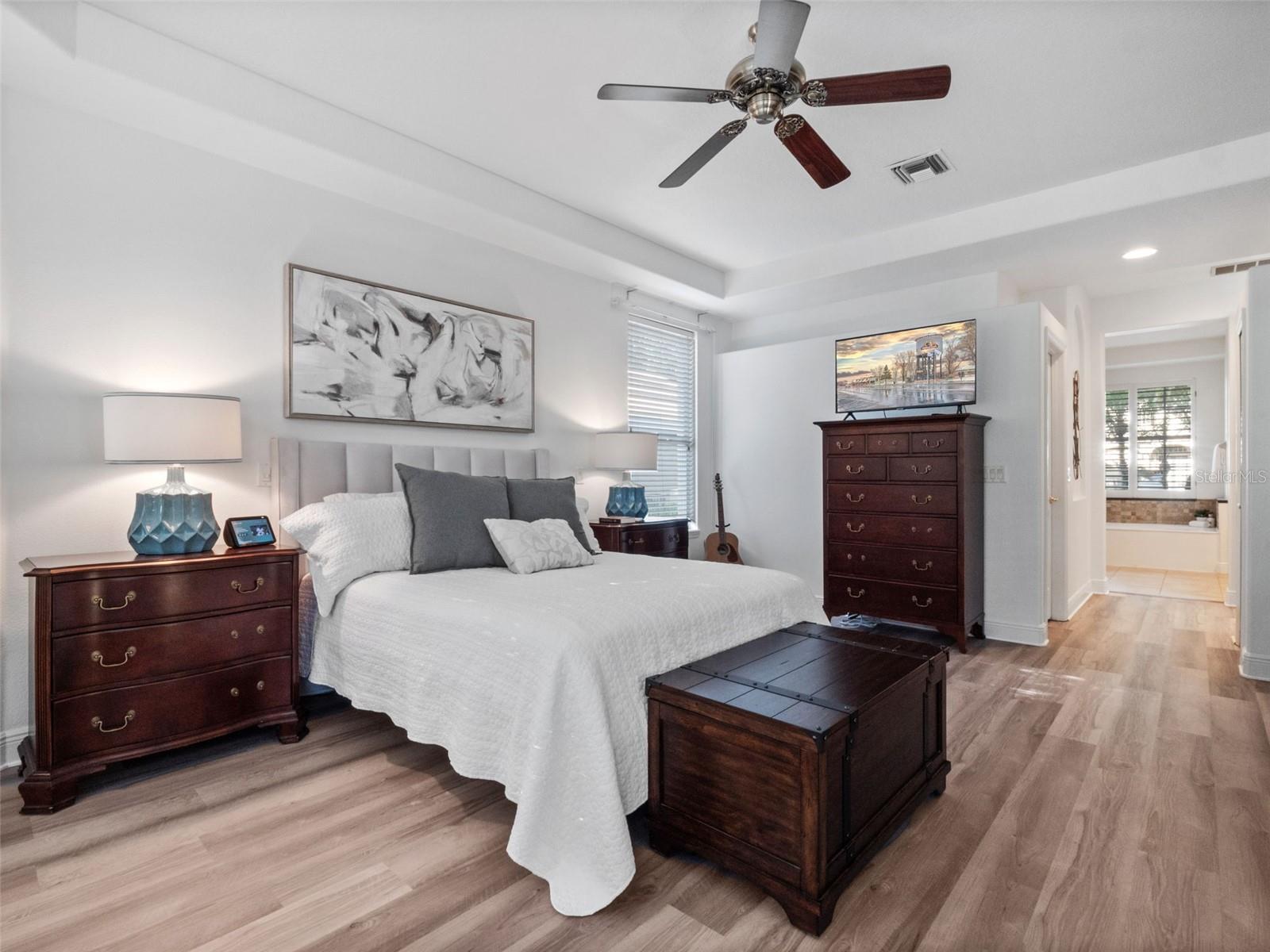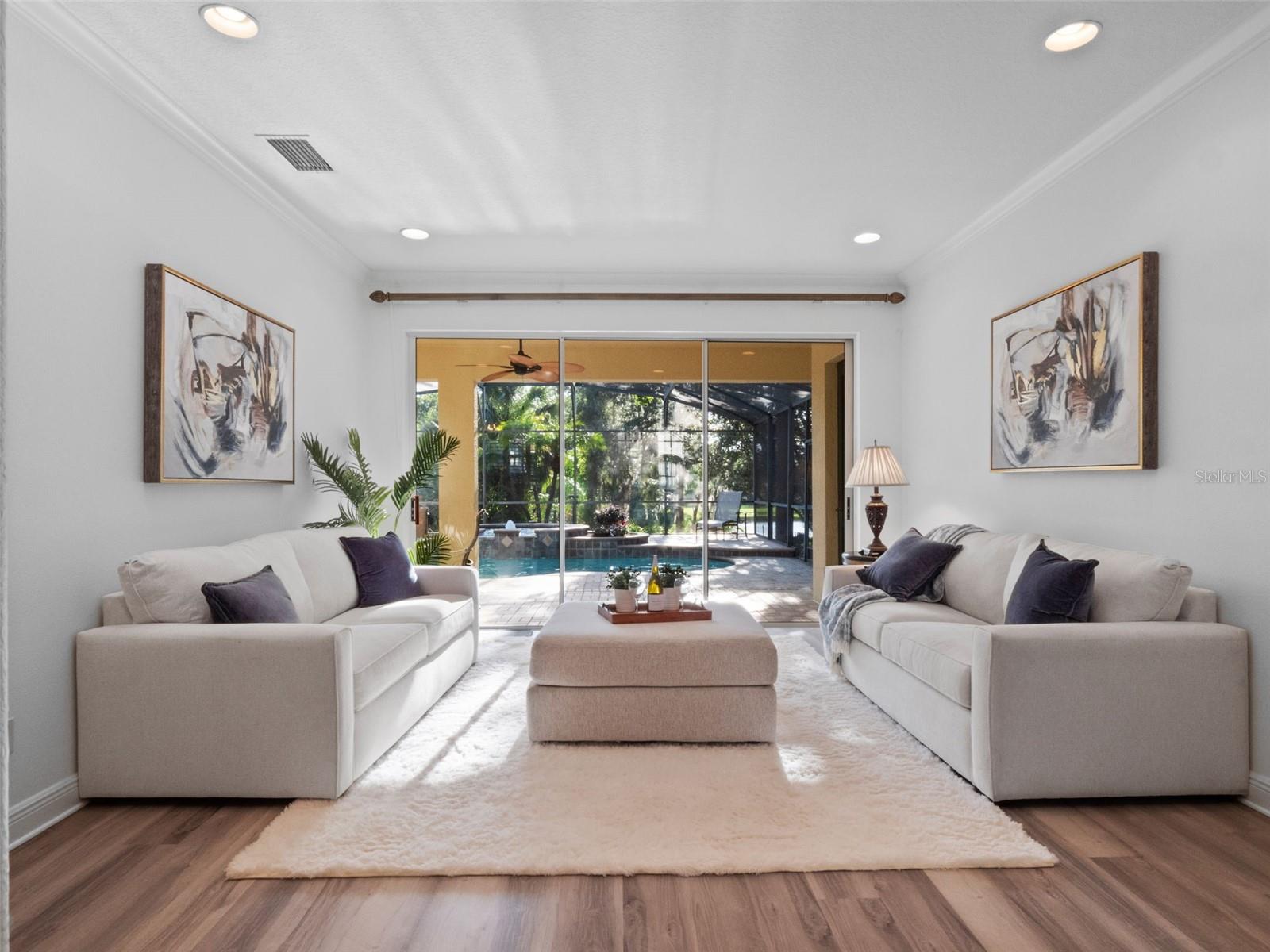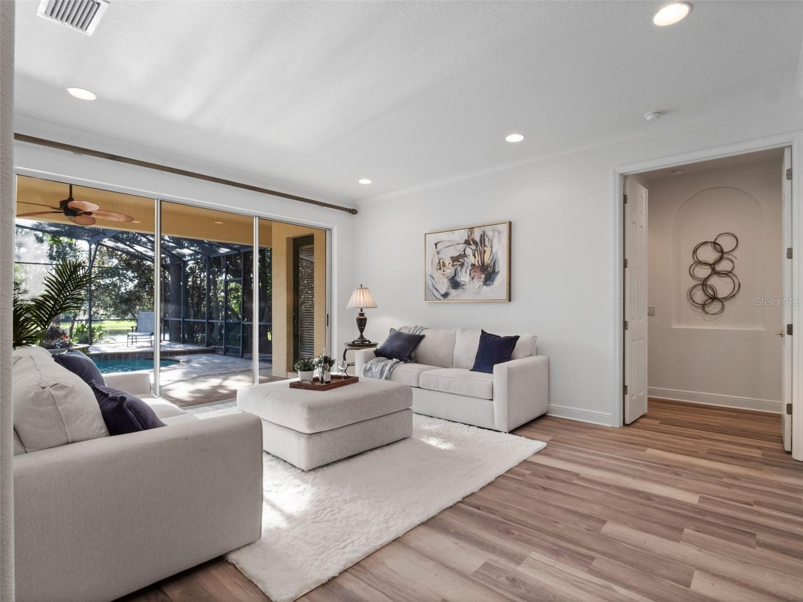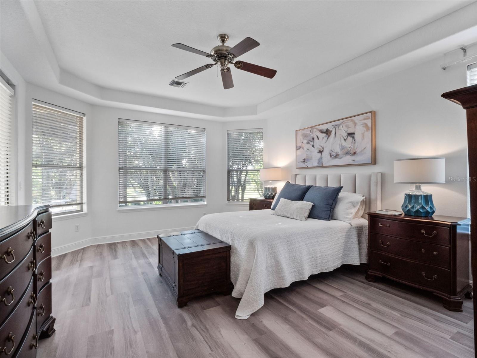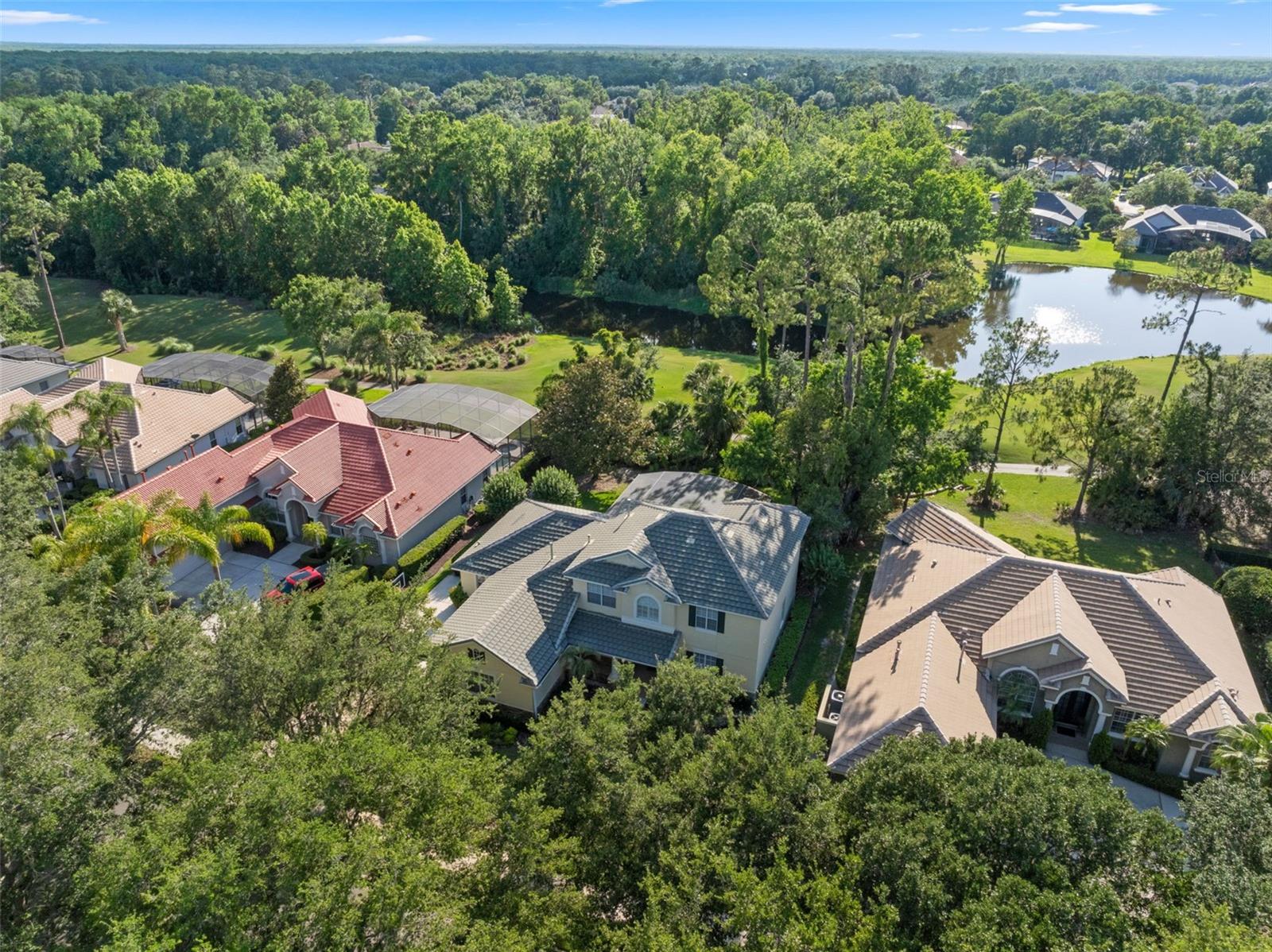 Brand new roof finished May 2025!!! Welcome to this exceptional home, set on one of the desirable lots in Alaqua Lakes with sweeping golf and water views, and stunning sunsets every evening. On a quiet cut-de-sac, this home offers timeless elegance, upscale finishes, and a classic, traditional floor plan, ideal for refined family living. The spacious primary suite is conveniently on the main floor, offering peaceful views and luxurious comfort. The additional bedrooms and bonus loft upstairs provide a retreat for family or guests. Step outside to your private outdoor sanctuary - complete with a resort-style pool and spa. Pool equipment including control panel, chlorinator, pump, gas heater, and lights were replaced in 2022. The patio pavers were pulled up and re-sanded in 2024. Also includes a new roof with May install. Alaqua Lakes is one of Central Florida's sought-after communities, offering unparalleled lifestyle with resort-style amenities, including a seven-acre park, five Har-Tru clay tennis courts, sand volleyball, playground, basketball and a stunning community pool. Golf enthusiasts will appreciate the proximity to the private Heathrow Legacy Golf & Country Club. Experience the ultimate in luxury, privacy and security, just minutes from upscale dining, top-rated schools, boutique shopping and major highways. You will not find better value in such a desirable community!