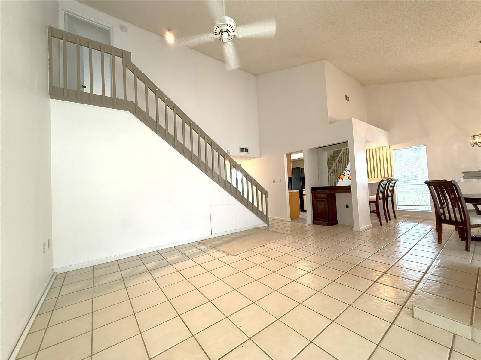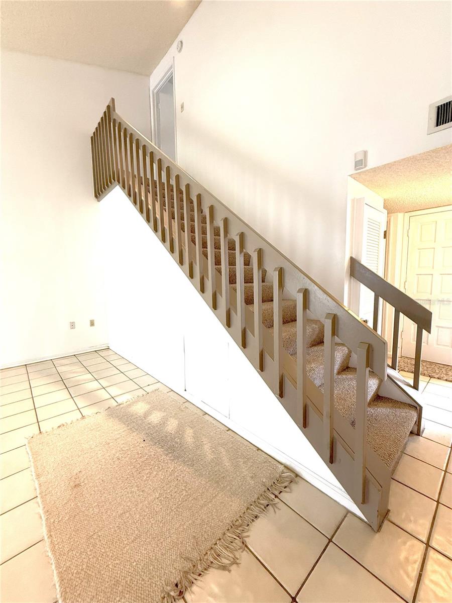 Motivated Seller! Mom has recently moved into assisted living, and the family is selling to help cover costs. Needs updating but great property! This charming 2-bedroom, 2-bathroom corner townhome is in great condition and ready for your personal touch. It’s priced accordingly, giving you the opportunity to update and design it to your own style. Step inside to soaring vaulted ceilings that fill the main living area with natural light and create an open, airy feel. Relax by the wood-burning fireplace or enjoy peaceful mornings in the screened lanai overlooking the quiet community. The primary bedroom suite is located upstairs for added privacy, while the second bedroom is conveniently downstairs. You’ll find ceramic tile in the main living areas, soft carpet in the bedrooms, and fresh paint throughout. Additional features include in-home laundry with washer and dryer, and an HOA that covers water and landscaping for easy living. Be sure to visit the community pool—a perfect spot to unwind or meet friendly neighbors!
