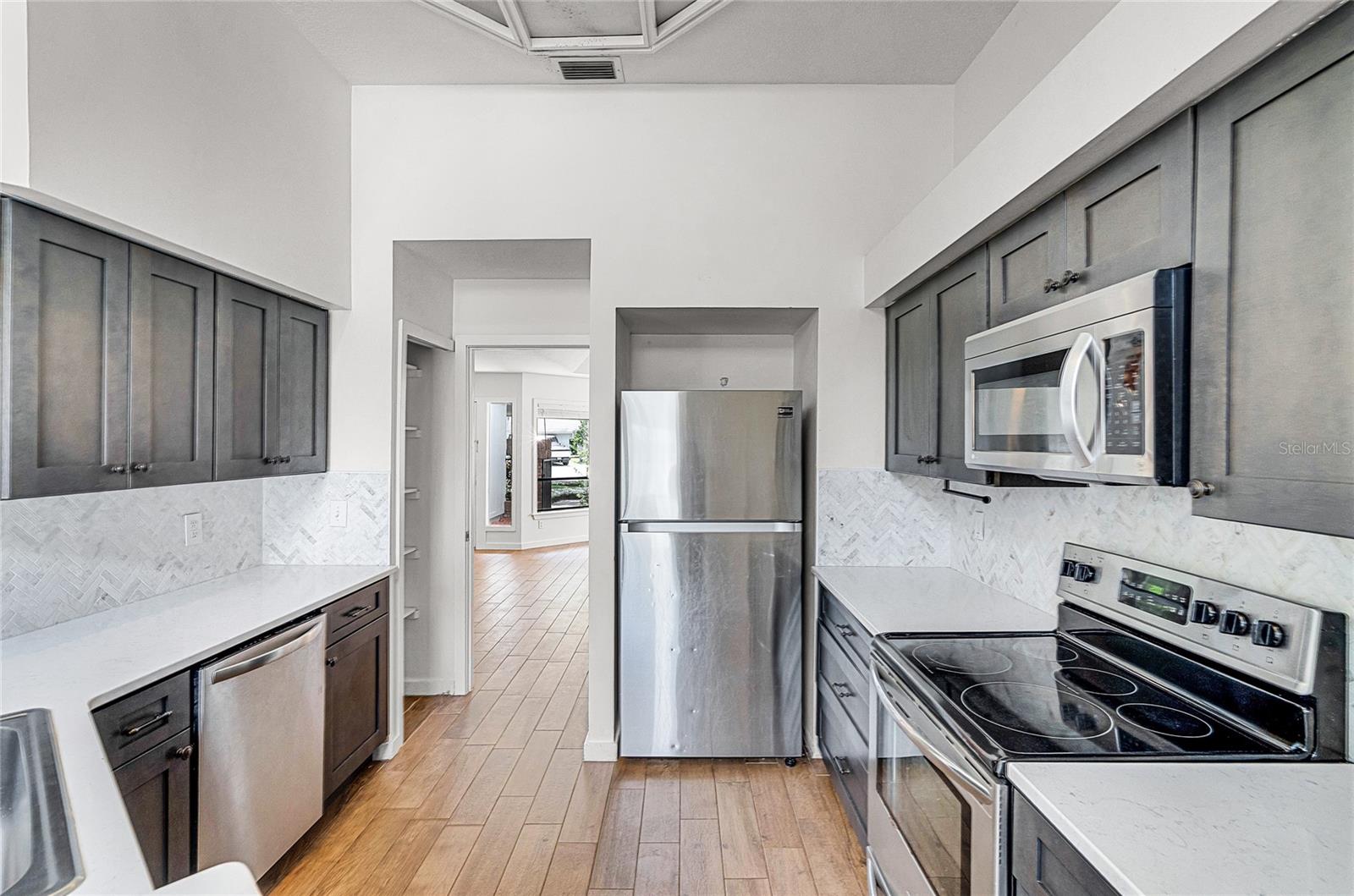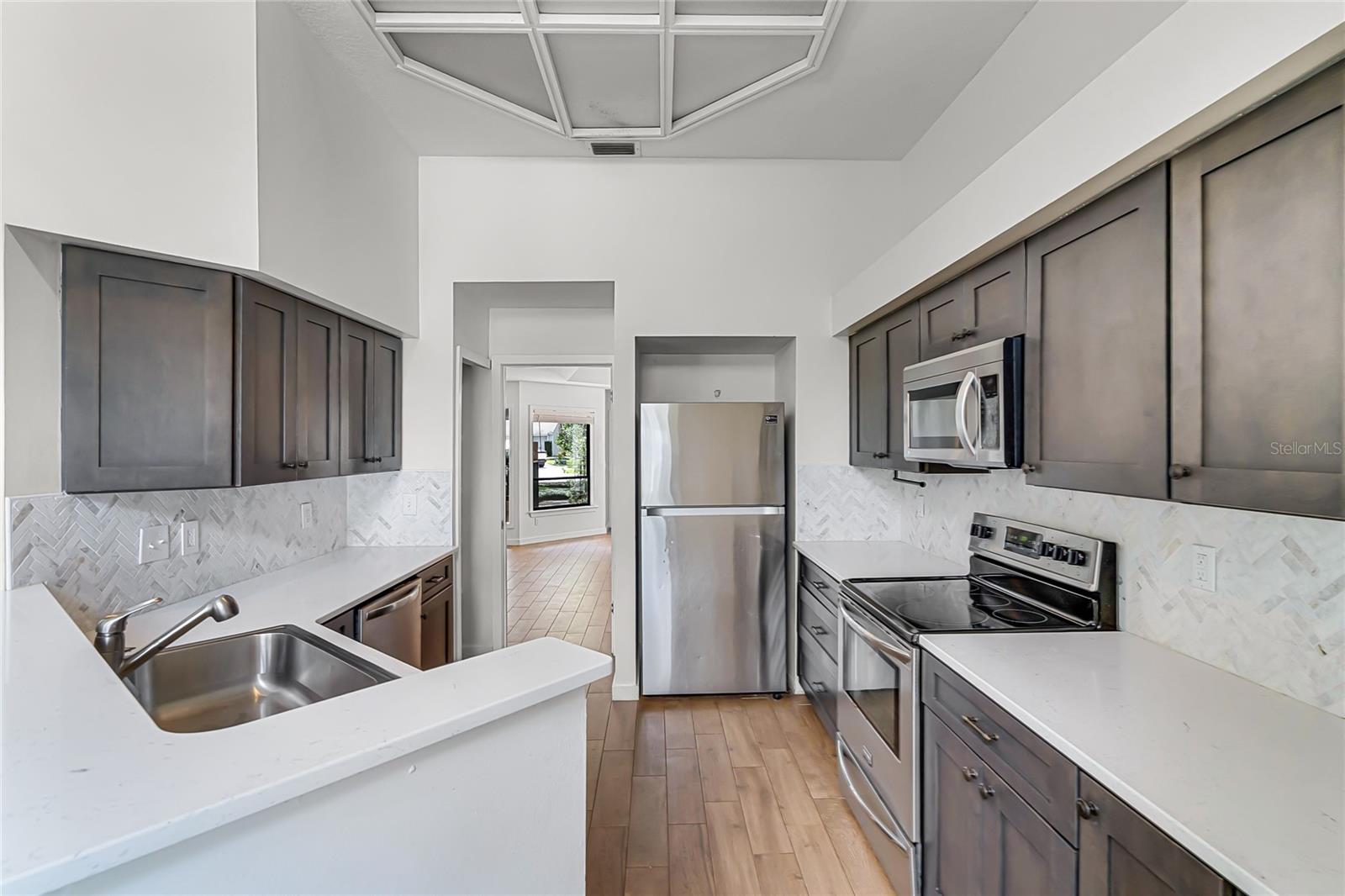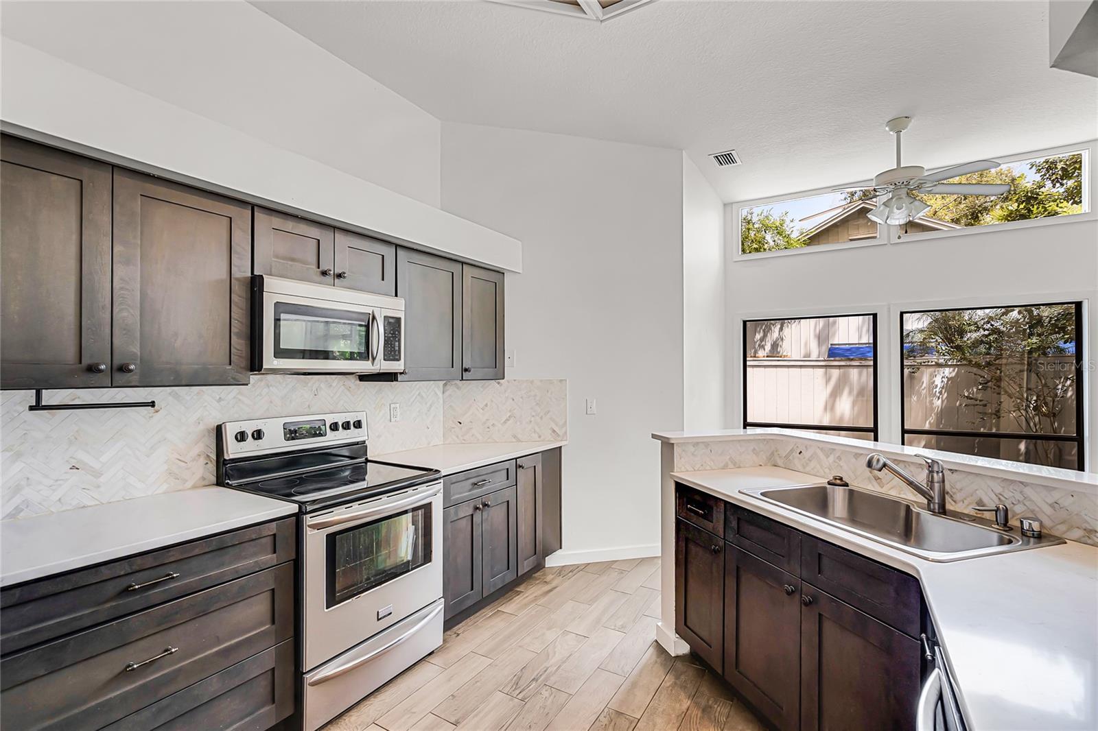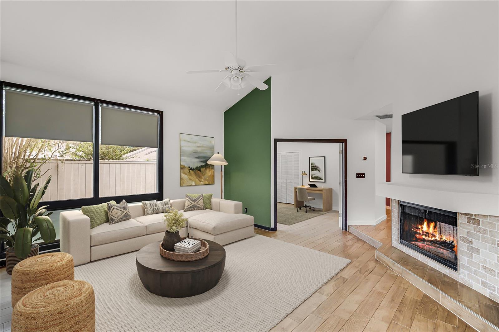 One or more photo(s) has been virtually staged. NEW PRICE! BRAND NEW ROOF, BRAND NEW WATER HEATER! Welcome to the Good Life in Sabal Green! This charming community within Sabal Point is ideal because your front yard is maintained by the HOA! This home features Wood Look Tile Floors throughout and a Renovated Kitchen and Low HOA fees! The ideal sized fenced back and side yard of this house can be very low maintenance has some new sod laid. If you've been looking to change from your large yard house with pool, but still need an office bedroom and guest room, this is it! Or, if you're just starting out with your first or second home, this would be an ideal choice with it's lower maintenance and cul de sac location. You'll enjoy Three Bedrooms in split plan layout, 1842 sq ft of living space, 2 Car Garage, private backyard, separate Dining Room and Family Room, stylish updated Kitchen and Nook area and lots of natural light from windows on this back side of house. The Primary Bathroom has double sinks and tub and shower. The secondary bathroom has tub/shower combination, vanity and exit door to side courtyard. There's a double sided fireplace between Entry, Dining Room area and Family Room! The Primary Bedroom is very spacious and has views of your backyard through a sliding glass door. There is also a large walk ion closet. Did I mention the Highly Rated Seminole County Schools, easy drive to freeways and shopping and beaches! Sabal Point is a well established master planned community with beautiful homes, nature and walking trails. Make your appointment today! This home is Priced to Sell!