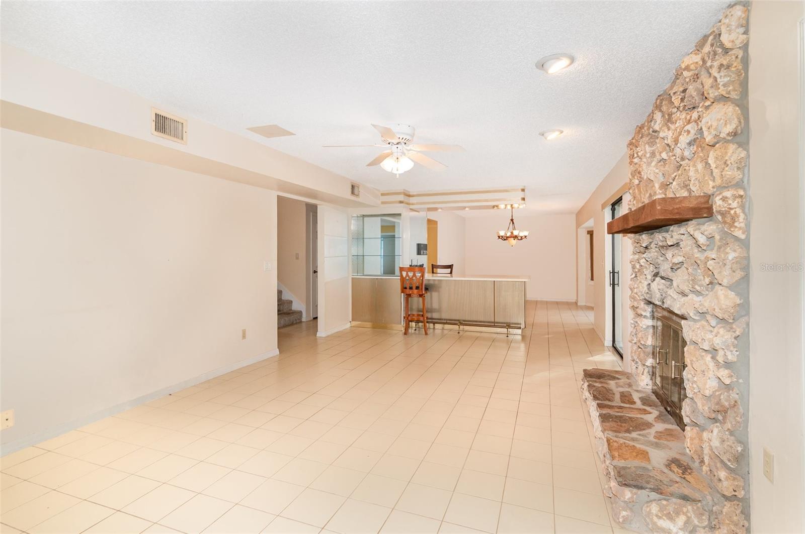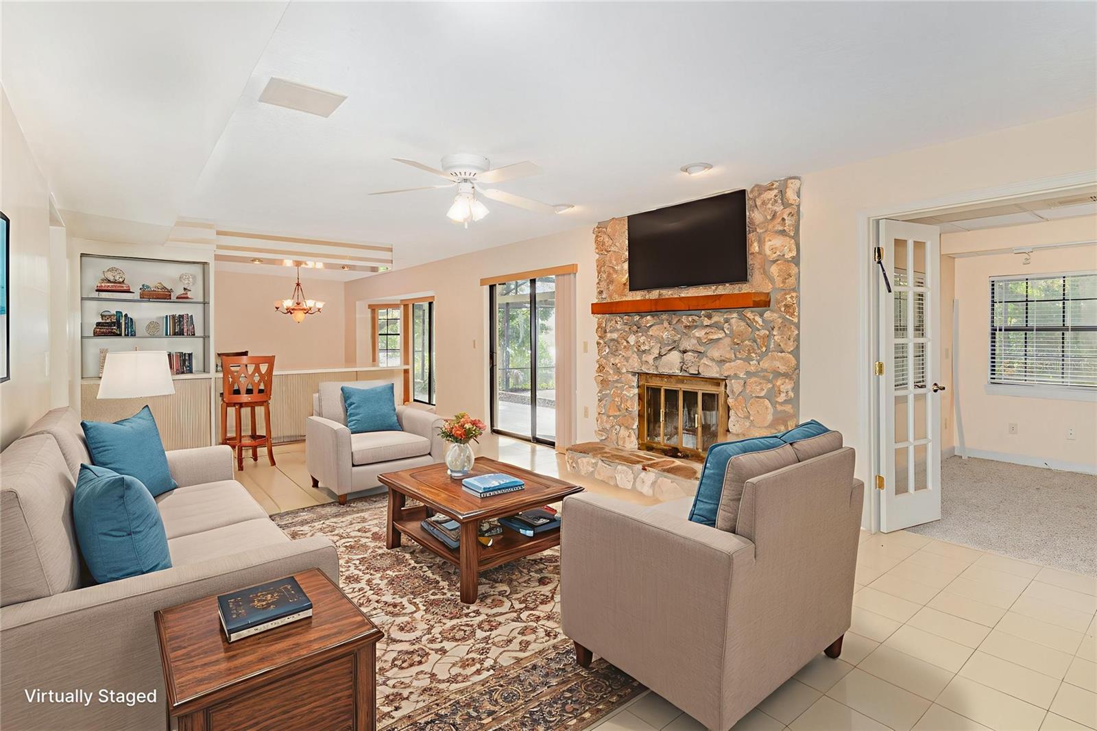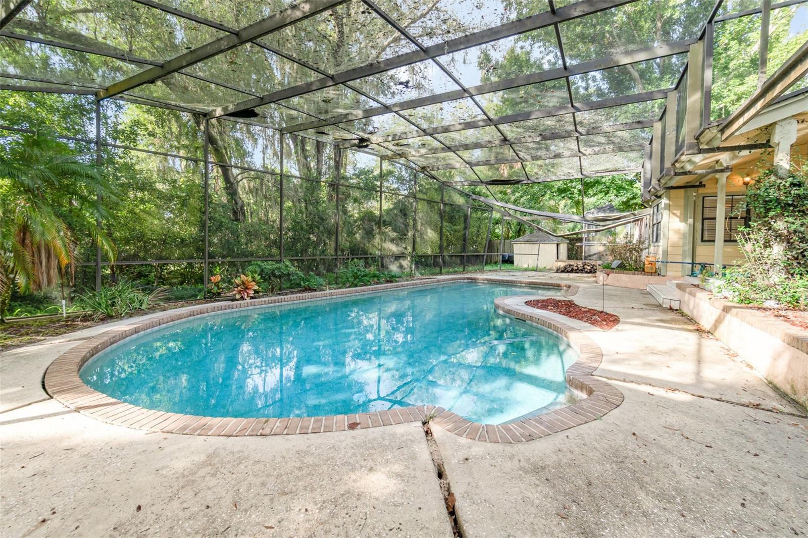 This home has some serious personality and endless potential! The custom kitchen is a standout, featuring solid wood cabinets with stained glass inlays and eye-catching tile work. Starting with a new roof that's only one year old, also featuring a wood burning fireplace. Step outside to an inviting front yard, a backyard pool with stunning views of Lake Brantley, and direct access from the master bath to the outdoors. Vintage 1979 tile? Totally back in style. While the HVAC and garage door need some TLC (both are in need of replacement), there are 4 window units to keep things cool. HOA perks include a private lake with boat ramp, plus access to basketball and tennis courts. A true gem with character, charm, and a few fun projects for its next owner!