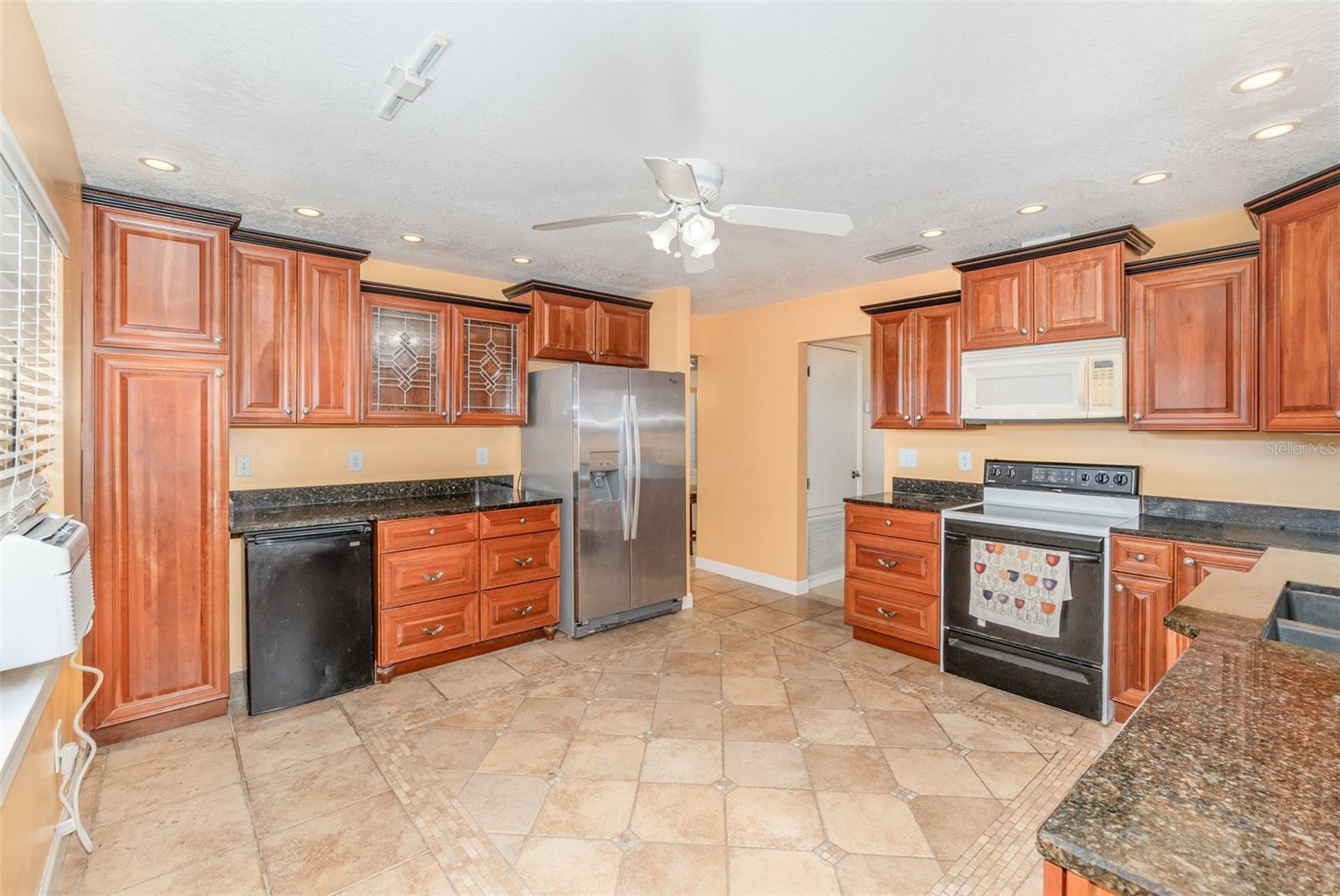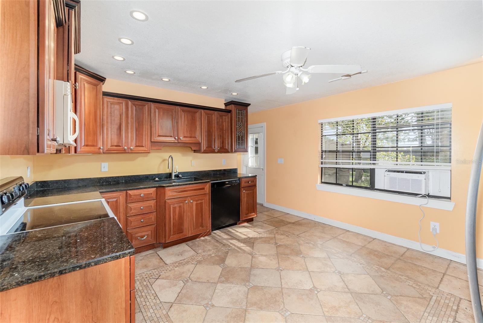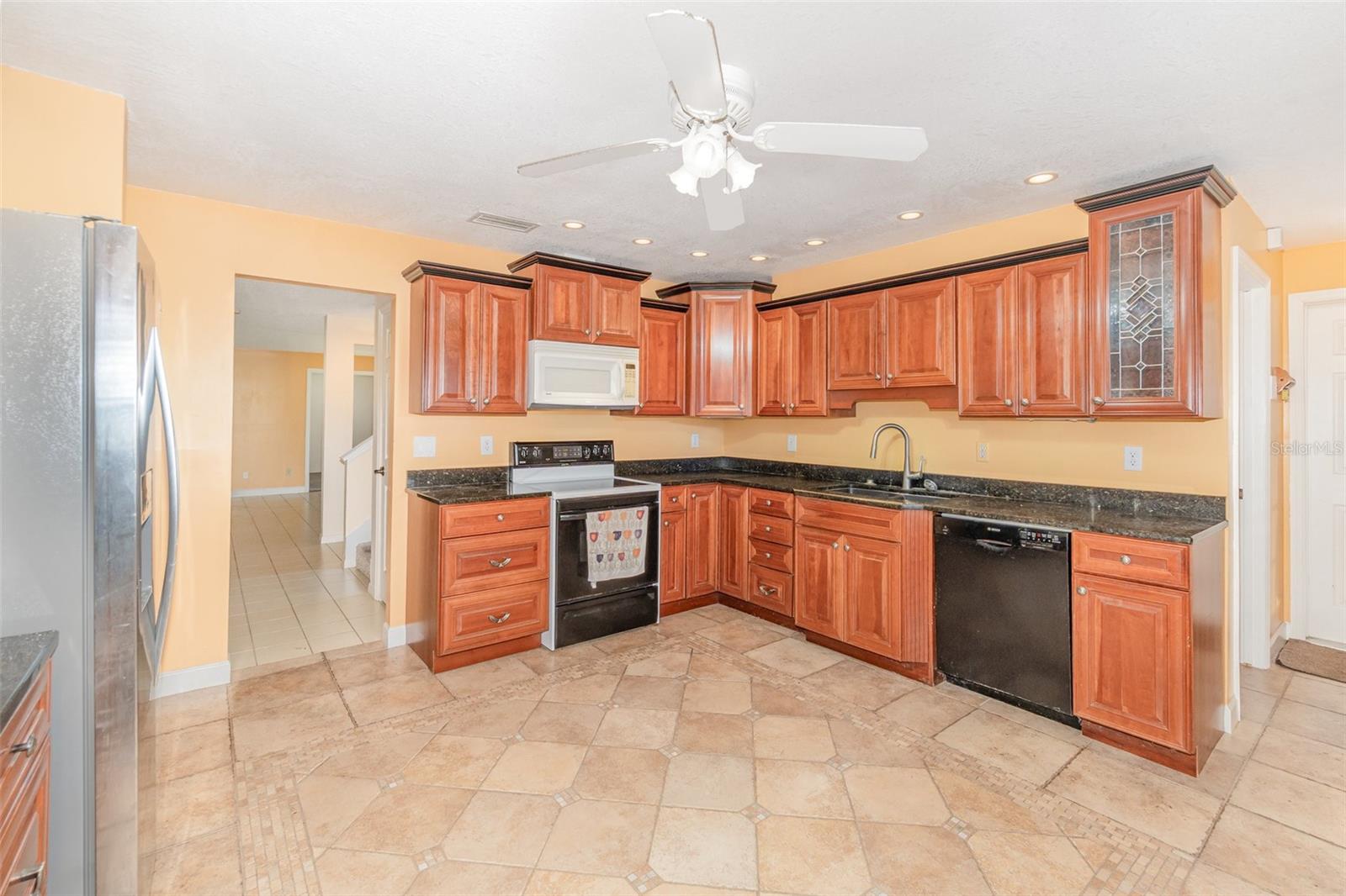 This home has some serious personality and endless potential! The custom kitchen is a standout, featuring solid wood cabinets with stained glass inlays and eye-catching tile work. Starting with a new roof that's only one year old, also featuring a wood burning fireplace. Step outside to an inviting front yard, a backyard pool with stunning views of Lake Brantley, and direct access from the master bath to the outdoors. Vintage 1979 tile? Totally back in style. While the HVAC and garage door need some TLC (both are in need of replacement), there are 4 window units to keep things cool. HOA perks include a private lake with boat ramp, plus access to basketball and tennis courts. A true gem with character, charm, and a few fun projects for its next owner!