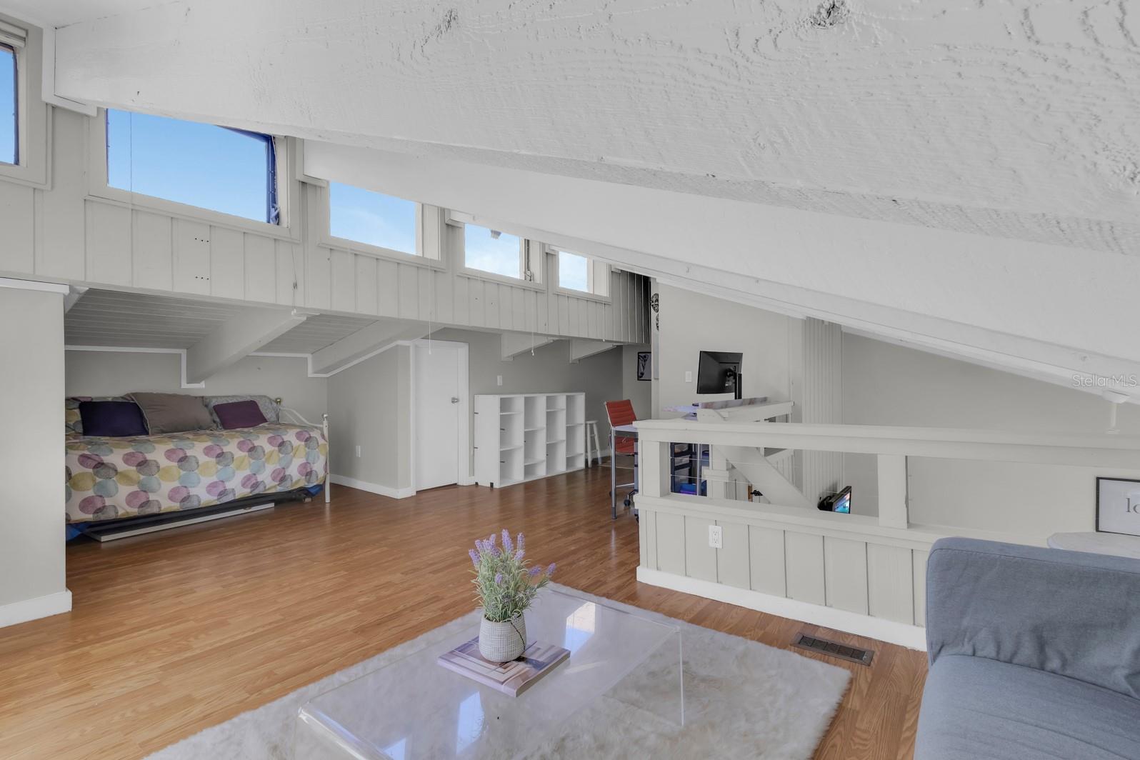 Stunning, Spacious Two-Story Condo in The Springs! Tucked away on the second floor of this prestigious, guard-gated community, this 1,600 sq ft residence offers privacy and security. The bright, open layout features two bedrooms, two bathrooms, and a versatile, large loft, all set among mature trees. Step inside and immediately feel the openness created by dramatic vaulted ceilings, expansive windows, and natural light that pours in from every direction—north, south, east, and west. With five skylights overhead, the home feels connected to the outdoors from sunrise to sunset. Two balconies overlook serene treetops and the sparkling community pool, offering peaceful spaces to unwind and enjoy Florida’s signature skies. The interior has been thoughtfully updated to blend comfort with style. Wood-look tile flooring, modern shaker cabinetry topped with granite, and stainless steel appliances create a timeless aesthetic. A new roof installed in 2024, updated window treatments, energy-efficient WiFi thermostat, and upgraded ceiling fans with advanced lighting features offer peace of mind and enhanced climate control. When the weather cools down, a charming wood-burning fireplace provides the perfect cozy touch. The primary suite is an inviting retreat with floor-to-ceiling windows, private balcony access, a spacious walk-in closet, dual sinks, and a beautifully finished stone shower. The secondary bedroom features its own balcony and tranquil woodland views. Upstairs, the generous loft expands your possibilities—ideal for a home office, guest space, media room, or creative studio—with ample storage throughout. For those who love the outdoors, this home includes a private courtyard-style garden area perfect for hosting guests, enjoying morning coffee, or creating a dedicated play or relaxation zone. Additional private outdoor storage accommodates bikes, kayaks, paddleboards, camping gear, and more, with shared storage available for oversized items. Living in The Springs offers something truly special. Centered around a pristine natural spring, the community provides resort-like amenities: a spring-fed sandy beach, sparkling pool, tennis and basketball courts, walking and jogging trails, horse stables, shaded picnic areas, and a welcoming clubhouse ideal for gatherings of all sizes. Whether you seek peaceful mornings, active afternoons, or memorable evenings with friends, this home offers a rare combination of comfort, beauty, and connection to nature. This is your chance to experience one of Central Florida’s most unique communities. Schedule your private tour today.
