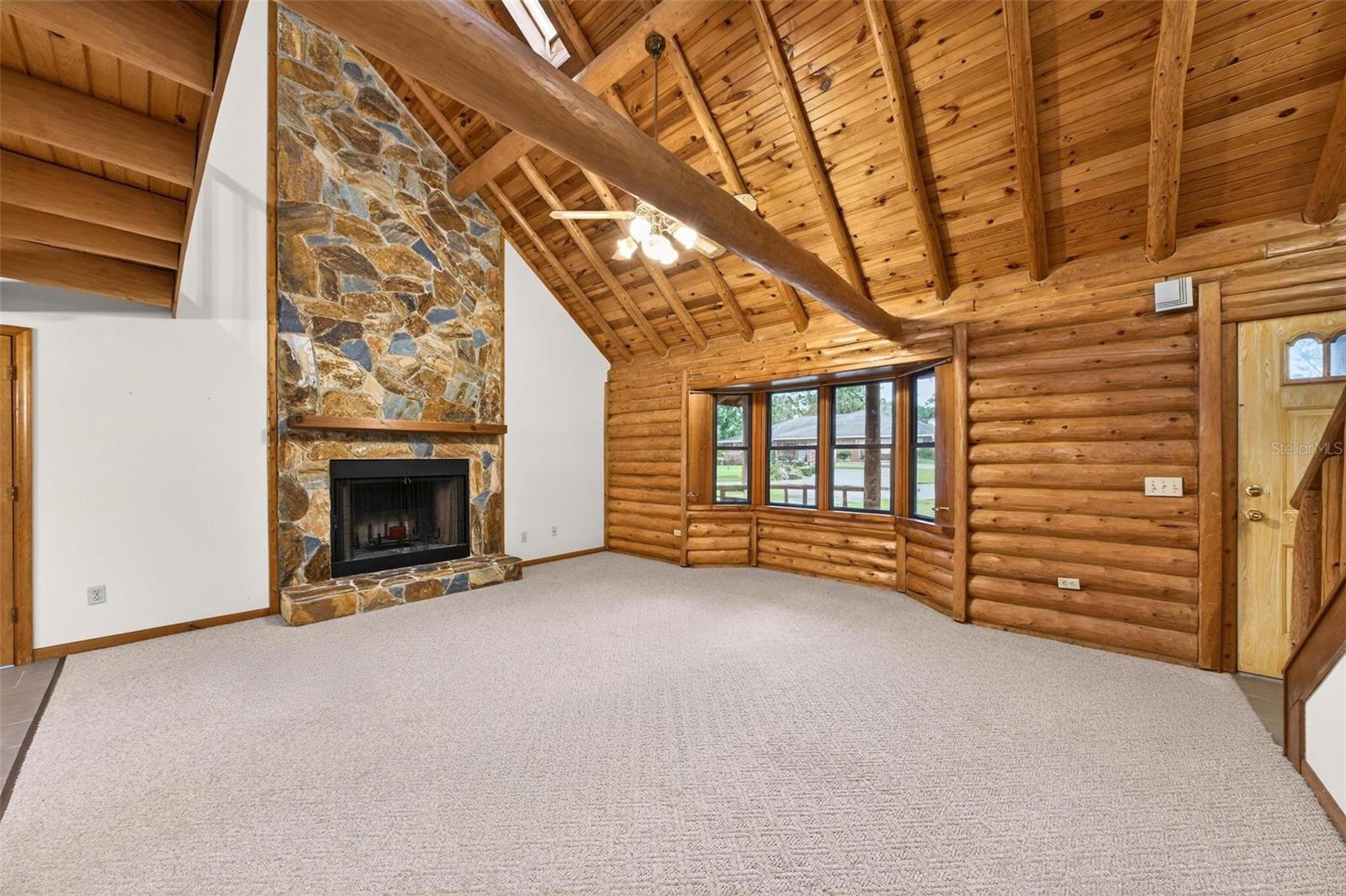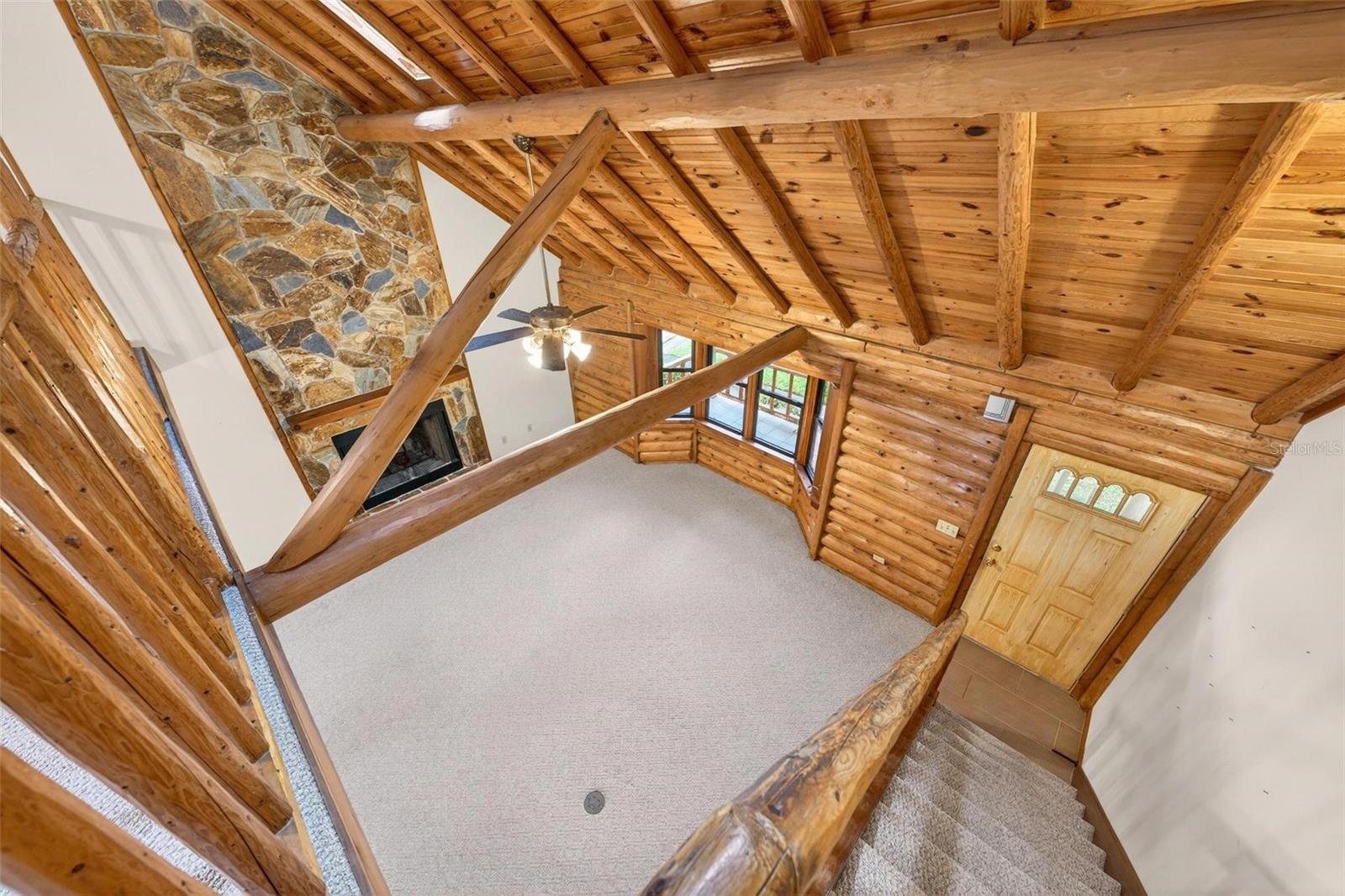 One or more photo(s) has been virtually staged. Escape the ordinary and discover a truly unique piece of county living in this stunning log home nestled at the end of a very quiet street in the heart of Seminole County. This rare find delivers rustic charm and privacy without sacrificing convenience, offering four spacious bedrooms and two large living areas anchored by a cozy wood-burning fireplace. The welcoming kitchen thoughtfully overlooks the dining area and downstairs living space, creating a perfect environment for entertaining. The rear of the home is a true retreat; relax on the large covered porch that seamlessly transitions to the generously sized, screen-enclosed pool. This private haven offers ultimate tranquility with an oversized lot and the added benefit of no rear neighbors—if you are looking for elbow room and a peaceful setting, look no further. Peace of mind comes with a roof replaced in 2018 and a new electrical panel with generator connections, plus plenty of storage in the oversized two-car garage. This one-of-a-kind property is ideally located just minutes from public schools, the Altamonte Mall, major hospitals, and all primary highways, offering the best of both worlds. Schedule your private viewing today!
