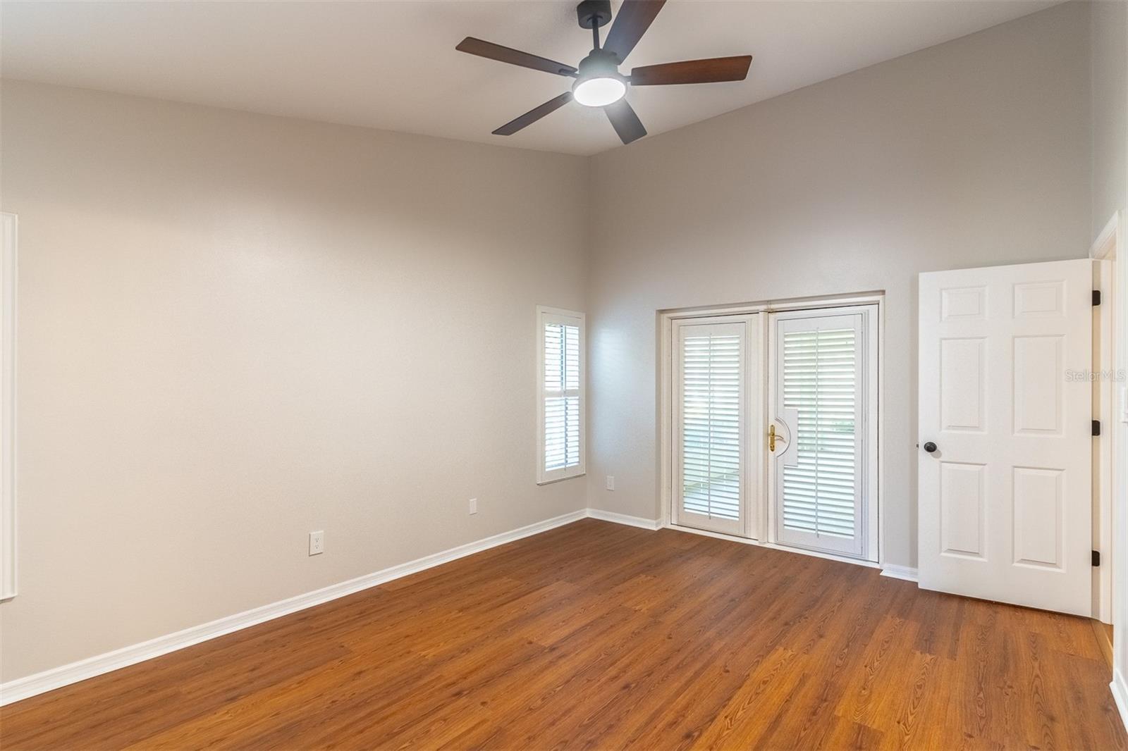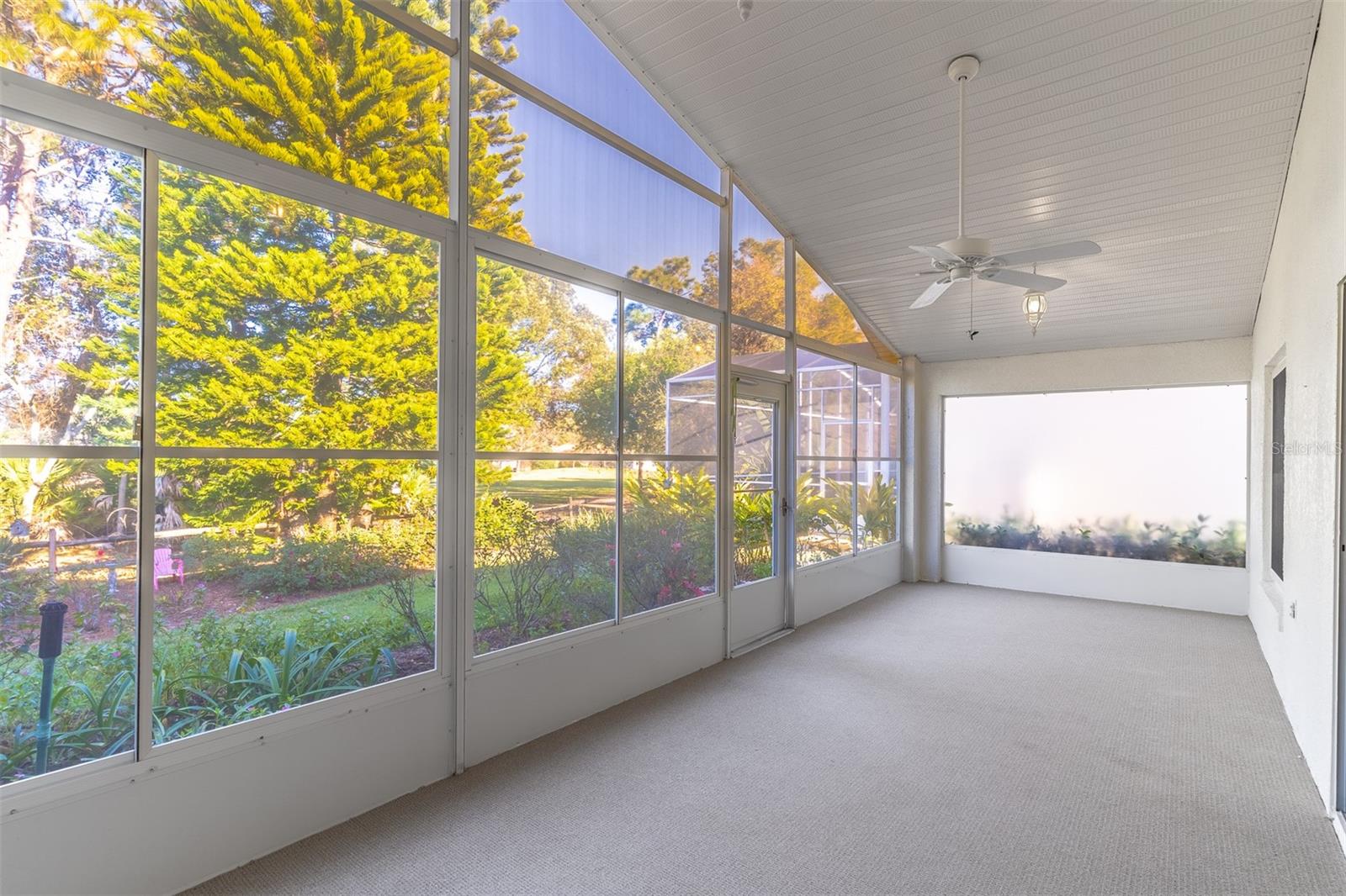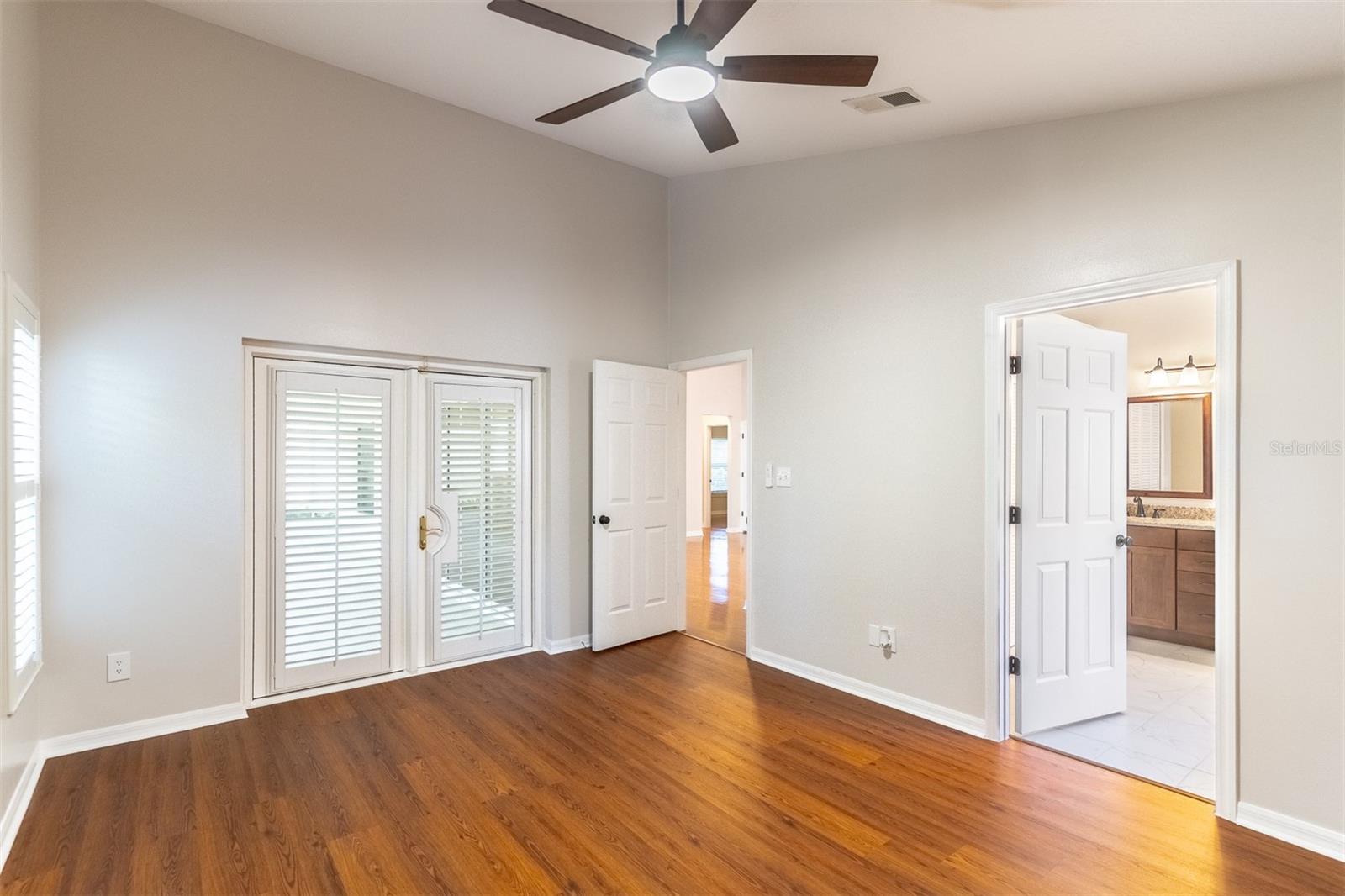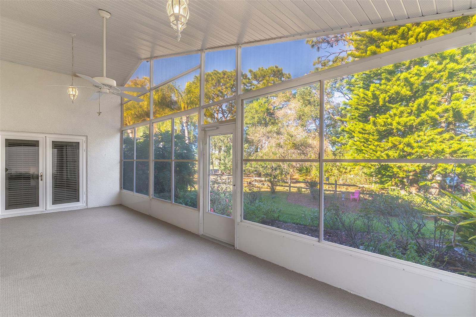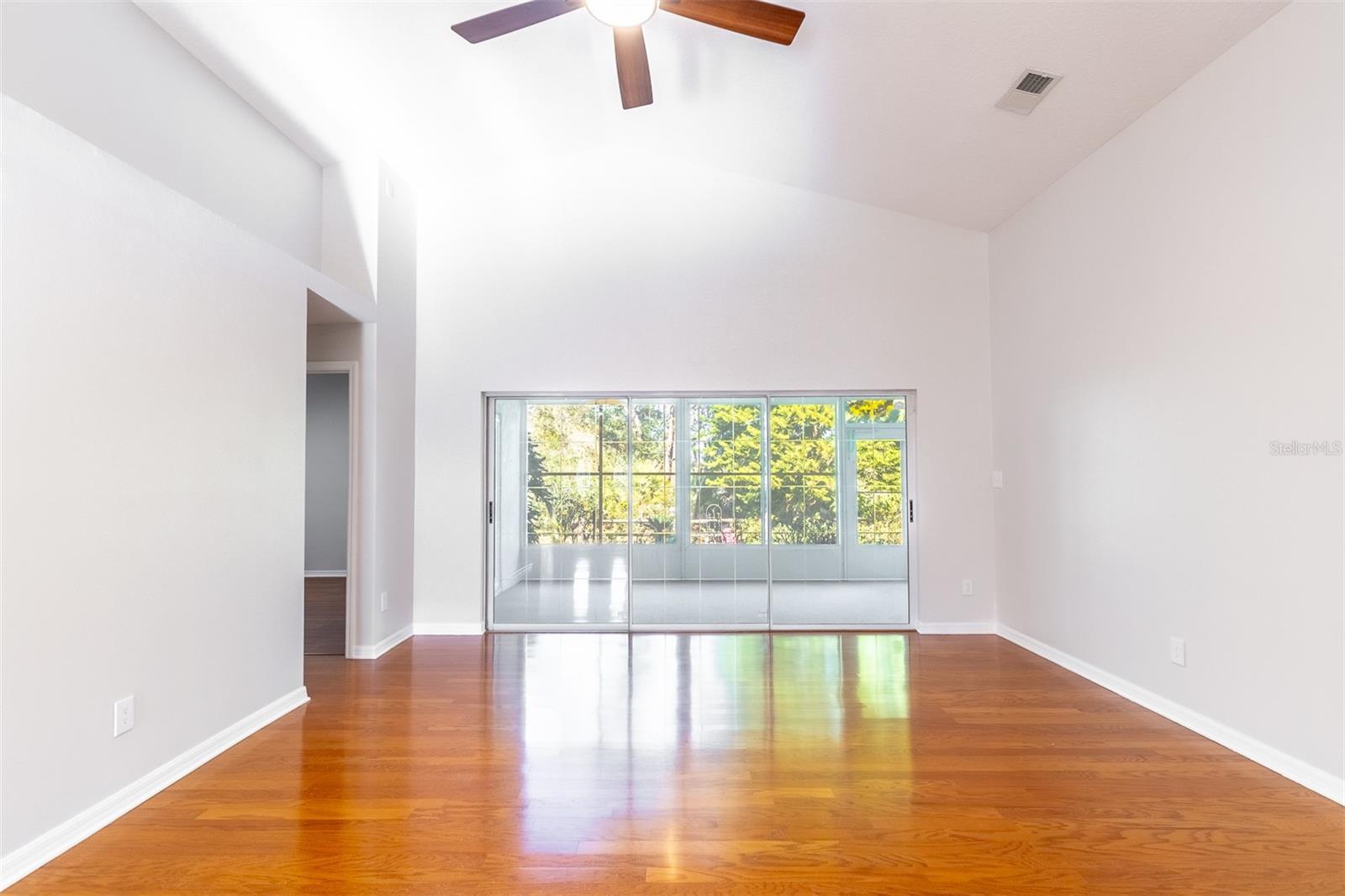 One or more photo(s) has been virtually staged. This wonderful split plan golf course view home is located in the desirable Wekiva Green neighborhood. An open foyer greets you when you enter which transitions seamlessly into the living room which offers peaceful views of mature landscaping and the golf course. The living room also showcases wood flooring, high ceilings and stackable sliders that lead you to the screened-in patio. The kitchen boasts fresh white cabinets, stainless steel appliances, closet pantry and a cozy eat-in area. The kitchen flows right into the dining area. The primary retreat provides French doors with direct access to the screened-in patio, wood flooring and an ensuite bathroom complete with walk-in closet, double sink vanity, soaking tub and separate shower. The additional 2 bedrooms are located on the other side of the home and share a hallway bathroom. The screened-in patio is carpeted and has a ceiling fan; this space provides the perfect spot to enjoy the Florida lifestyle while offering secluded views of the Wekiva Golf Course. Other amenities include plantation shutters, wood flooring in all bedrooms & living spaces and an interior laundry room. Welcome Home!
