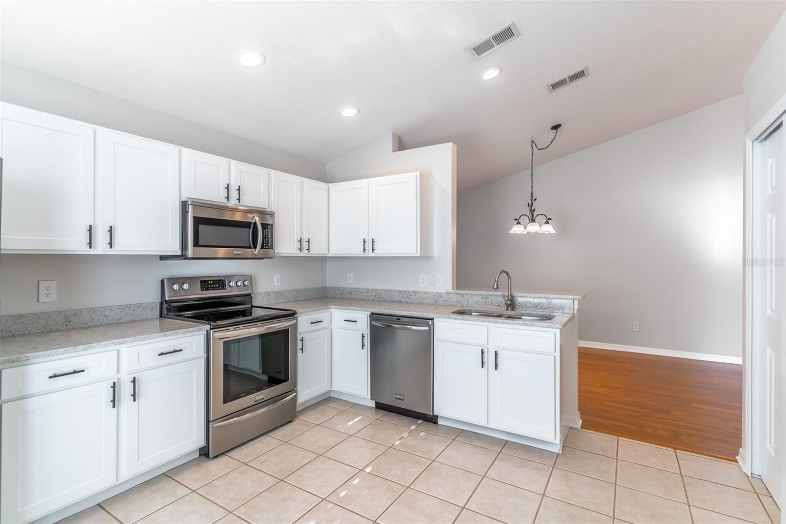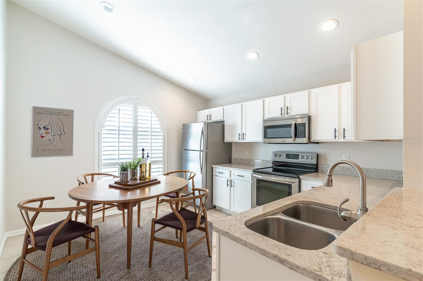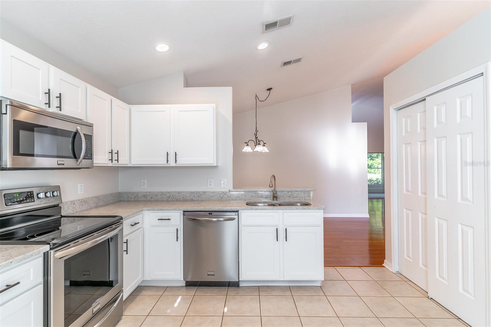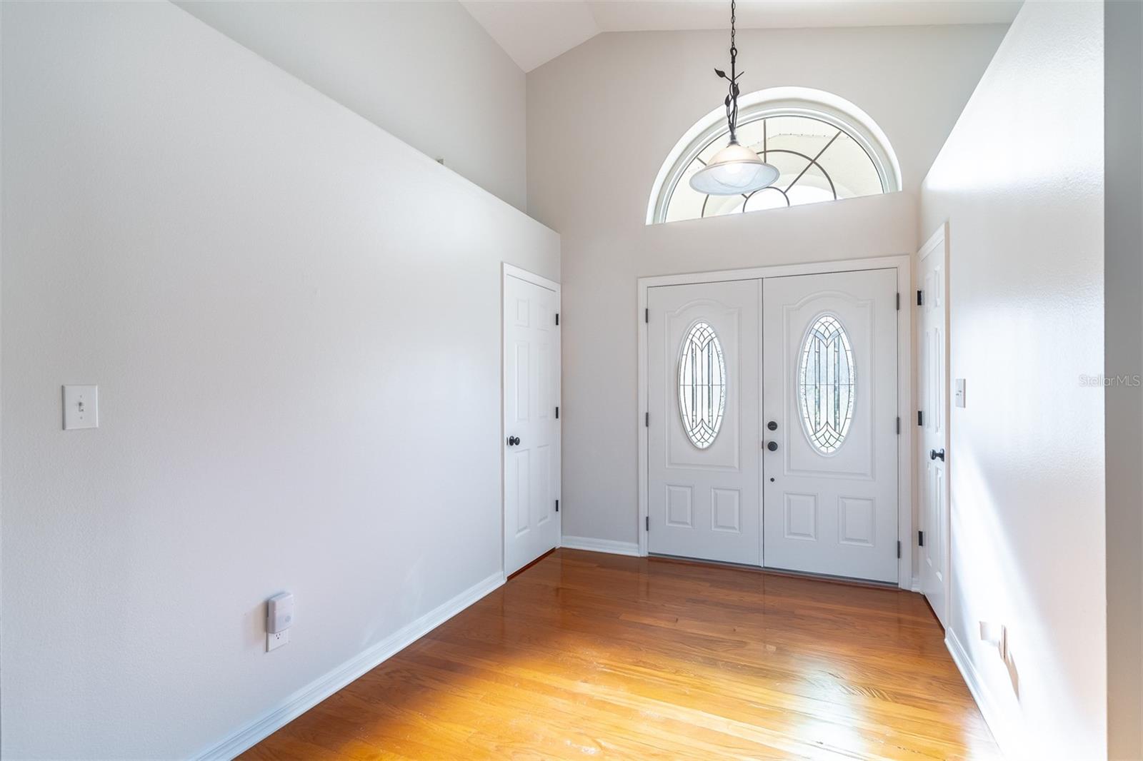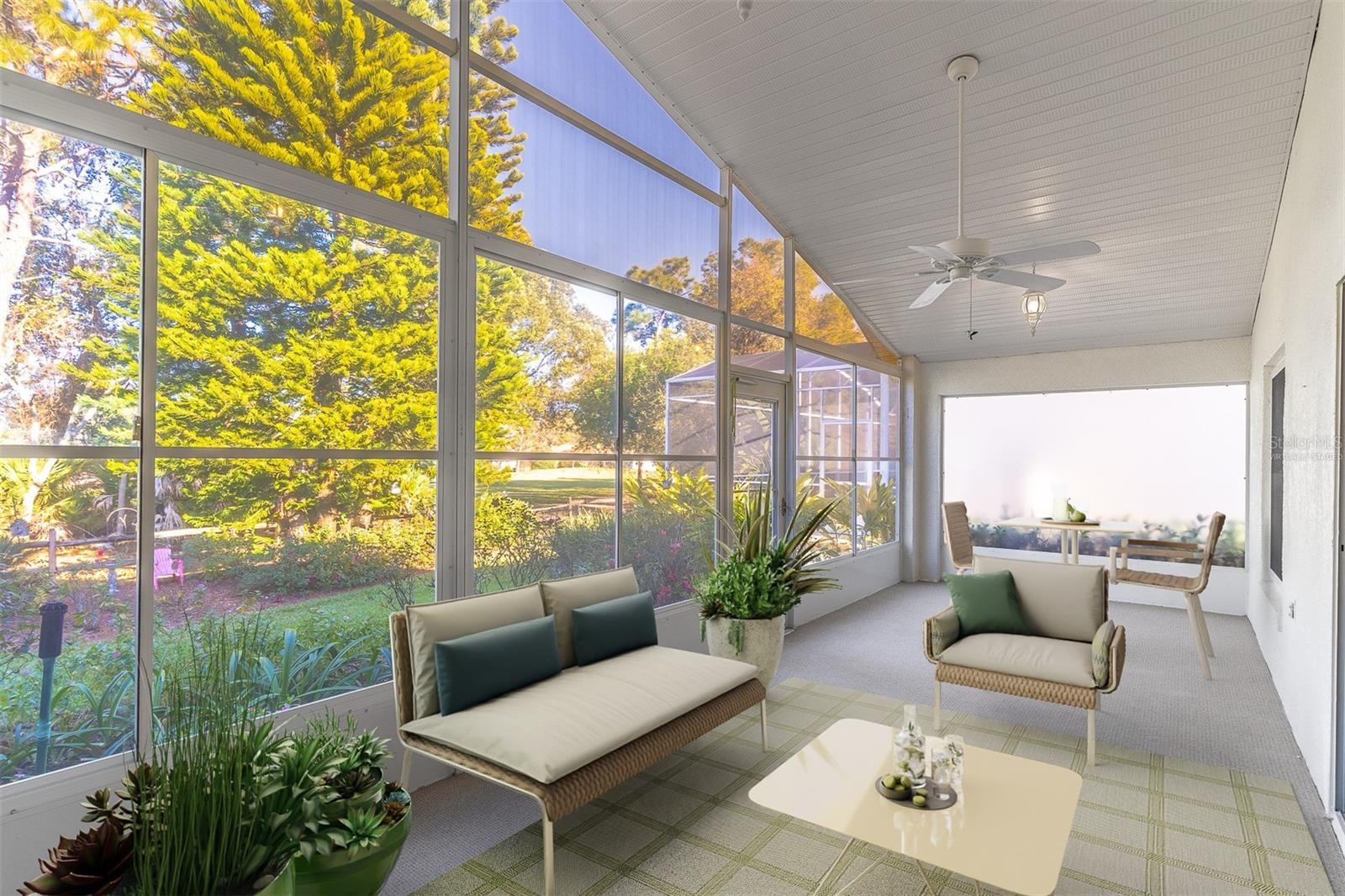 One or more photo(s) has been virtually staged. This wonderful split plan golf course view home is located in the desirable Wekiva Green neighborhood. An open foyer greets you when you enter which transitions seamlessly into the living room which offers peaceful views of mature landscaping and the golf course. The living room also showcases wood flooring, high ceilings and stackable sliders that lead you to the screened-in patio. The kitchen boasts fresh white cabinets, stainless steel appliances, closet pantry and a cozy eat-in area. The kitchen flows right into the dining area. The primary retreat provides French doors with direct access to the screened-in patio, wood flooring and an ensuite bathroom complete with walk-in closet, double sink vanity, soaking tub and separate shower. The additional 2 bedrooms are located on the other side of the home and share a hallway bathroom. The screened-in patio is carpeted and has a ceiling fan; this space provides the perfect spot to enjoy the Florida lifestyle while offering secluded views of the Wekiva Golf Course. Other amenities include plantation shutters, wood flooring in all bedrooms & living spaces and an interior laundry room. Welcome Home!