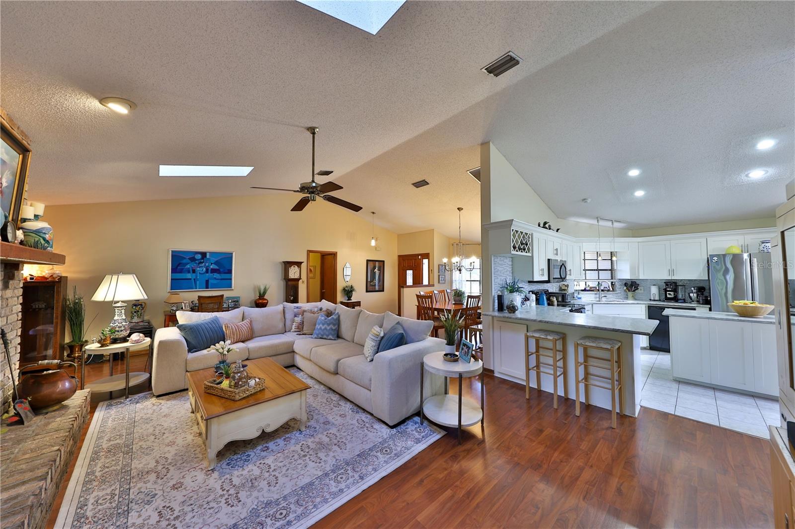 Outstanding 3 BD/ 2 Bath. Open concept , single story with a lot of natural light. Gourmet Updated Kitchen,with Stainless steel Refrigerator New Roof 2023! New Hoitwater heater, Beautiful Laminate flooring.Vaulted Ceilings, Wood burning Fireplace. Skylights, Surrounding the back porch with French doors. Move in Ready! Hurry! Won't Last!!