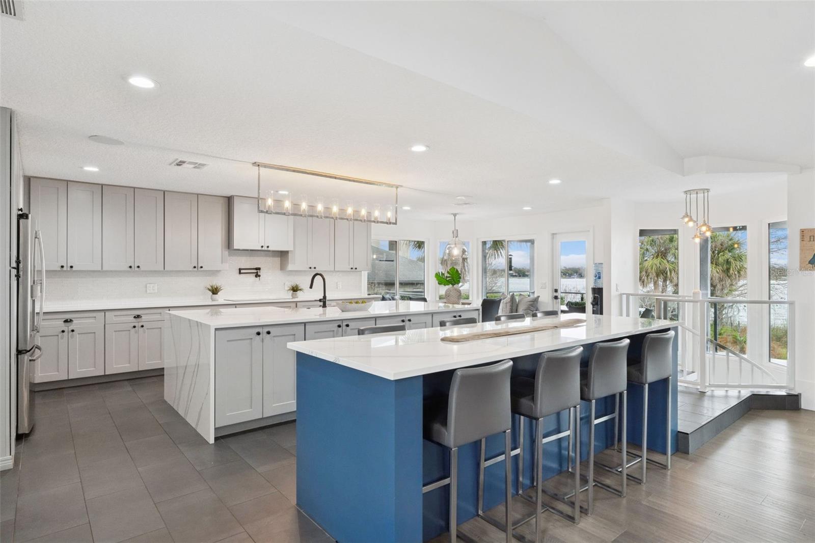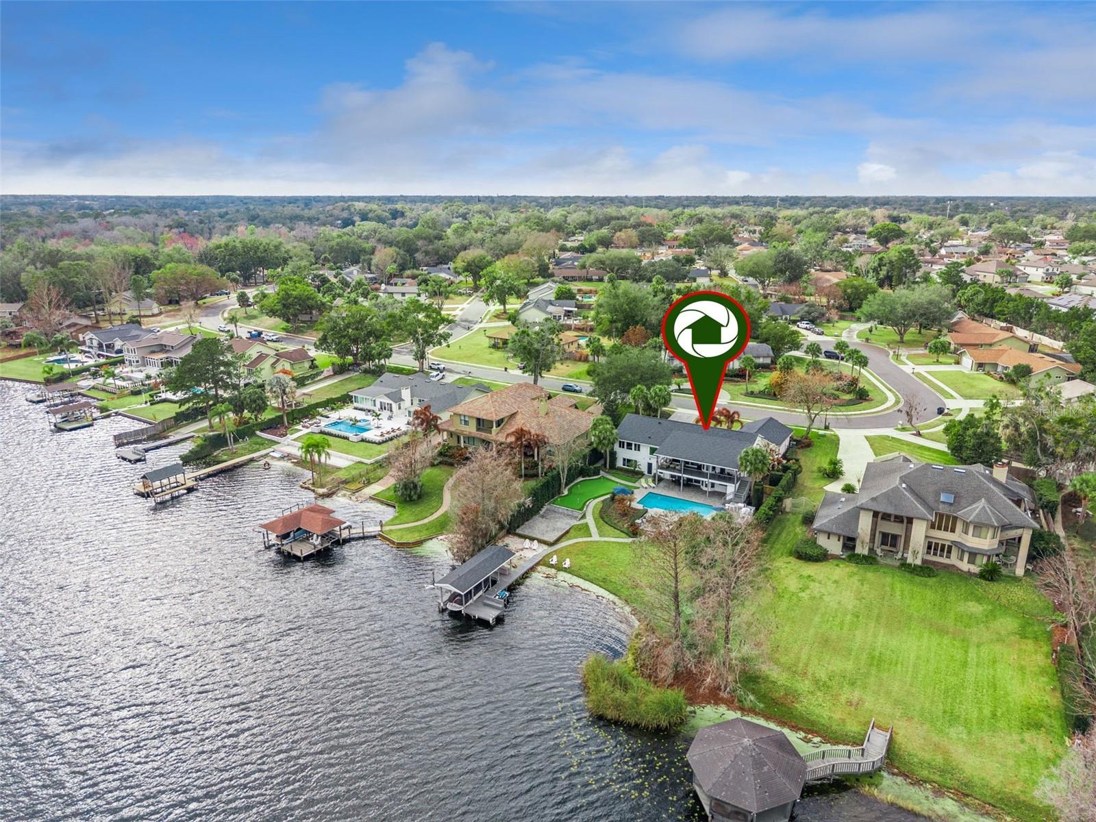 This luxury lakefront estate on Lake Brantley delivers the ultimate Central Florida waterfront lifestyle. Originally built in the 1980s and completely reimagined, the home features a new roof (2020), fully repiped plumbing, natural gas, a new gas water heater, and dual HVAC systems (2018). Interior upgrades include a brand-new chef’s kitchen with 42” cabinetry, Cambria quartz countertops, double wall ovens, cooktop with pot filler, under-counter microwave, wine refrigerator, and premium appliances. An oversized island and dining area that was meant for entertaining. All bathrooms have been remodeled down to the studs. High-impact PGT windows and sliders, high-end wood flooring in the bedrooms, large-format tile everywhere else. The tongue-and-groove porch ceilings, both upstairs and down, elevate the modern coastal design. The downstairs game room includes a wetbar, pool table, and views of the lake. The additional downstairs bedroom is oversized and provides flexible living space. Outdoor living is unmatched: refinished pool (2021), new pool equipment, custom-built wood-fired pizza oven, built-in grill station, whole-home audio (inside and out), multi-camera security, 24’ x 40’ putting green, and 30’ x 40’ basketball court, fire pit with sitting area, and sandy beaches. The rebuilt dock, boathouse, and 7,500-lb boat lift provide turnkey access to this 287-acre private, spring-fed lake - ideal for wake surfing, boating, paddle boarding, and fishing. This is a rare opportunity to own a turnkey direct frontage home on one of Longwood’s most sought-after lakes. Resort-style living. Fully upgraded. Move-in ready. Make your appointment to take a look today.