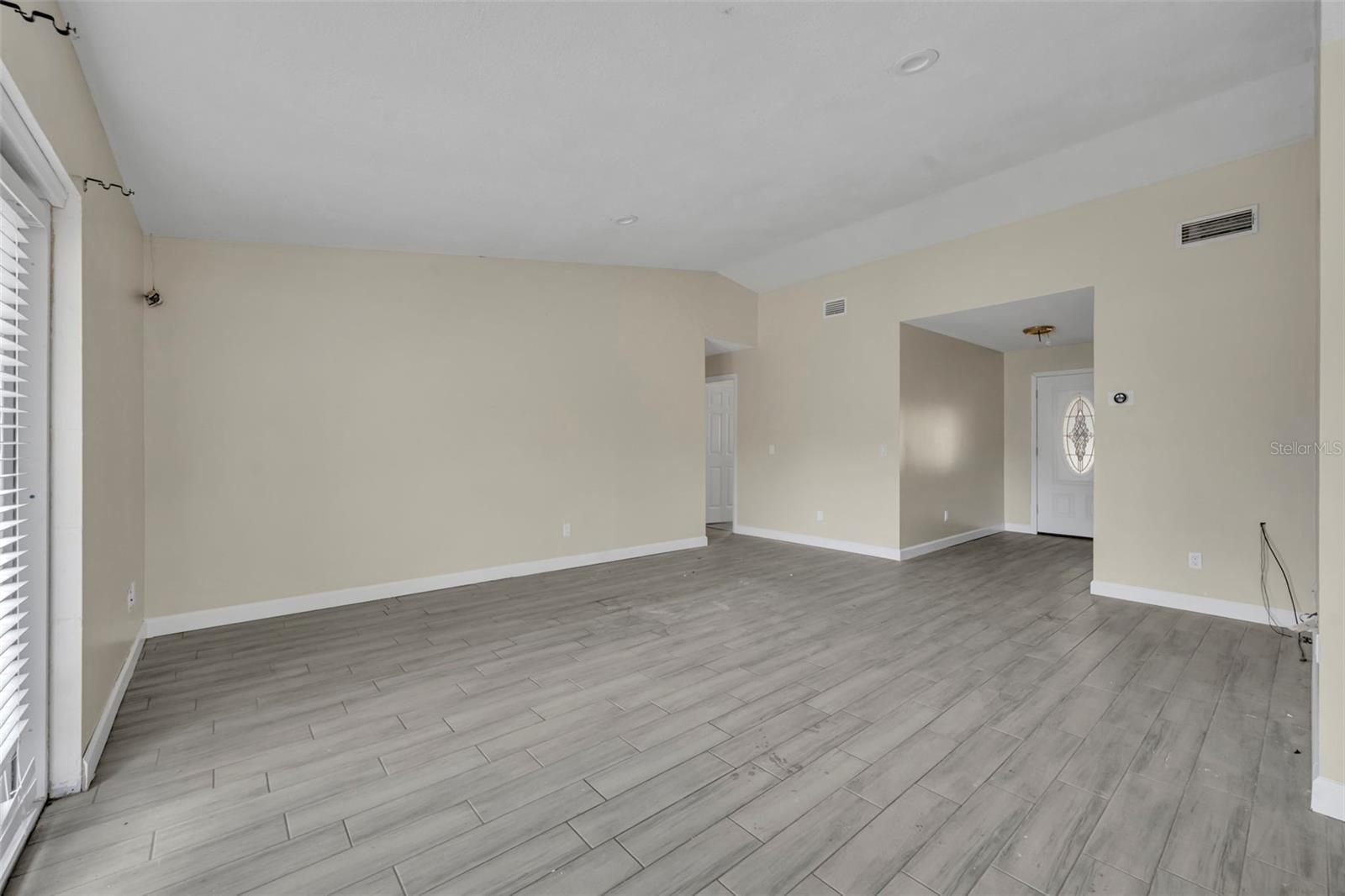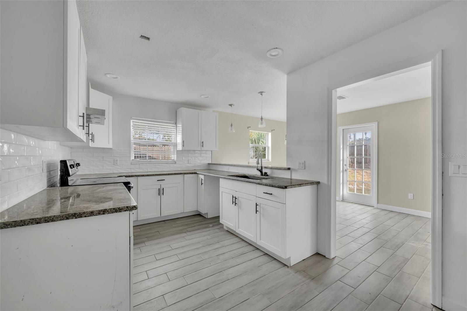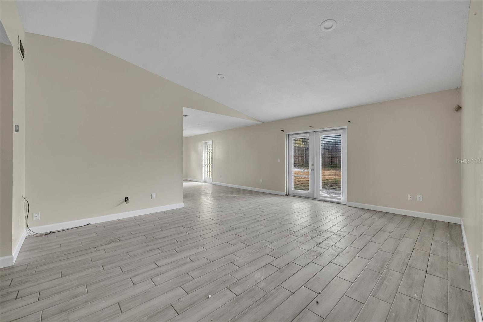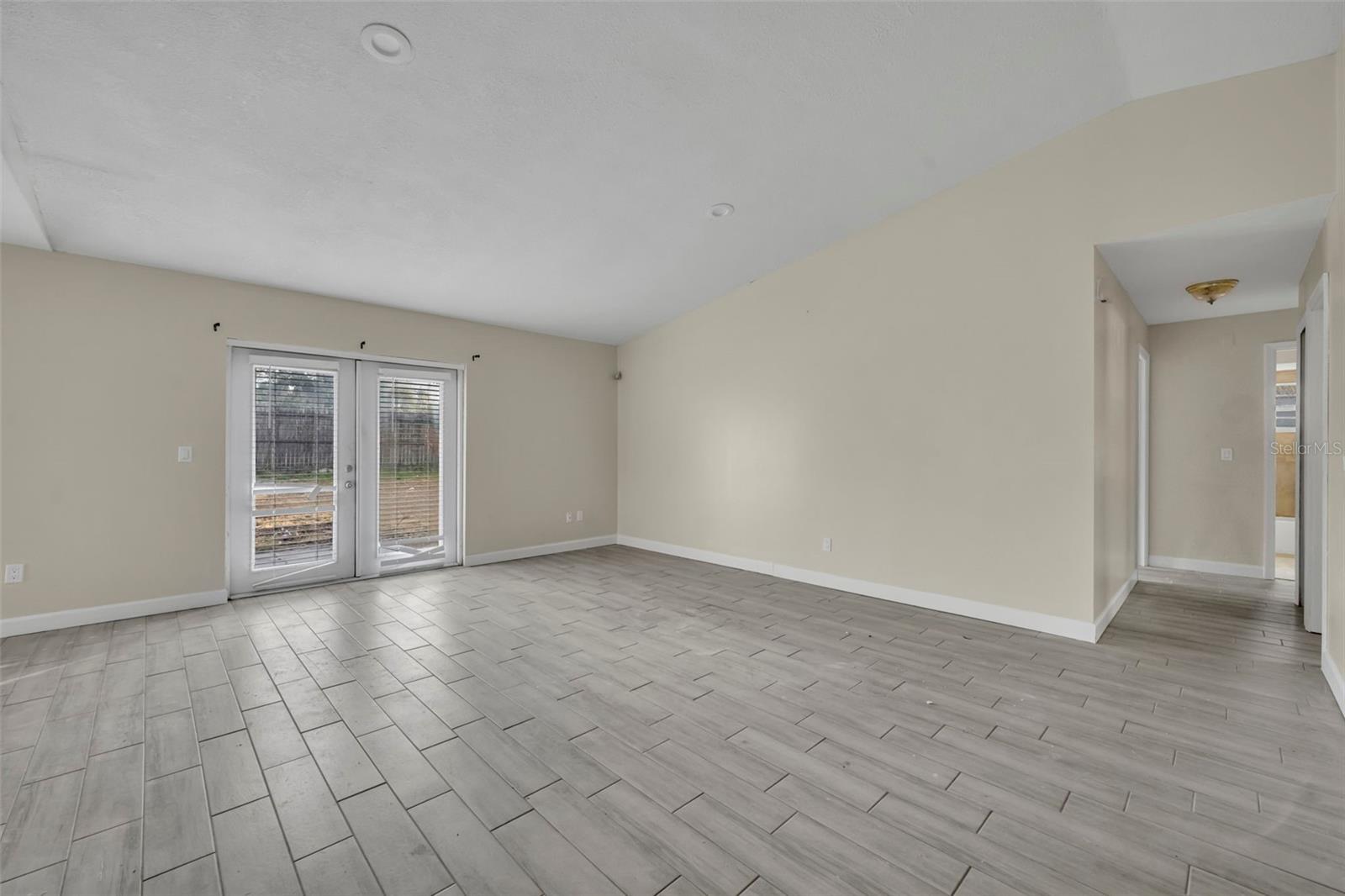 Opportunity awaits in this 3 bedroom, 2 bath home offering 1,399 SF home. Featuring an open layout with neutral tile flooring throughout the main living areas, this home provides a solid foundation for buyers looking to personalize and add value. The kitchen offers white cabinetry, new countertops, subway tile backsplash, and a functional layout overlooking the main living space — a great starting point for your finishing touches. The spacious living and dining areas flow to French doors leading to the backyard, allowing for natural light and indoor-outdoor potential. The primary bedroom offers a comfortable retreat with natural light and a private en suite bath. The bathroom features a nice size walk-in closet, walk-in shower with clean white tile surround, updated vanity, and a window that allows for beautiful natural light. The garage has been converted into additional living space and includes a designated laundry area; however, this conversion is not fully complete and will require finishing work. This property still needs cosmetic updates and finishing touches, making it ideal for investors, renovators, or buyers with the right vision to make it their prefect home!