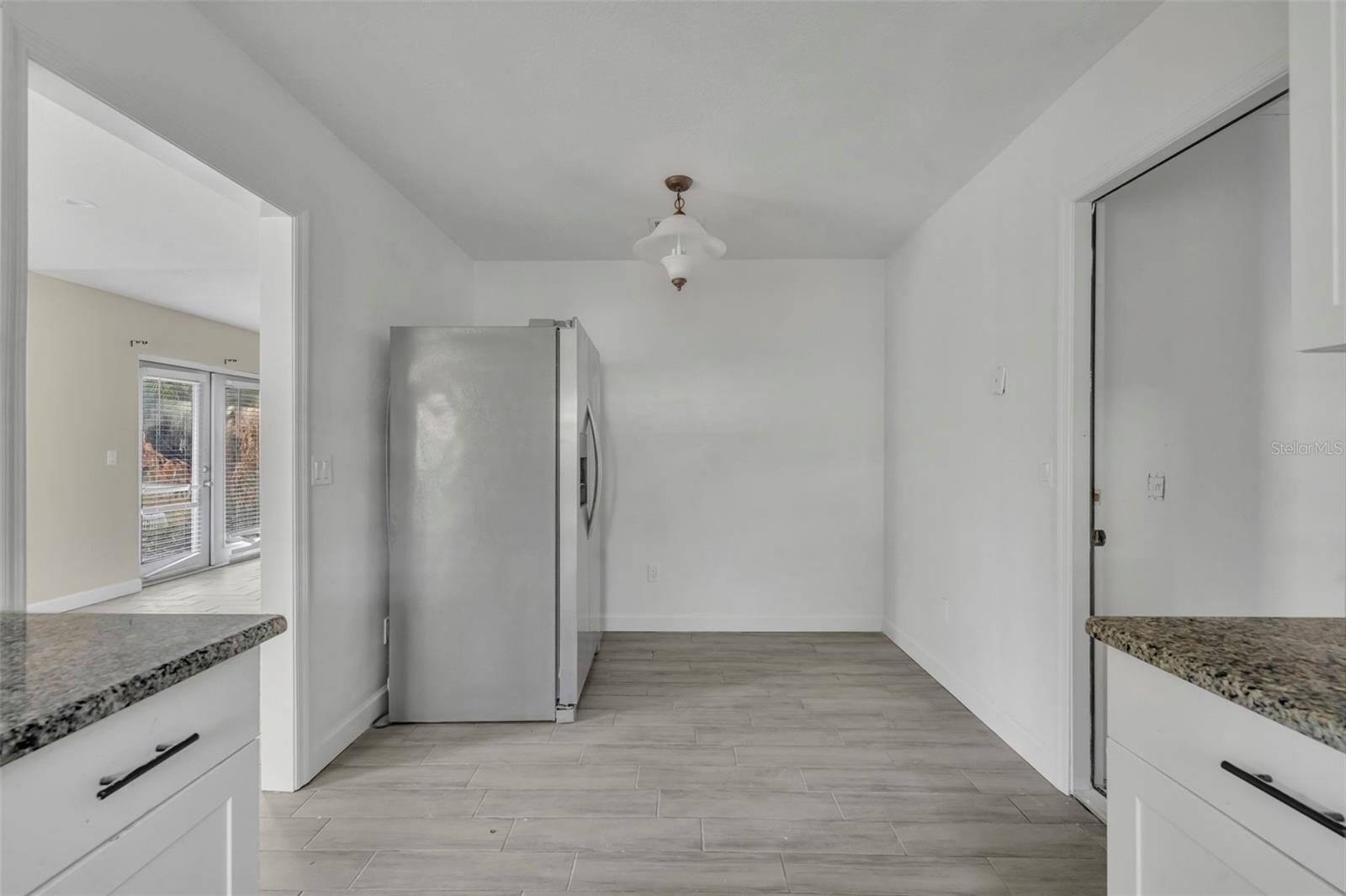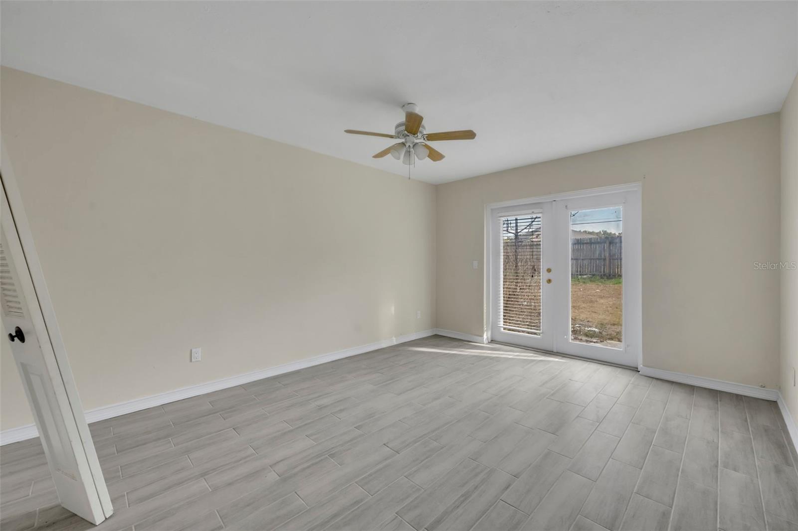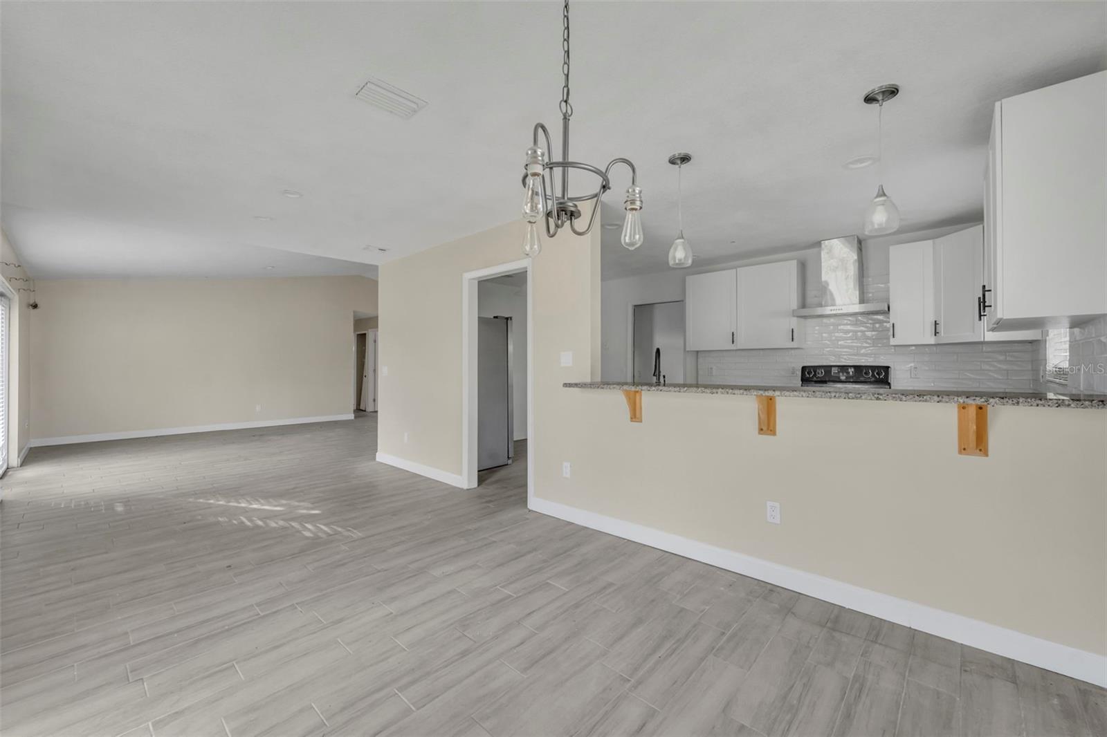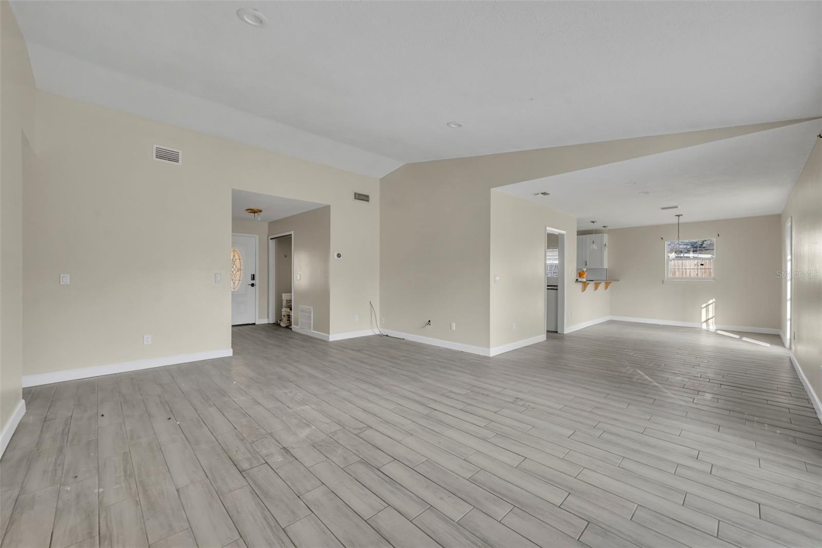 Opportunity awaits in this 3 bedroom, 2 bath home offering 1,399 SF home. Featuring an open layout with neutral tile flooring throughout the main living areas, this home provides a solid foundation for buyers looking to personalize and add value. The kitchen offers white cabinetry, new countertops, subway tile backsplash, and a functional layout overlooking the main living space — a great starting point for your finishing touches. The spacious living and dining areas flow to French doors leading to the backyard, allowing for natural light and indoor-outdoor potential. The primary bedroom offers a comfortable retreat with natural light and a private en suite bath. The bathroom features a nice size walk-in closet, walk-in shower with clean white tile surround, updated vanity, and a window that allows for beautiful natural light. The garage has been converted into additional living space and includes a designated laundry area; however, this conversion is not fully complete and will require finishing work. This property still needs cosmetic updates and finishing touches, making it ideal for investors, renovators, or buyers with the right vision to make it their prefect home!