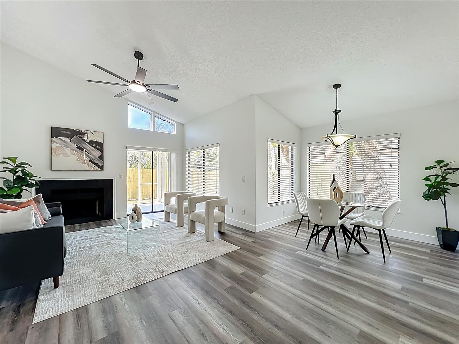 Beautifully renovated home in the heart of Longwood, just steps to Reiter Park. This move-in ready property features soaring ceilings, abundant natural light, and wood-look flooring throughout. The updated kitchen offers bright cabinetry, quartz countertops, stainless steel appliances, and modern finishes. The spacious living area includes vaulted ceilings and a fireplace, creating a welcoming focal point. Sliding glass doors provide great natural light and access to the backyard. Have peace of mind with a gated community, new roof, and new AC. Updated bathrooms and well-sized bedrooms complete the interior. Community amenities include pool, tennis courts, walking trails. Conveniently located near Historic Downtown Longwood, shopping, dining, SunRail, and major roadways.