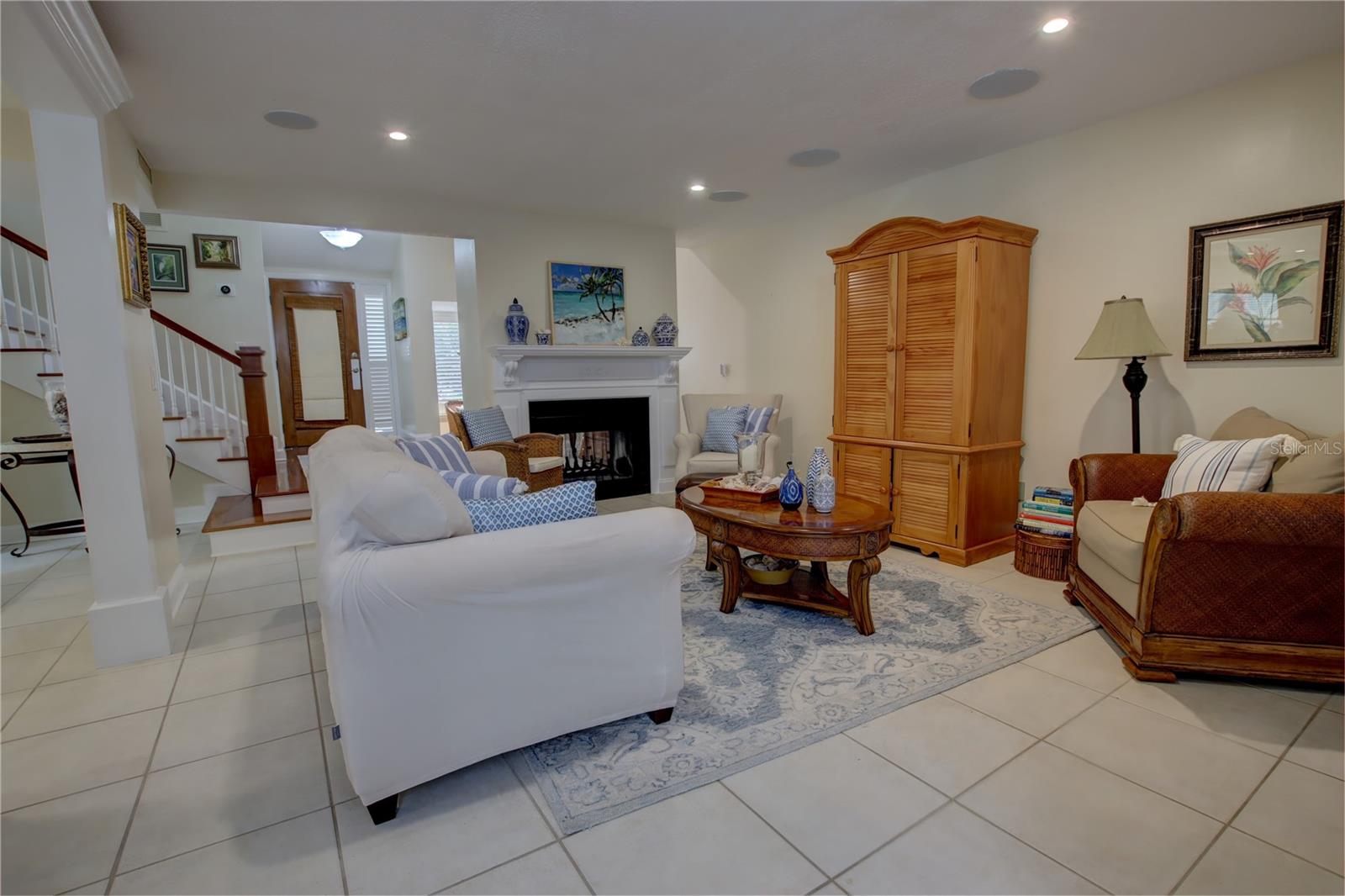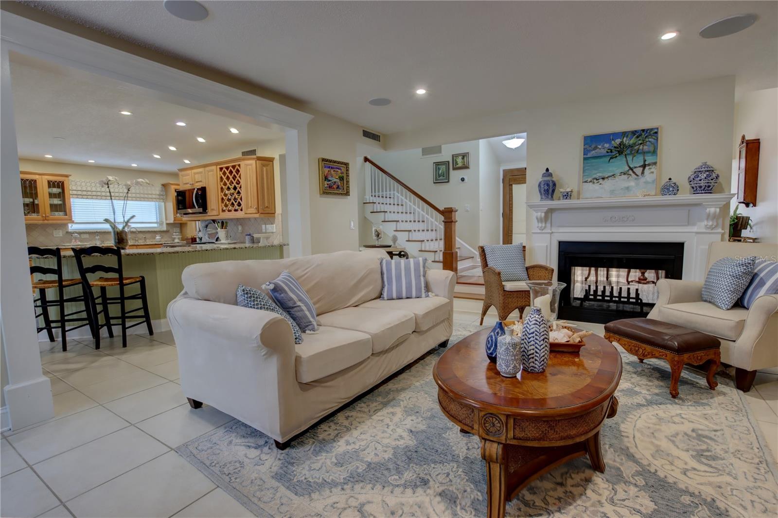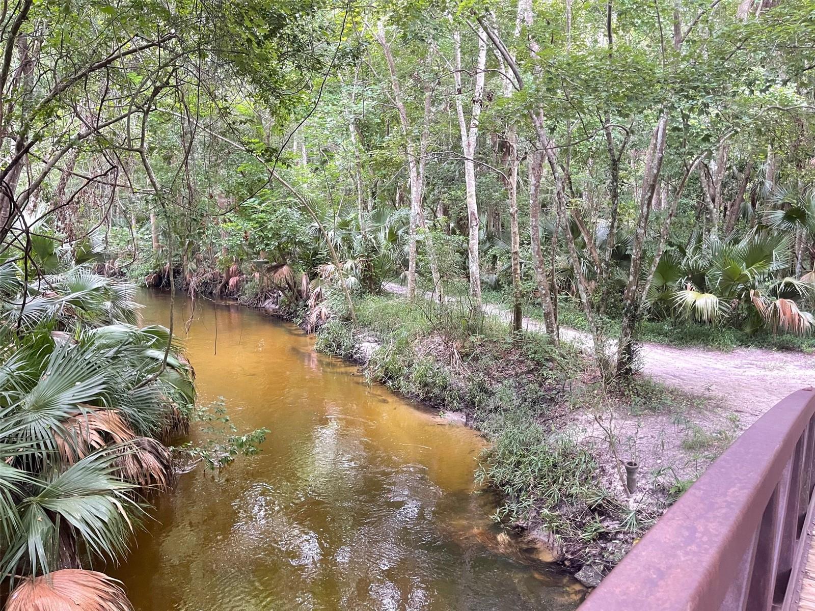 Schedule YOUR SHOWING TODAY. LET'S GET INTO IT Discover your dream home in this extraordinary property, located in the exclusive, gated community of The Springs. This riverfront treasure offers an unmatched lifestyle, steps from a pristine sandy beach and the community's private spring waters. Upon entering this beautifully designed home, you'll be greeted by a spacious, open floor plan featuring 3 bedrooms, 2.5 baths, and large windows that fill the space with natural light and stunning views. The covered front patio leads you into a magnificent foyer, highlighted by a double-sided fireplace, vaulted ceilings, and a generous living area perfect for luxurious living. The chef's kitchen is a culinary delight with elegant granite countertops, stainless steel appliances, a built-in wine refrigerator, custom maple cabinets with crown molding, and a built-in wine rack. This kitchen flows seamlessly into the family room and formal dining area, making it ideal for entertaining. On the lower level, you'll find a private office with views of the peaceful backyard, (this could be converted into a fourth bedroom), a convenient half bath, and a laundry room with built-in cabinets, a stainless steel sink, new plumbing, and quartz countertops. Upstairs, the primary bedroom is a true retreat with vaulted ceilings, a cozy fireplace, a hardwood floor, a spacious walk-in closet, and French doors that open to a private patio balcony offering breathtaking river views. The luxurious master bath features dual sinks, granite countertops, a walk-in shower with seamless glass, and a jetted tub. All bedrooms have hardwood floors. Outdoor lovers will appreciate the expansive backyard with lush landscaping and large raised decks perfect for barbecues and enjoying the serene and quiet surroundings. The Springs community boasts a wealth of amenities, including a 24-hour guarded gate, clubhouse with spring views, tennis courts, pickleball, a basketball court, horse stables, a swimming pool, a playground, hiking trails, and year-round access to crystal-clear spring waters. Whether picnicking under the shade of majestic live oaks or swimming in the natural spring, every moment in this gated paradise feels like a vacation. Experience the pinnacle of Florida living. Schedule your private tour today and make this stunning residence your forever home!