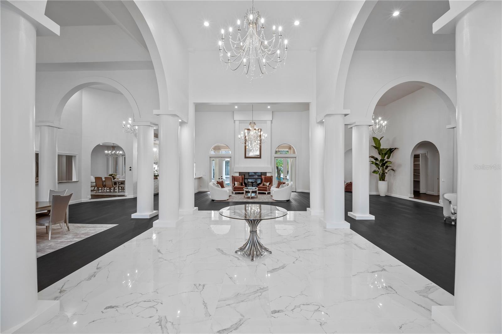 Welcome home to this exceptional executive estate located within the prestigious 24-hour manned, gated community of Sweetwater Club. Privately positioned on an elevated 1.27-acre corner lot, this remarkable residence features a 4-car garage, circular driveway, and commanding curb appeal. Step through the oversized front door into a grand, open-concept interior designed for both luxury living and entertaining. The expansive main living area seamlessly connects the foyer, formal dining room, living room, sitting area, wet bar, and den, all overlooking a stunning courtyard-style pool, creating an ideal indoor-outdoor flow. The chef’s kitchen is truly impressive, showcasing solid wood cabinetry, high-end granite countertops, pendant lighting, two dishwashers, double convection ovens, a spacious walk-in pantry, and new appliances including refrigerator, freezer, double oven, and built-in microwave. The private south wing is dedicated to an extraordinary owner’s suite offering a fireplace, office or nursery, dual walk-in closets, and a spa-inspired bath complete with jetted tub, walk-in shower, and a fully equipped fitness room with direct access to the pool deck. Upstairs, you’ll find three additional bedrooms, two beautifully appointed bathrooms, a large game room, and a breezeway with balcony access leading to the pool house / in-law suite, perfect for guests or multi-generational living. Conveniently located just minutes from Wekiva Springs State Park, Sweetwater Golf & Country Club, shopping, dining, and everyday conveniences. Furnishings available. This is a rare opportunity to own a truly one-of-a-kind luxury retreat—schedule your private showing today.