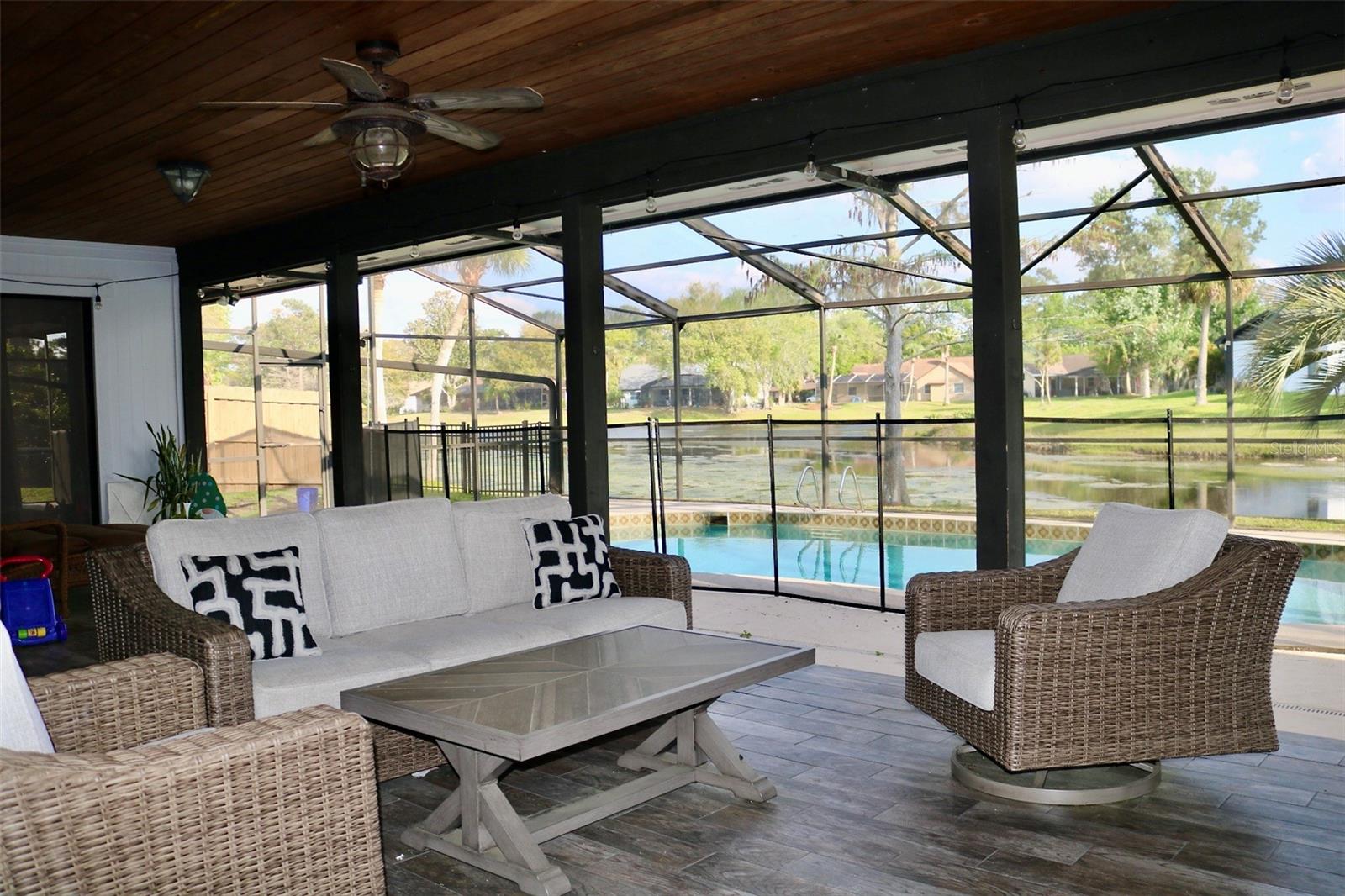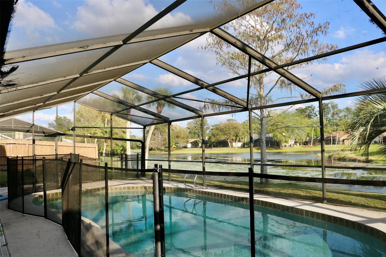 Child Safety Fence, Diving Board, Gunite, In Ground, Lighting, Salt Water, Screen Enclosure, Tile