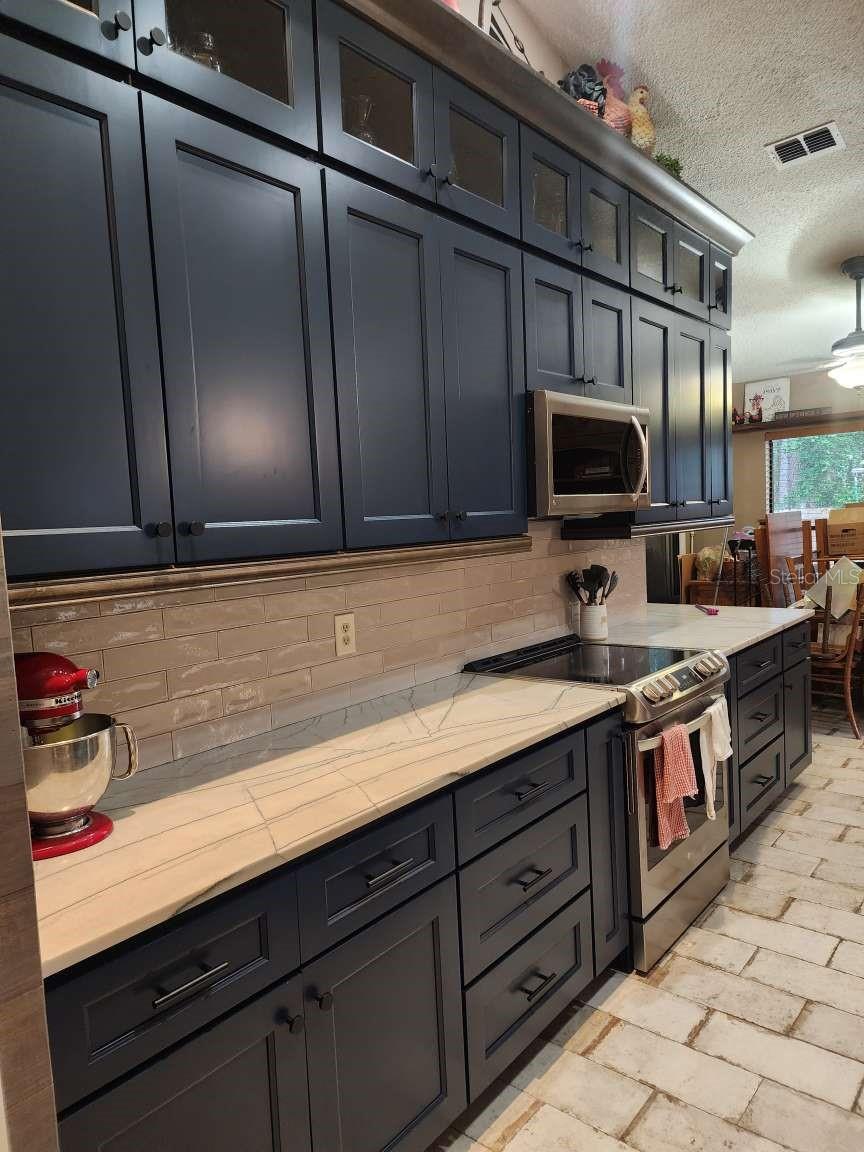 Your Search Is Over!! The perfect home in a hidden gem of a neighborhood in desirable Longwood. The fully-landscaped front yard and stamped concrete patio with firepit area is the perfect place to entertain and visit your AMAZING neighbors. The main living areas feature vaulted ceilings, engineered wood and tile floors, new interior doors, baseboard and trim and fresh paint throughout. The newly remodeled, gourmet kitchen is any cook's dream; boasting a stained shiplap feature wall, quartzite countertops, custom midnight blue and glass cabinets and soft close hinges and rollout. The new, stainless appliances all stay with the home! When you're not hanging out around the Walnut butcher block bartop with the cook, you can relax in the front dining/living room OR the back den by the brick fireplace. Little ones can play in the insulated/cooled/heated flex-room that could double as a workout area or office. The 2 guest bedrooms are spacious while the large master has high ceilings, a walk-in closet and linen closet, as well as your newly remodeled spa-like master bathroom. Refresh under the rain-head in the walk-in shower or bubble-it-up in the separate soaker tub. Enjoy the private backyard with mature landscaping, patio and rubber mulch around the park-like playground which conveys with the home! A newly renovated hall bath, dedicated laundry room with barn door, and large 2 car garage round out the perfect home for you! New roof in 2023, main A/C serviced this month, new mini-split in rear of home.