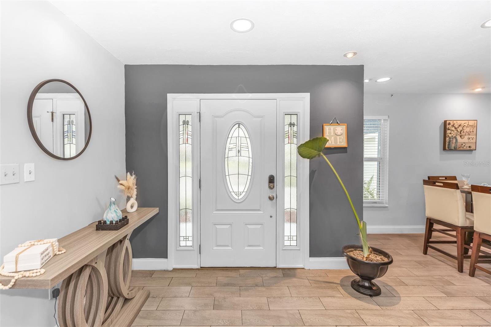 Under contract-accepting backup offers. Welcome to your private Florida retreat—where style, comfort, and outdoor living come together on a spacious .41-acre homesite. This beautifully updated 3-bedroom, 2.5-bathroom home is packed with upgrades and thoughtfully designed for both everyday living and entertaining. Step inside to soaring high ceilings complemented by wood beam accents and an inviting living space centered around a cozy electric fireplace. The kitchen is modern, featuring white cabinetry, stainless steel appliances, and a sleek black subway tile backsplash that adds the perfect designer touch. Enjoy seamless indoor-outdoor living with three sliding glass doors that lead to your covered patio, complete with skylights that fill the space with natural light and create the perfect setting to relax or entertain. The spacious primary suite is a true retreat, offering its own private sliding glass door, two walk-in closets, and a beautifully updated en-suite bathroom with a granite double vanity and a glass-enclosed shower. The guest bathroom has been tastefully updated with new tile, and the additional half bath provides added convenience for guests. Step outside and experience your fully fenced backyard oasis, complete with a screened-in pool, outdoor kitchen, and a hot tub that is included with the home—all overlooking a peaceful pond view. Whether you’re hosting gatherings or enjoying quiet evenings, this space captures the best of Florida living. Major updates include a roof, A/C, and water heater all replaced in 2019, along with new hurricane impact windows and a full home replumb for added peace of mind. The exterior has been freshly painted, and the home also features a side-entry garage and a charming front porch that adds to its curb appeal. This home truly offers the perfect blend of modern updates, character, and outdoor lifestyle—don’t miss your opportunity to make it yours. Schedule your private showing today! Property may be under audio and visual surveillance.
