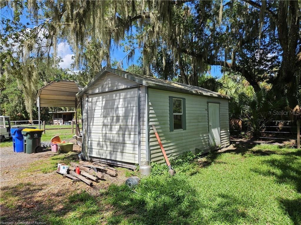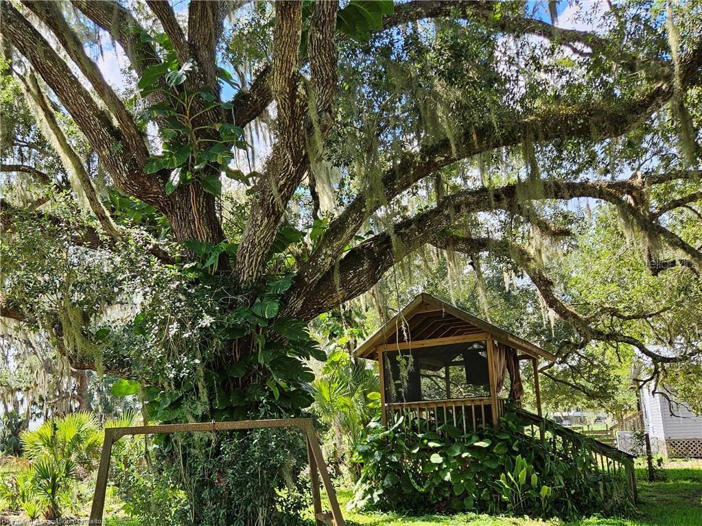 Enjoy your meandering drive through a majestic Oak Hammock to this 5.38-acre property at the end of the road. When you enter, you will view a park like setting of large Oak trees with fenced pastures. Watch out for the wild deer and turkeys while driving to the house. The 3 bedroom x 2 bath home has a welcoming large front screen porch that overlooks the cool Oak Hammock. The home has a new metal roof that covers this well cared for double wide home. The home has a backup propane Generac generator that can energize the entire house. The appliances are included. A very large steel beam and concrete barn has 3 front roll up doors, 2 entrance doors, and a large roll up door in the back. This 90 ft x 35 ft barn even has a central airconditioned partitioned office with its own bathroom and separate septic system. The high 20 ft ceilings can provide plenty of room for your large toys. Other items include a 12 x24 work shed, a 25 x 16 animal barn, a custom built tree house as well as fenced pastures. The seller will consider owner financing with $250,000 cash down and 7% interest rate plus a 2 year balloon. This is a rare opportunity to have so much in a peaceful environment.