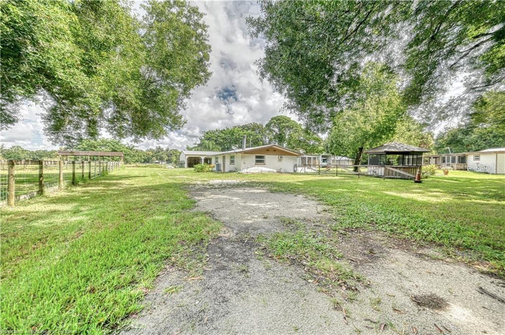 Own your own piece of "old Florida"! Located in beautiful Lorida, minutes from Sebring and Lake Placid! This property features almost 5 acres of land, separately fenced, with horse stalls in one section. It also features a main house with 3 bedrooms and 2 bathrooms, very spacious, including a laundry room, and has a covered screen porch in front. It also has a mother-in-law cottage that could be for a family member, guest house or possibly even a rental unit. The options are endless! The guest house features 1 bedroom, 1 bathroom, laundry room, living room and kitchen. This property has 3 garages, one closed in that would make a great game room or bar, and also a workshop. The second could fit 3 RVs, and the 3rd could fit 3 cars. There is a chicken coop along with the chickens, what could be better than fresh eggs for breakfast! Give me a call and come see this beautiful property and make it your forever home!