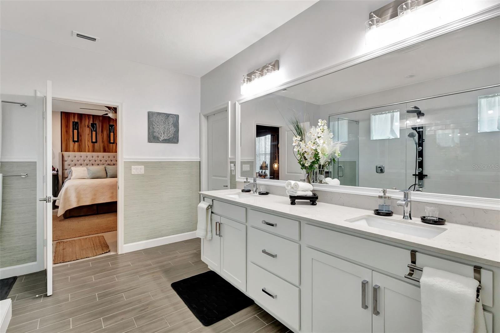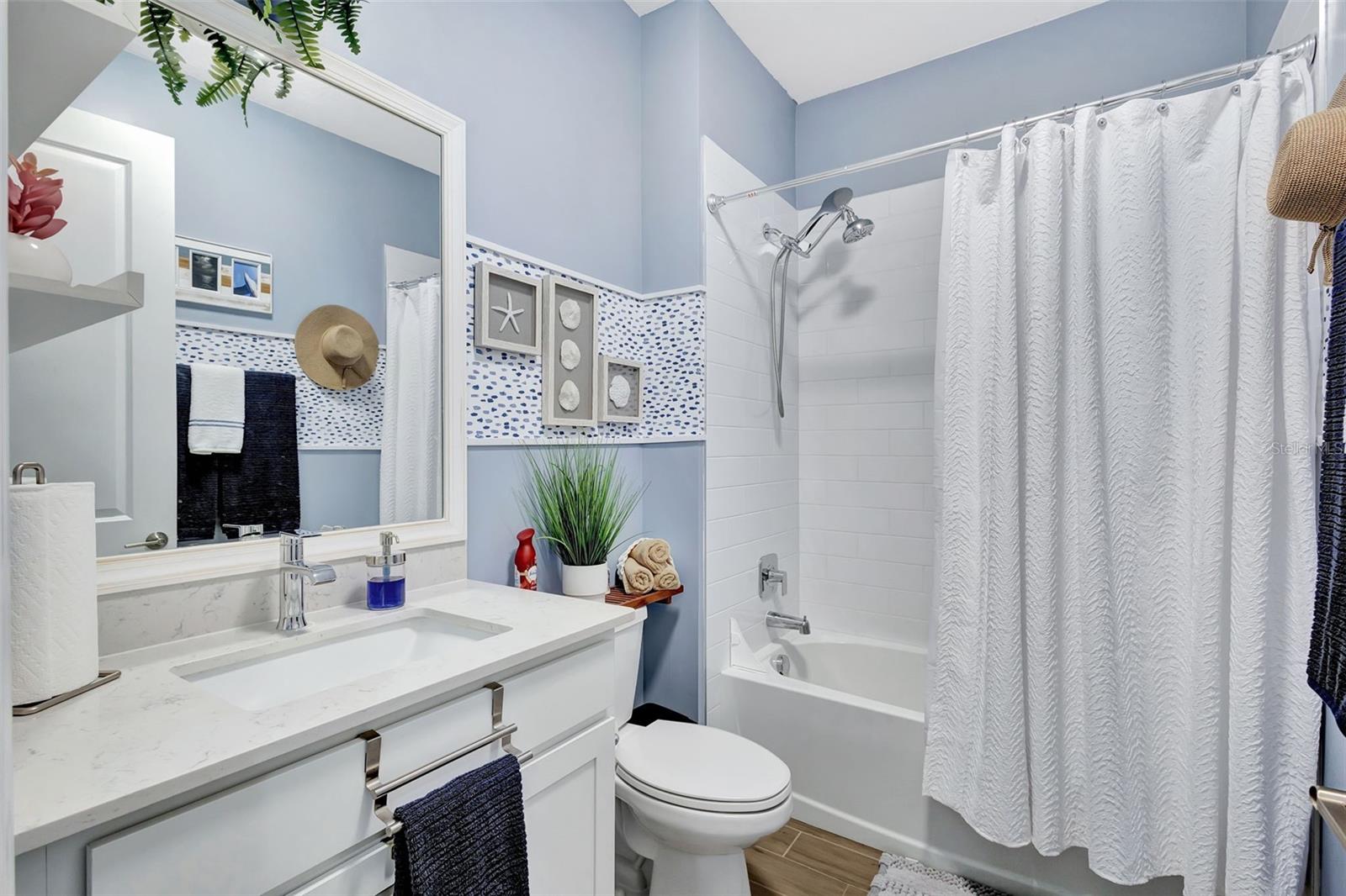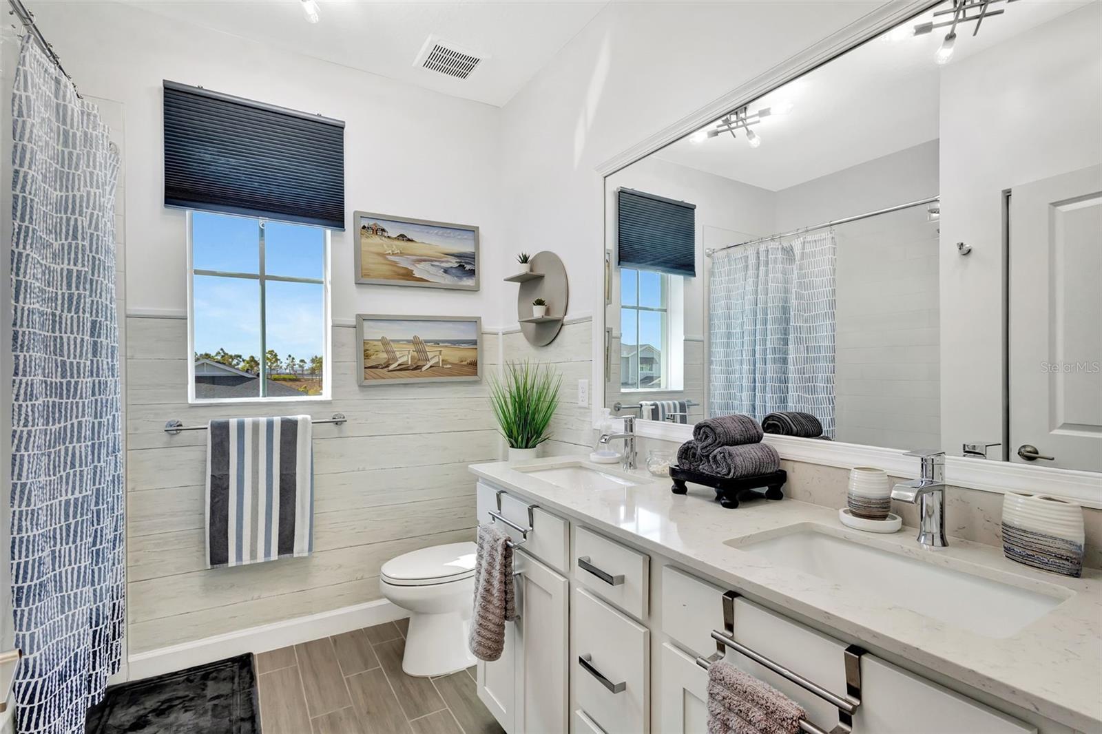 Built in October 2021, Lili model with 4 bedrooms, 3 bathrooms, loft and 2 car garage. This two story home features a modern layout with several upgrades. Open concept floorplan with a guest bedroom with 2 closets and adjacent bathroom conveniently located off the foyer. First floor has upgraded tile floors, walk in pantry, quartz countertops and gas stove. Through the sliders you access the screened in, covered lanai. Outside on the extended lanai is a 6 person, saltwater hot tub for relaxation. The large, fenced backyard surrounded with mature landscaping ensures your complete privacy and has plenty of room for a full size pool. Upstairs are 2 additional bedrooms, extra bathroom with double sinks, laundry room with full size washer, gas dryer and large linen closet. The huge master suite has spacious his and hers walk in closets, beautiful glass enclosed shower tiled from floor to ceiling and separate water closet. Neutral colors, 10 ft ceilings throughout and owners have added tasteful accent walls giving the home character and charm. Additional upgrades include whole home water filtration and softener systems, HALO whole home UV light air purification system, NEST learning thermostat, oversized 22KW natural gas powered GENERAC generator and more. Located in the award winning Arden community, a family friendly neighborhood with lots of amenities. Arden has 24hr security manned gate with a beautiful lakehouse, 20+ miles of walking/biking trails, resort style pool, splash pad, fitness center and it's very own organic farm. A second clubhouse is being built with additional amenities. 'A' rated schools with the brand new, on property West Acreage Elementary School opening in August 2025.