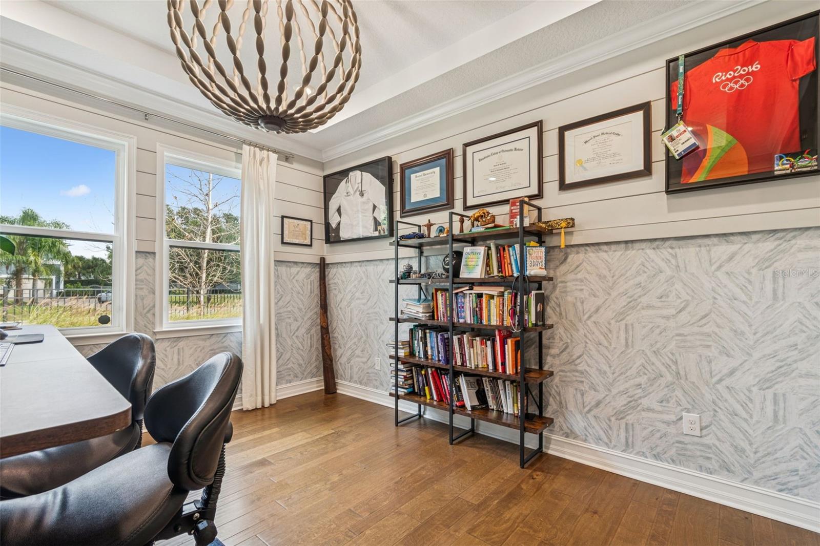 Welcome to the highly desirable community of Cordoba Estates, just 20 minutes to downtown Tampa! This is a beautiful, sprawling, luxurious single story Model home. This home features 4 BR/3 BA plus an office and a flex room. Enjoy all the benefits of the Model home in Cordoba Estates, including upgraded hardwood flooring, custom woodwork detail in all the bedrooms, 12 foot detailed, tray ceilings with gorgeous exposed wood-beams, an oversized kitchen island, double ovens, upgraded countertops and appliances, extended countertop space and exposed beams throughout and MORE. The luxury continues as you enter the pool and spa with both a heater and a chiller for a cold plunge! There is also a built-in firepit where you can enjoy after exiting the hot tub during the winter. Enjoy a huge, fenced in almost 1-acre yard (unheard of in of Tampa Bay!) with a beautiful majestic, one of a kind, Live Oak Tree. This home is Hurricane ready, a generator plug and surge protector in place, Hurricane Impact doors and windows along the North side of the house (shutters included for the back). Soft start already on AC allowing the entire house to be powered with a standard generator. Additional detail was made by including a direct ethernet into the office, a recently installed Tesla charger, alarm system and fiber optic cable with battery backup! Gorgeous Tile Roof (50 year lifespan), and the entire home is on a water softener, with Reverse Osmosis drinking water in the kitchen. Cordoba Estates is known for its resort-style amenities including a beach entry pool, playground, dog park, Tennis courts, basketball courts and incredible family-friendly, social and community events with a community full of fantastic and successful professionals! Easy access to downtown Tampa (20 minutes), top-rated schools, shopping, dining, and major highways—making this home the perfect blend of comfort, style and location.
