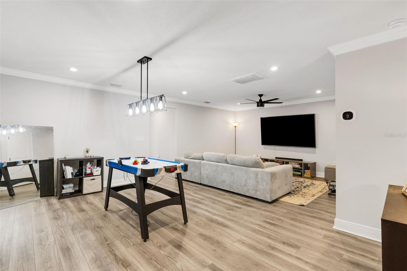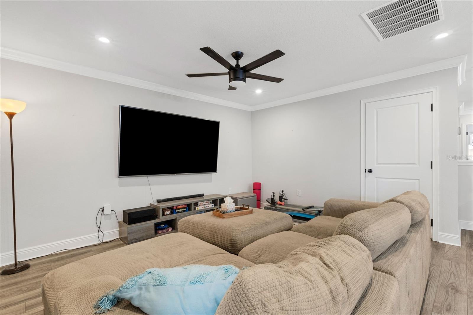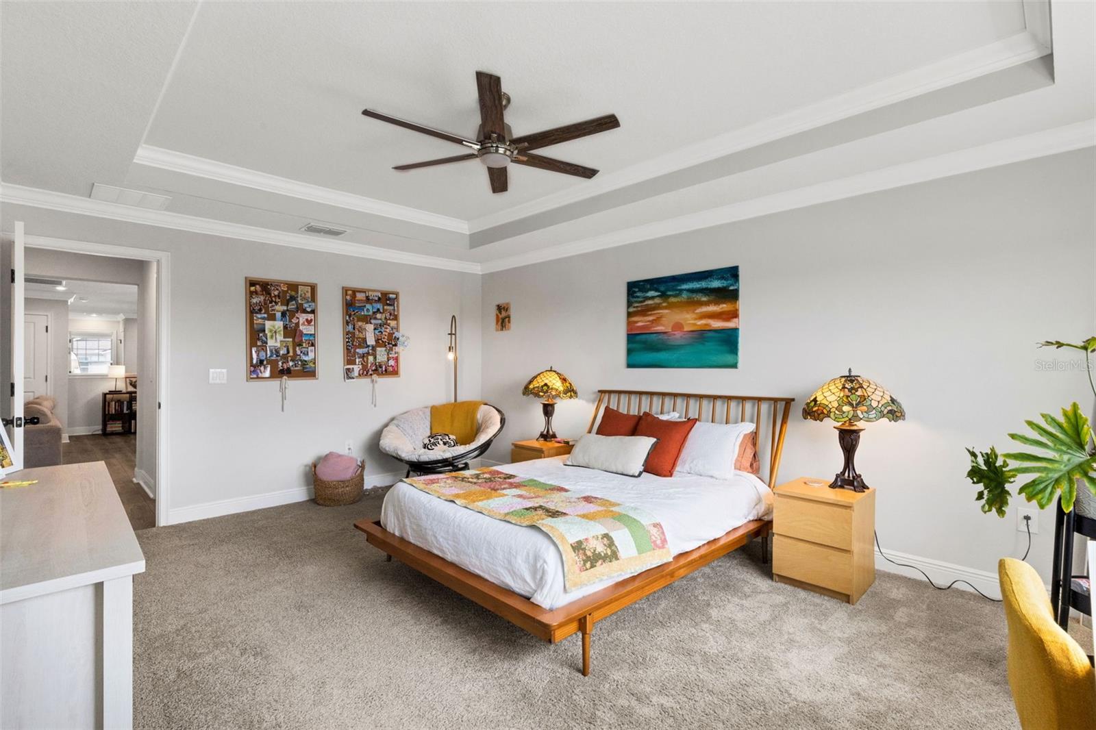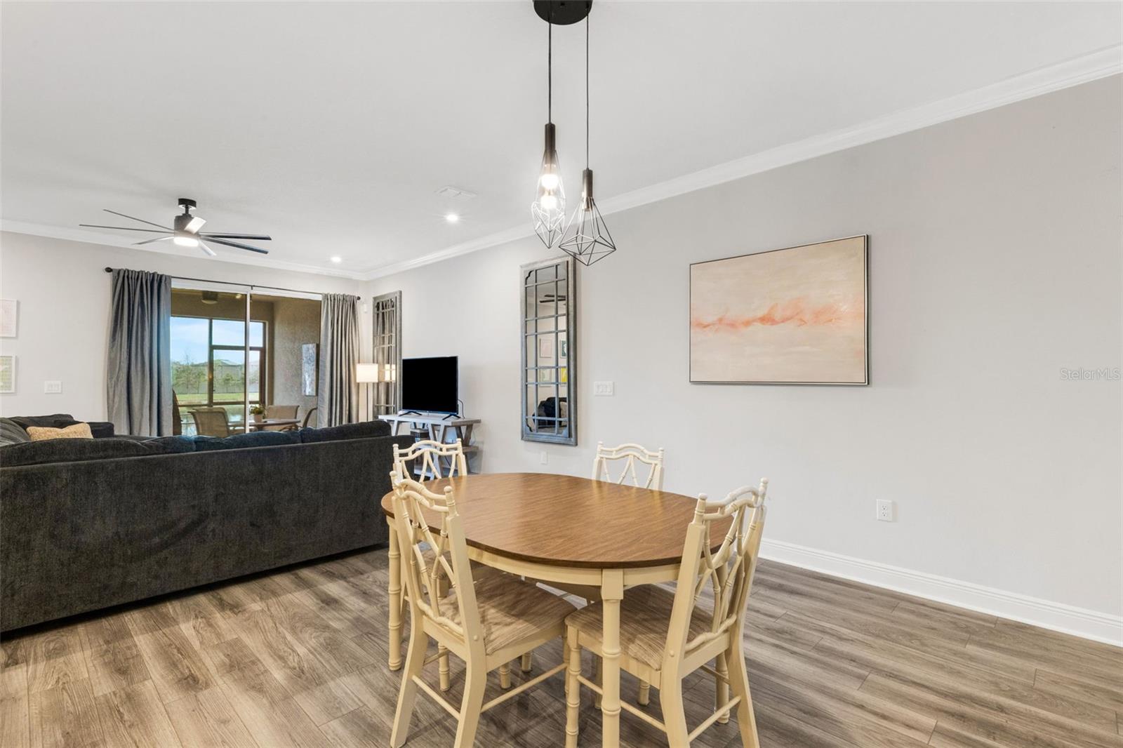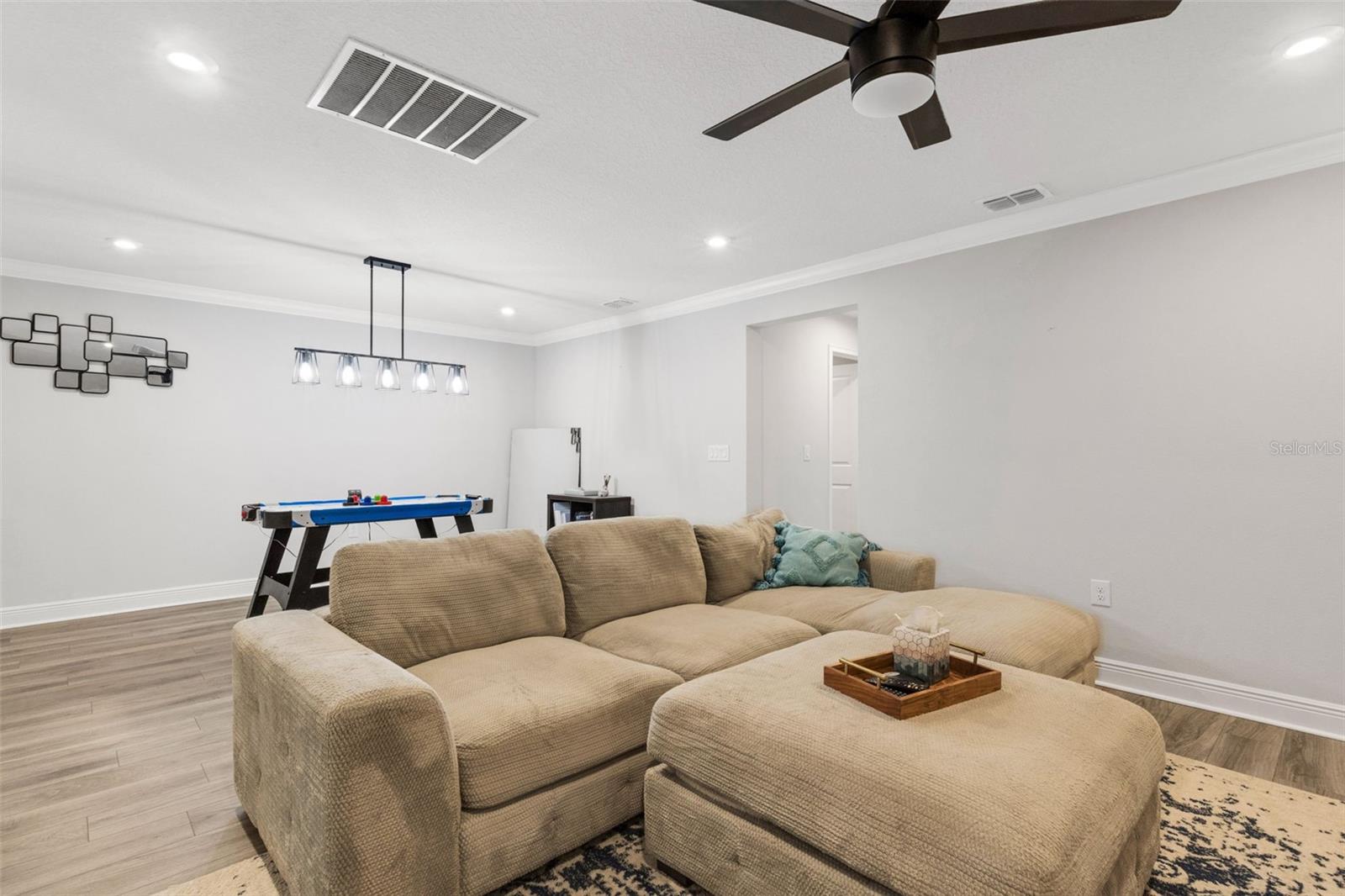 Welcome to the Venice model townhome (built in 2021) by Mattamy Homes in the highly desirable community of Parkview at Long Lake Ranch. Situated on a premium waterfront lot, this impressive two-story residence offers nearly 2,600 square feet of thoughtfully designed living space, featuring 4 bedrooms, 3 full bathrooms, a spacious bonus loft, and a 2-car garage. The first floor showcases a bright and open floor plan ideal for both everyday living and entertaining. The designer kitchen is the heart of the home, featuring abundant cabinetry, generous counter space, a large center island with breakfast bar, Whirlpool stainless steel appliances, and convenient under-stair storage that functions perfectly as an oversized pantry. The kitchen flows seamlessly into the combined living and dining areas, where sliding doors lead to a covered and screened lanai overlooking tranquil water views—the perfect spot to relax and unwind. A first-floor bedroom or home office and full bath adds flexibility for guests or remote work. Upstairs, you’ll find an expansive loft/bonus room, ideal as a second living area, media room, or play space. The owner’s suite is generously sized and highlighted by a tray ceiling and a luxurious ensuite bathroom featuring dual raised vanities with quartz countertops, an oversized super shower, and a massive walk-in closet. Two additional bedrooms also feature large walk-in closets and share a well-appointed hall bath. A spacious second-floor laundry room adds everyday convenience. Nearly every available builder upgrade, including the premium lake/preserve lot, crown molding, luxury vinyl and tile flooring, upgraded cabinetry, quartz countertops, enhanced lighting and fixtures. and more. Additional features include custom blinds, new washer and dryer, epoxy garage floor, ceiling fans, and a leased water treatment system. Enjoy low HOA fees that include water, along with access to the gated community’s resort-style amenities, including a sparkling pool, park, playground, and dog park. Conveniently located near shopping, dining, grocery stores, and everyday essentials. This home is also just 3 miles from the Veterans Expressway and 8 miles from I-75, offering easy access throughout the Tampa Bay area. Move-in ready and beautifully upgraded—schedule your private showing today.