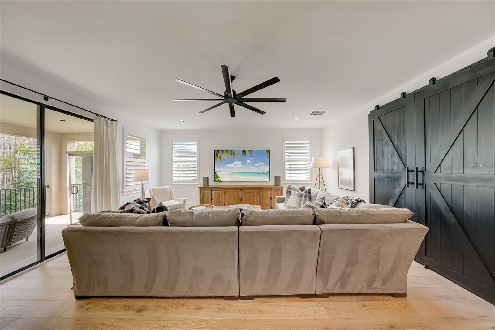 Stunning 2 year old home! This 5 bed 5 bath home in the Steinbrenner school district, is 4,663 sq ft., and situated in a private gated enclave of 40 homes.Brick paver driveway, front porch and patios lead indoors. to Cathedral Ceiling Entry with 2 round iron RH chandeliers. Features include wide-plank French oak floors throughout, iron stairs, smooth drywall, custom millwork, 8'- 2 panel doors, wide plantation shutters, and recessed can lights with dimmers. A well conceived upstairs mini kitchen, with a refrigerator, dishwasher, stacked LG washer and dryer and a deep stainless-steel sink. Kitchen includes quartz countertops, full height backsplash, and on a huge island, a farmhouse sink, stainless steel appliances, gas cooktop, modern hood, side by side 42" refrigerator, dual ovens, convection microwave, and quiet dishwasher, oversized lighting create a modern farmhouse look. The large Owners suite has a private balcony with views beyond the pool-sized lot to a natural wetland. Owners Bath has a soaking tub, spacious glass shower with two heads, and quartz tops on separate vanities, and a large connecting closet with slotted wood shelving. Three Guest Bedrooms have a private bath, subway tiles and upgraded Kohler commodes. Downstairs Guest Bedroom has an adjacent bath with a walk-in shower. Upstairs Bonus Room with shiplap wall and 8' Barn doors becomes an ideal getaway for movies or music.The epoxy coated Garage has two electric car chargers, extra deep parking spaces, ceiling mounted storage racks; a whole-home water purification system which filters and conditions the water to every faucet. Surprise and delight the most discriminating buyer who appreciates the finer details, they will love it!