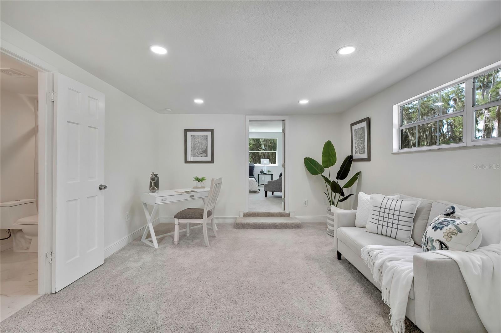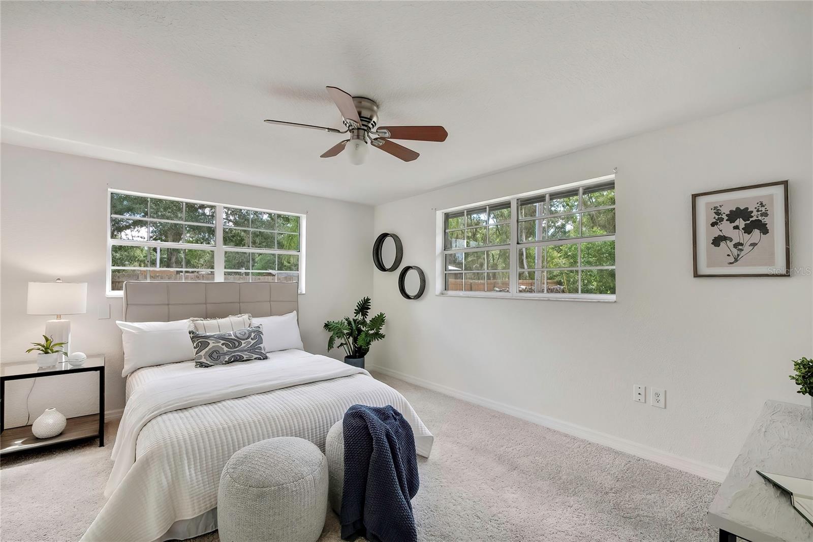 Nestled on the tranquil shores of Little Lake Wilson in Lutz, this newly remodeled 2-story waterfront home offers an unparalleled lifestyle. This stunning residence showcases the perfect blend of modern luxury and serene lakefront living. Situated on a sprawling .67-acre lot at the end of a peaceful cul-de-sac, this property ensures both privacy and ample space for outdoor enjoyment. The expansive 3,796 sq ft of living space, priced attractively at only $203 per sq ft, features a thoughtfully designed layout that caters to both comfort and elegance. NEW Roof! NEW wood-tone luxury vinyl plank flooring flows throughout the first floor living areas. Off the foyer is a spacious den, an enormous formal living room, dining room, guest bath, laundry room and hall closet. The first floor includes a bedroom with an ensuite bath, ideal for an in-law or guest suite providing the utmost in convenience and privacy. Additionally, there's a versatile office/flex space that can easily serve as a 5th bedroom, adapting to your family's needs. The culinary enthusiast will enjoy the Updated kitchen with NEW Shaker cabinets, high-end luxury Quartz countertops, backsplash, NEW stainless appliances including a cooktop, built-in wall oven and microwave, range hood, dishwasher, side by side refrigerator, and deep stainless sink below a window overlooking the scenic backyard. Ascend the staircase to the second-floor primary suite where you can indulge in the expansive ensuite bath with a luxurious stand-alone deep soaking tub, separate vanities, tiled walk-in shower with shampoo niche and rain head fixture, private water closet, linen closet and huge walk-in closet. NEW Carpet! Additionally, upstairs reveals a large loft area, full bath along with generously sized bedrooms three and four. Outdoors, enjoy the spacious backyard with a water view. A large double door shed sits in the backyard perfect for storage. From your own private dock, you can fish or kayak, or paddleboard in the lake. Additional renovations include NEW Lights and Fixtures, NEW Vanities, Renovated Bathrooms, NEW Exterior and Interior Paint, Pot Lights, Landscaping, and more! NO HOA! NO CDD! With no deed restrictions, plenty of room for your boat or RV. This home is located within the much desired A+ rated Steinbrenner High School district! This home is more than just a residence; it’s a lifestyle with natural beauty and tranquility. Easy access to major highways, premium shopping, dining and entertainment. Call today to schedule your private showing.