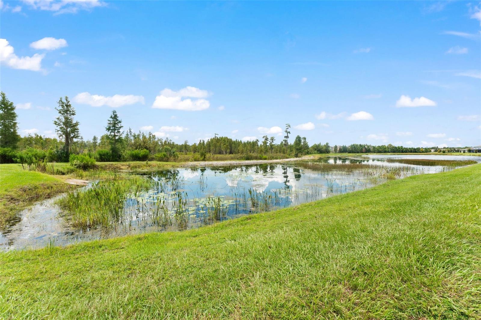 Welcome to this sleek, newer home located in a top-rated school district! This stunning property features 3 bedrooms, 2 bathrooms, and a designated office space with elegant glass French doors. You will be greeted by 8-foot doors that enhance the spaciousness and elegance of your new home.. The main living area features tile flooring and a built-in electric fireplace, adding warmth and charm to your family room. The primary bedroom, offers a stunning tray ceiling and built in designer walk in closet. Step outside to the screened-in patio, ideal for entertaining with a fully fenced in yard and enjoy the premium lot that offers a serene pond and conservation views, perfect for nature lovers. Located in a gated community with quick and easy access to 54. Amenities include playground, pool and a dog park. Conveniently located just 25 minutes from the International Airport and 40 minutes from the beach, this home offers a peaceful retreat with easy access to amenities and attractions.