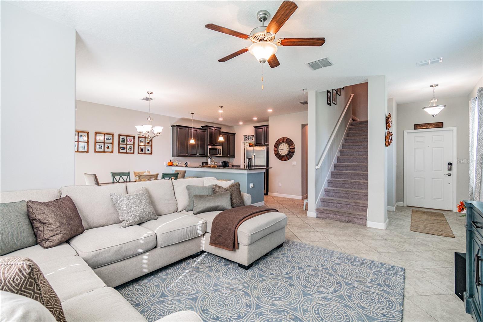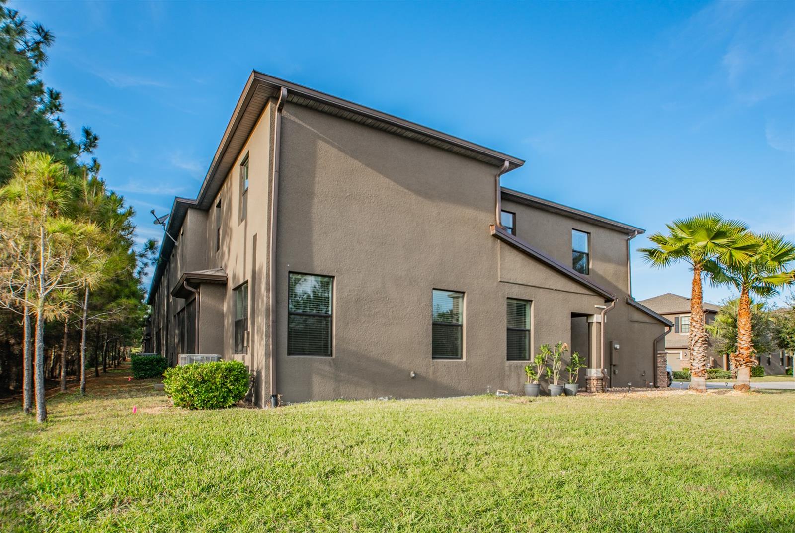 Absolutely Stunning 3 BR/2.5 BA /2 Car Garage, end unit townhome in the highly desirable Hidden Oaks. This beautiful townhome features all the modern upgrades, combined with a great central location and fantastic schools. NO CDD. NOT IN A FLOOD ZONE. As you arrive the home features a gorgeous brick paver driveway & entrance with a TWO-CAR GARAGE and plenty of storage. The downstairs features high ceilings and contemporary 16" tile throughout. A bright and open kitchen with 36" dark mocha wood cabinetry, high end granite countertops, breakfast bar with pendant hang-down lighting & LG Stainless Steel appliance pkg. Enjoy the beautiful weather from the fully screened patio enclosure which overlooks a conservation area. The master bedroom is large with a walk-in closet, and an ensuite bathroom with matching hardwood cabinetry & granite, his & hers sinks, soaking tub, and separate shower. Hidden Oaks is gated community central to the Veterans Expressway, and the many shops and restaurants nearby, and is zoned within the "A Rated" Steinbrenner (HS), Martinez (Middle), Schwarzkopf (Elementary) School district, which are some of the best school in the County. Water, Trash, Sewer, and All Exterior maintenance (including ROOF) is covered by HOA. Truly a beautiful home.