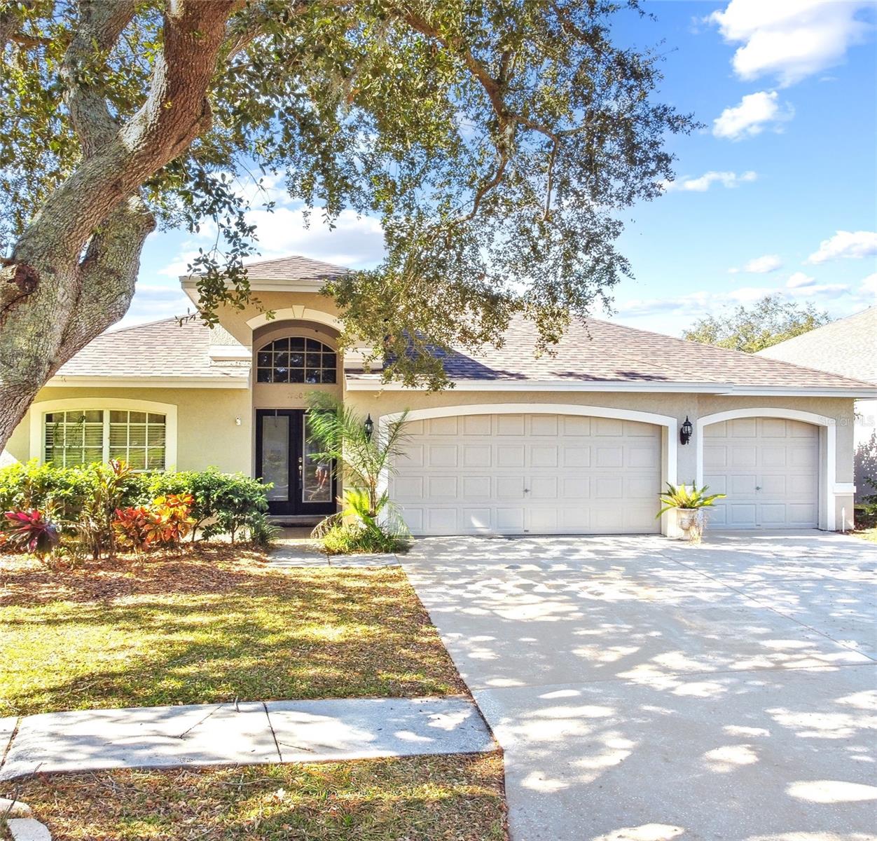 Beautiful home in Villarosa! This home includes almost 2,300 sq. feet of living space and features 4 bedrooms, 2 baths, 3 car garage and an enclosed sunroom. A NEW roof was installed in 2023. As you enter thru the double glass inlay doors you will find an inviting open floor plan. The spacious great room has a vaulted ceiling and wood laminate flooring. There is also a separate dining room area. The updated kitchen features an eat in breakfast bar area, gas stovetop, stainless steel appliances, granite countertops, double wall pantry shelving and a dinette area for additional seating. The master suite has vaulted ceilings with a large walk-in closet and built in features, a master bath with double vanity, walk in shower, and sliding door with access to the sunroom. The 3 additional bedrooms offer a split bedroom plan for additional privacy and a full bath. A large sunroom overlooks the spacious yard with pavers and offers additional living space to use as a flex area. Villarosa is a highly sought after community with TOP RATED SCHOOLS. Some of the community amenities include, playground, tennis courts and open space. LOW HOA and NO CDDs! Located within minutes of Dale Mabry, the Veterans Expressway, restaurants, hospitals, stores, and more!