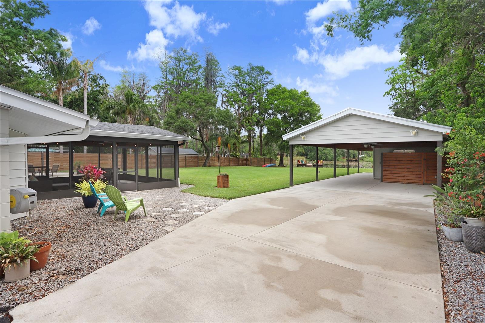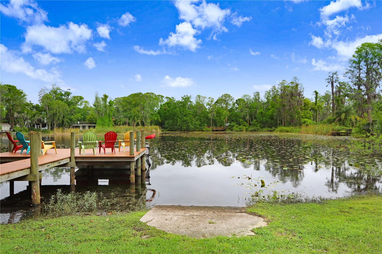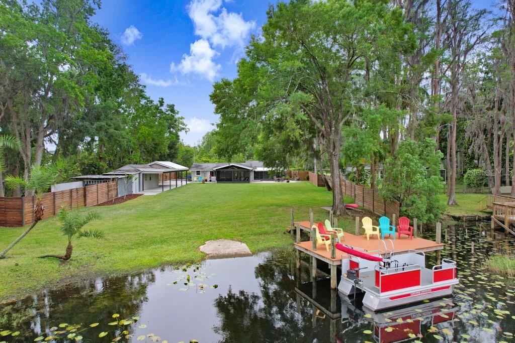 Under contract-accepting backup offers. Welcome to your dream LAKEFRONT home on almost an ACRE (.98) with over 100+ FEET OF SHORELINE on beautiful Lake Barbara, part of a scenic chain of lakes, including Lake Ellen + Lake Helen. A RARE find, enjoy BREATHTAKING VIEWS located in the highly coveted STEINBRENNER school district. Whether you enjoy FISHING, BOATING, KAYAKING, or JET SKIING, this property offers DIRECT WATER ACCESS with your very own concrete BOAT RAMP and a recently added composite BOAT DOCK with electricity (2020). This METICULOUSLY MAINTAINED home features an OPEN CONCEPT FLOOR PLAN and tasteful upgrades throughout, including soft-close antique cabinetry in the kitchen and bathrooms, a WATER SOFTENER (2017), a newer HOT WATER HEATER (2022), an newer IRRIGATION system (2019), newer WINDOWS (2019), a newer garage door (2022), GUTTERS + a FRENCH DRAIN (2023), + an expansive SCREENED IN BACK PORCH ENCLOSURE (2018/2019). Step outside to a FENCED IN BACKYARD with NEWER SOD + LANDSCAPING, that feels like a peaceful retreat. There's plenty of room to relax + entertain! The property includes a 12x24 WORKSHOP equipped with ELECTRICAL and BUILT IN SHELVING. Also on the property is a STORAGE SHED, also with electric. An ELECTRONIC DRIVE-THROUGH GATE connects the front and back yards, allowing pets or recreational vehicles to roam freely. This home is PERFECTLY positioned in a QUIET, SERENE neighborhood, yet it's just minutes from everything you need, including the Veterans Expressway (10 minutes), Dale Mabry Boulevard (5 min), St. Joseph's North Hospital, shopping, restaurants, and more! There’s NO HOA, NO CDD, and the property is NOT in a flood zone. Enjoy the peace, privacy, and beauty of true lakefront living—without sacrificing accessibility!
