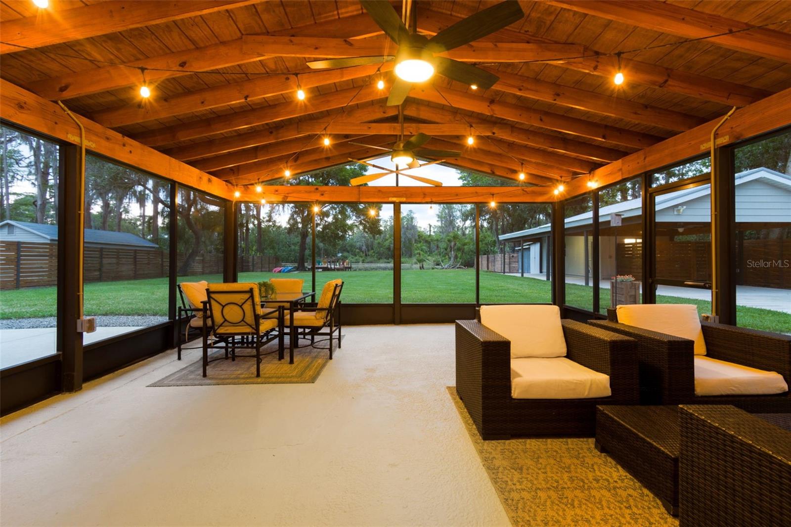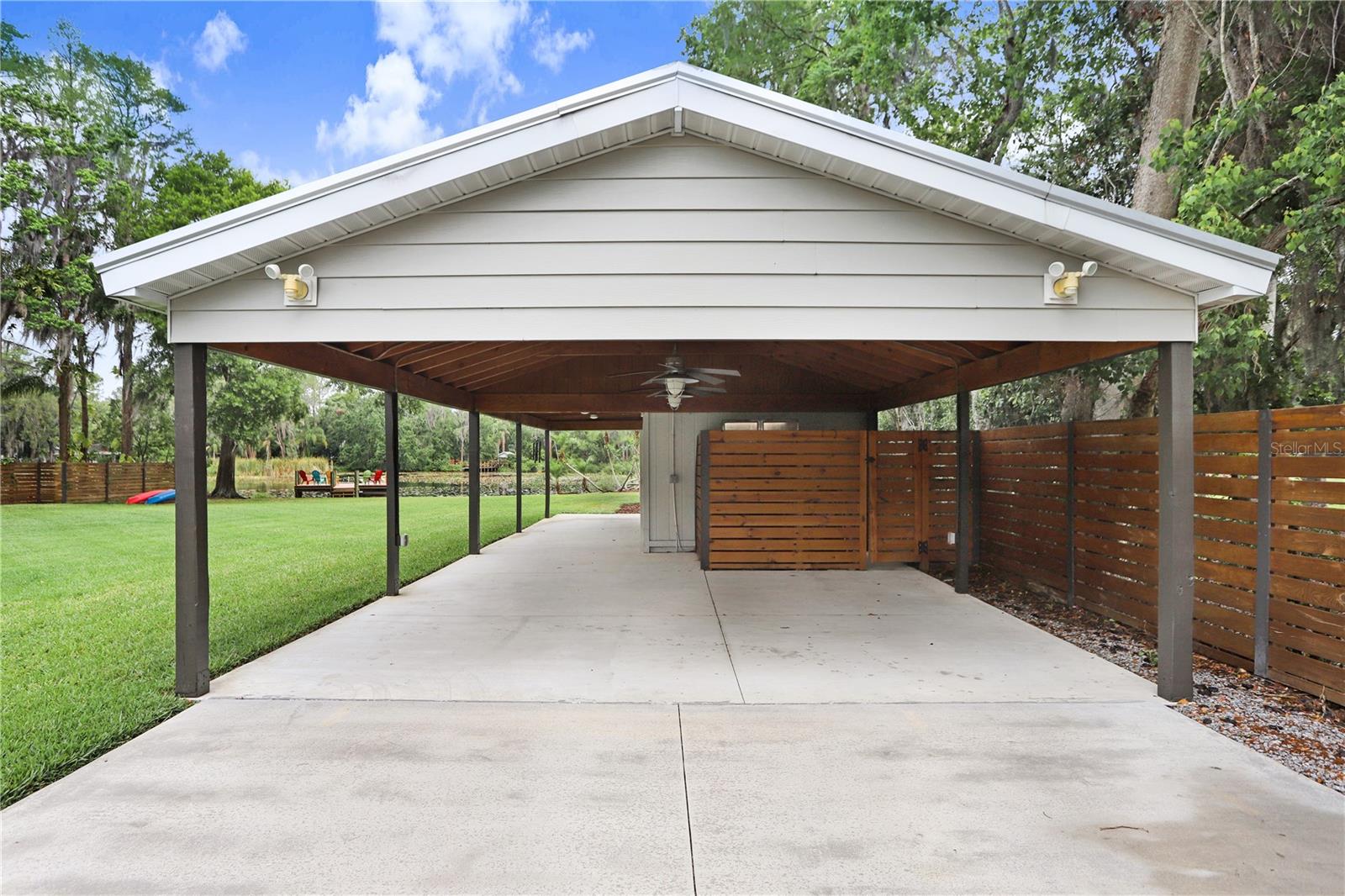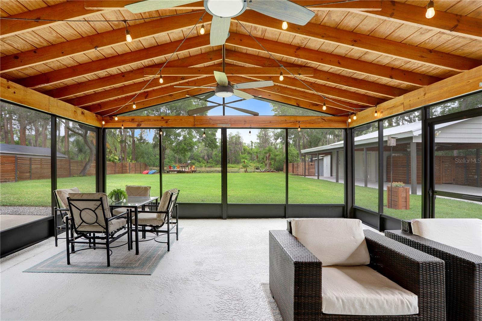 Under contract-accepting backup offers. Welcome to your dream LAKEFRONT home on almost an ACRE (.98) with over 100+ FEET OF SHORELINE on beautiful Lake Barbara, part of a scenic chain of lakes, including Lake Ellen + Lake Helen. A RARE find, enjoy BREATHTAKING VIEWS located in the highly coveted STEINBRENNER school district. Whether you enjoy FISHING, BOATING, KAYAKING, or JET SKIING, this property offers DIRECT WATER ACCESS with your very own concrete BOAT RAMP and a recently added composite BOAT DOCK with electricity (2020). This METICULOUSLY MAINTAINED home features an OPEN CONCEPT FLOOR PLAN and tasteful upgrades throughout, including soft-close antique cabinetry in the kitchen and bathrooms, a WATER SOFTENER (2017), a newer HOT WATER HEATER (2022), an newer IRRIGATION system (2019), newer WINDOWS (2019), a newer garage door (2022), GUTTERS + a FRENCH DRAIN (2023), + an expansive SCREENED IN BACK PORCH ENCLOSURE (2018/2019). Step outside to a FENCED IN BACKYARD with NEWER SOD + LANDSCAPING, that feels like a peaceful retreat. There's plenty of room to relax + entertain! The property includes a 12x24 WORKSHOP equipped with ELECTRICAL and BUILT IN SHELVING. Also on the property is a STORAGE SHED, also with electric. An ELECTRONIC DRIVE-THROUGH GATE connects the front and back yards, allowing pets or recreational vehicles to roam freely. This home is PERFECTLY positioned in a QUIET, SERENE neighborhood, yet it's just minutes from everything you need, including the Veterans Expressway (10 minutes), Dale Mabry Boulevard (5 min), St. Joseph's North Hospital, shopping, restaurants, and more! There’s NO HOA, NO CDD, and the property is NOT in a flood zone. Enjoy the peace, privacy, and beauty of true lakefront living—without sacrificing accessibility!
