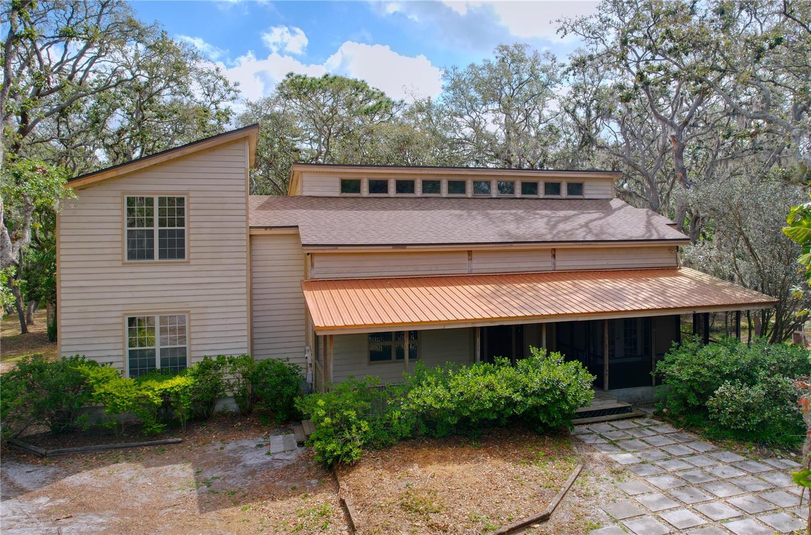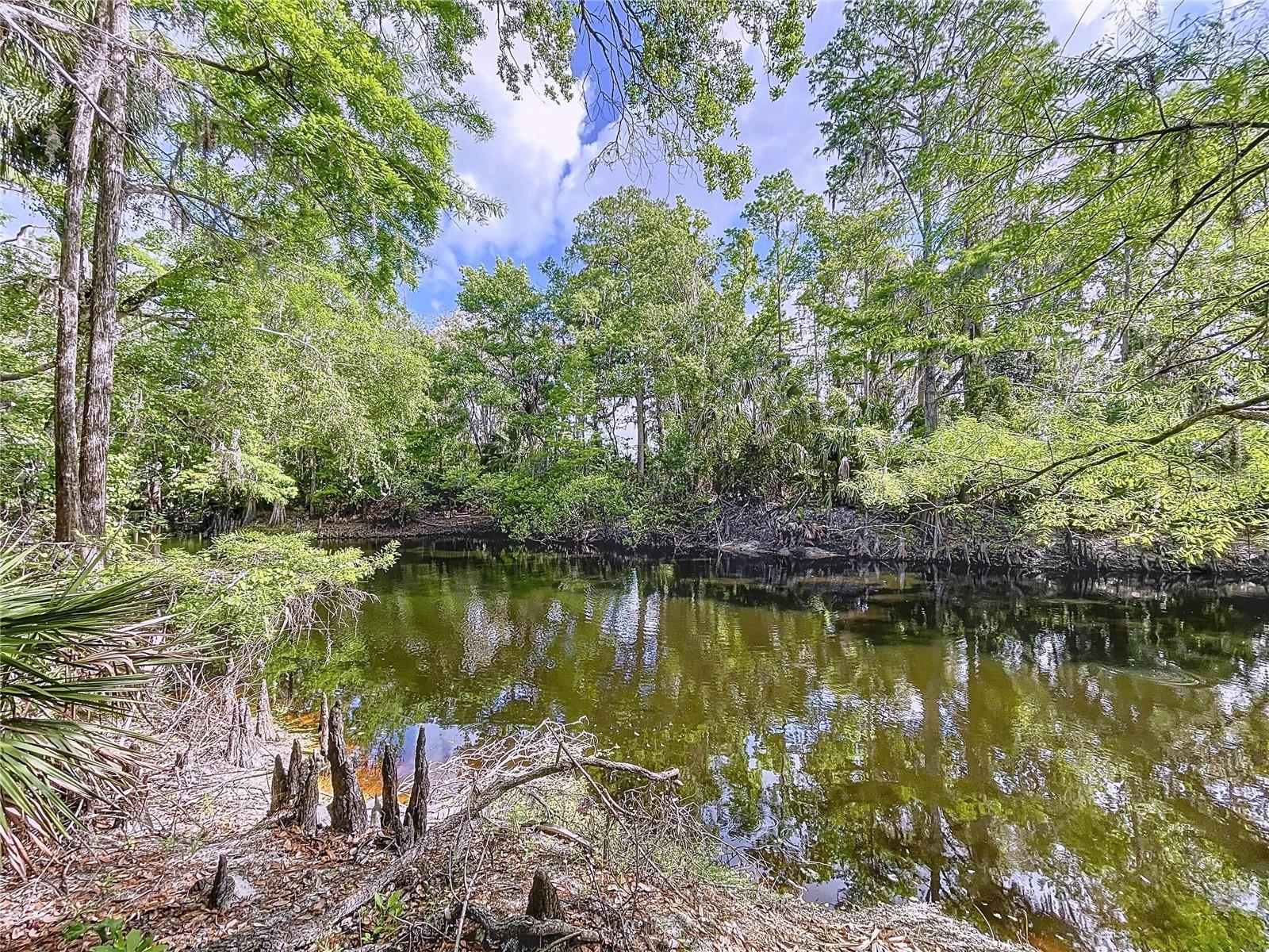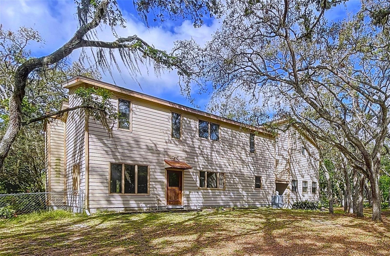 A PIECE OF OLD FLORIDA set along the banks of CYPRESS CREEK! You’ll want to bring your fishing pole because you are going to want to visit the creek. This totally Unique Home and Idyllic Waterfront Property offers a 2715 Sq. Ft., 3 Bedroom, 3 Bath Home in a private setting on 2 Acres MOL. The property is Zoned AC-Agricultural so animals are welcome. The two-story home has a soaring, Cedar Plank Ceiling and the main level encircles the staircase to the Upstairs Bedrooms. The entry foyer opens into the Family Room with a decorative fireplace and the full Dining Area located off the Kitchen. There is also a formal Living Room, a Large Bonus Room and a Versatile Office with Windows that bring in the Natural Light. The Second Story is where you will find 3 Bedrooms (with wood floors) and 2 of the Baths. The Primary Suite has an ensuite bath with shower and walk in closet – there is also a decorative book-shelf between the primary and second bedroom. The second bedroom is more open and has a large built-in wall closet and a split sitting area. The Third Bedroom has a half loft wall that opens above the Family Room and you can see the Cedar Plank Ceiling. All through the house, out every window, you’ll see Gorgeous Grandfather Oaks and Trees. When you are upstairs, it almost feels like you are looking out at the tree-tops! Enjoy, evenings on the screened porch that is covered with a tin roof. There’s also a large front porch deck to enjoy. The extra-large workshop has electric. A New Roof was Installed in 2024 and the utilities are Well and Septic. 2 AC Systems. The Yard is fenced but there is a smaller fenced dog run near the side of the home and there is a fun fire pit. Nature abounds on this land and there is even a wildlife corridor that runs along the creek. When you are enjoying the serenity of this property, it’s hard to believe that there is a Mall, Shopping, Schools, Restaurants and even an interstate access just down the road. So, here’s your chance to enjoy the best of both worlds.