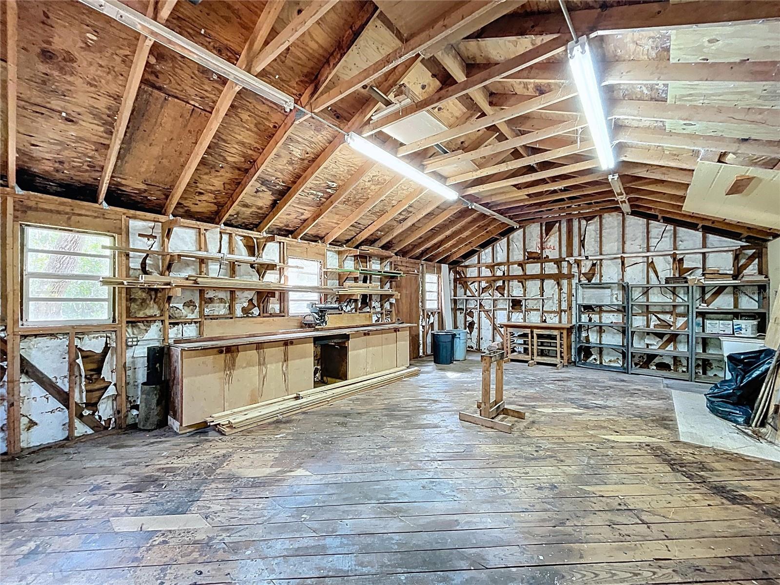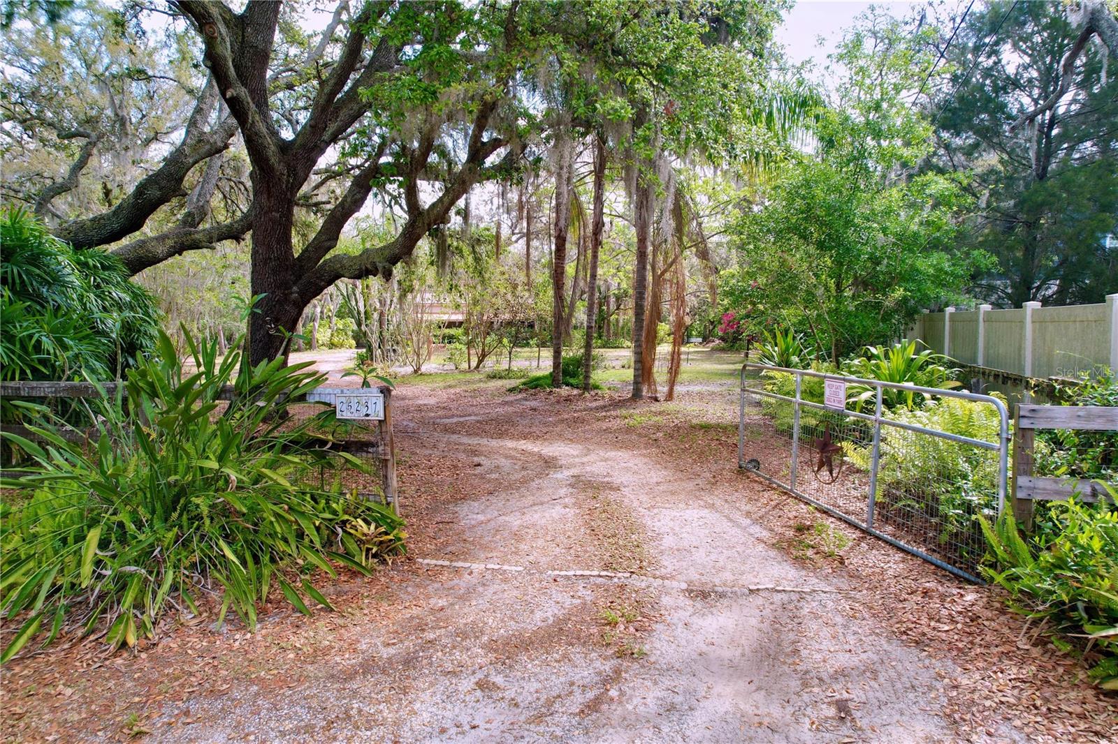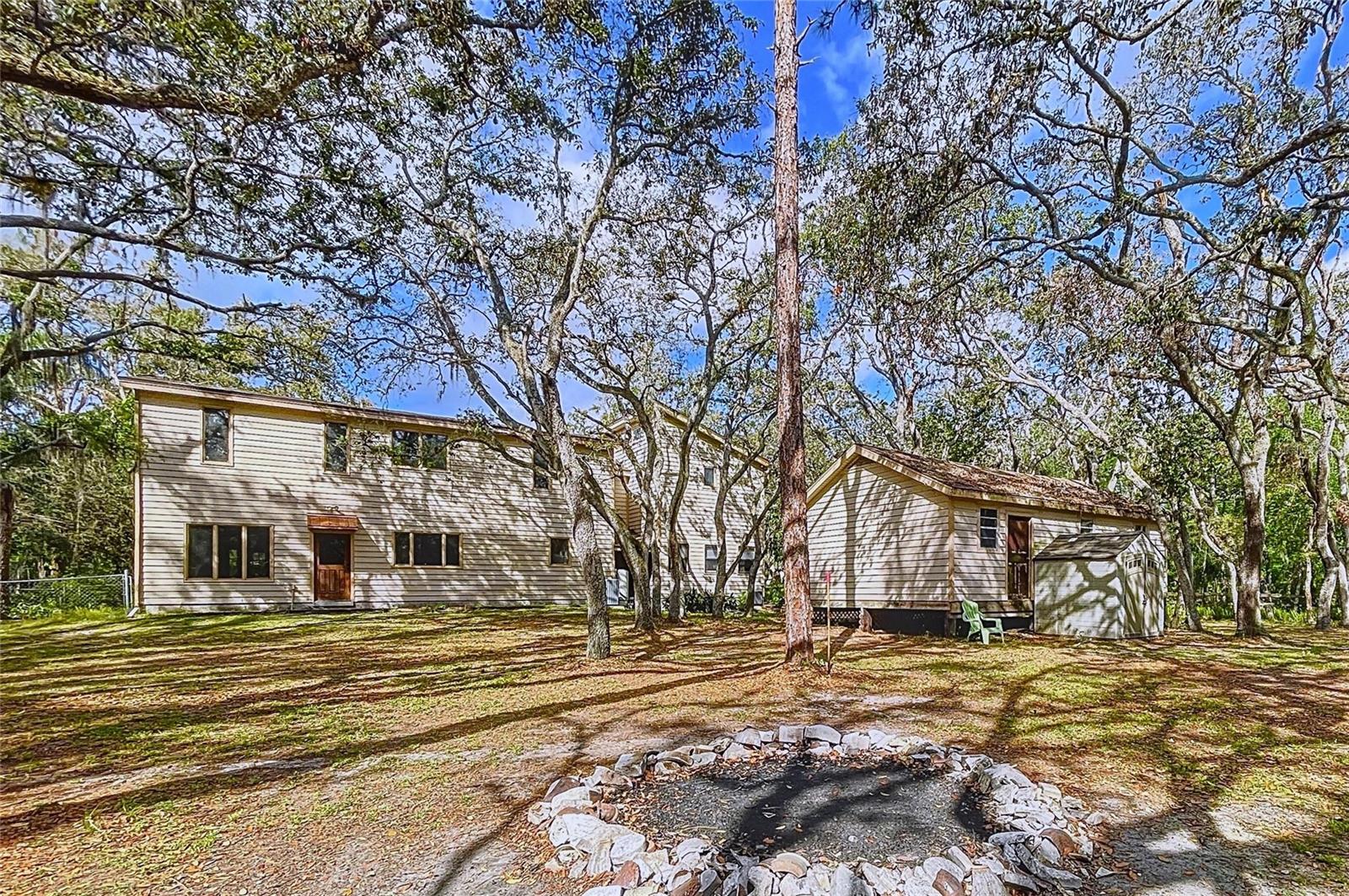 A PIECE OF OLD FLORIDA set along the banks of CYPRESS CREEK! You’ll want to bring your fishing pole because you are going to want to visit the creek. This totally Unique Home and Idyllic Waterfront Property offers a 2715 Sq. Ft., 3 Bedroom, 3 Bath Home in a private setting on 2 Acres MOL. The property is Zoned AC-Agricultural so animals are welcome. The two-story home has a soaring, Cedar Plank Ceiling and the main level encircles the staircase to the Upstairs Bedrooms. The entry foyer opens into the Family Room with a decorative fireplace and the full Dining Area located off the Kitchen. There is also a formal Living Room, a Large Bonus Room and a Versatile Office with Windows that bring in the Natural Light. The Second Story is where you will find 3 Bedrooms (with wood floors) and 2 of the Baths. The Primary Suite has an ensuite bath with shower and walk in closet – there is also a decorative book-shelf between the primary and second bedroom. The second bedroom is more open and has a large built-in wall closet and a split sitting area. The Third Bedroom has a half loft wall that opens above the Family Room and you can see the Cedar Plank Ceiling. All through the house, out every window, you’ll see Gorgeous Grandfather Oaks and Trees. When you are upstairs, it almost feels like you are looking out at the tree-tops! Enjoy, evenings on the screened porch that is covered with a tin roof. There’s also a large front porch deck to enjoy. The extra-large workshop has electric. A New Roof was Installed in 2024 and the utilities are Well and Septic. 2 AC Systems. The Yard is fenced but there is a smaller fenced dog run near the side of the home and there is a fun fire pit. Nature abounds on this land and there is even a wildlife corridor that runs along the creek. When you are enjoying the serenity of this property, it’s hard to believe that there is a Mall, Shopping, Schools, Restaurants and even an interstate access just down the road. So, here’s your chance to enjoy the best of both worlds.