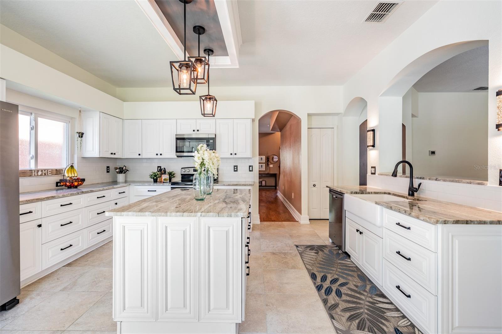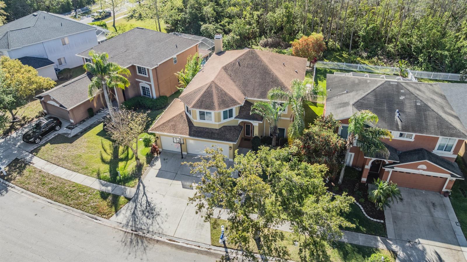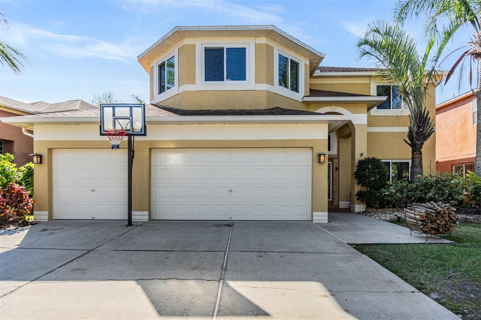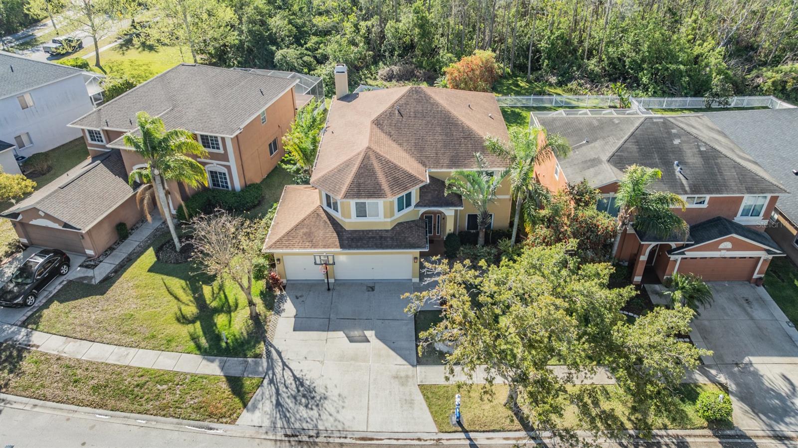 Heritage Harbor! This two story home has 5 Bedrooms/2.5 Bathrooms/3 Car Garage with a fenced in back yard for privacy (or 4 bedrooms with a Bonus Room/Office with a closet) One of the guest bedrooms is downstairs, the Primary Bedroom is upstairs along with the other guest bedrooms. All New Hurricane Windows and Doors installed along with Two AC Units, New Roof and Gutters all in 2019. Great Location and space with "A" RATED SCHOOLS in this beautiful open floor plan with upgraded Oak Staircase. This home features a separate Living Room and Dining Room, A Completely Renovated kitchen with plenty of cabinet space, Soft close drawers, Pop-up outlet tower with multiple charging outlets, Pot Drawers, Granite Counter Tops, Wine holder above the refrigerator, Pop up Phone charger on the counter top, Farmhouse sink and eat-in kitchen space, Walk-in Pantry, and opening to family room with a wood burning fireplace, which leads out to an enormous screened-in lanai with view of conservation and fenced in lot...NO backyard neighbors....great for PRIVATE outdoor living experience. Enjoy peace and quiet in an extra large Master Bedroom Suite .... a private retreat with a spacious bath including a garden tub and separate shower. Three additional large bedrooms and two bathrooms are also located on second level. The Laundry room and full three car garage newly painted, includes additional storage space. Homeowners can experience the many amenities at Heritage Harbor's 11,000 square-foot Harbor Town Clubhouse. The Community Residents can enjoy a wide variety of resort style features.... including a fitness center, library, activity center, playground, quarter acre Olympic size swimming pool with a thrilling three-story water-slide, bar and restaurant on the right side as well as a pavilion on the pool deck that can be rented for parties and gatherings, tennis courts, soccer field in the back with a walking path, and volleyball court, basketball hoops, and outdoor rollerblading rinks and of course the golf course and "A" RATED SCHOOLS plus the ramp for the Veteran's Expressway