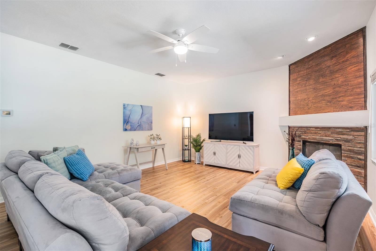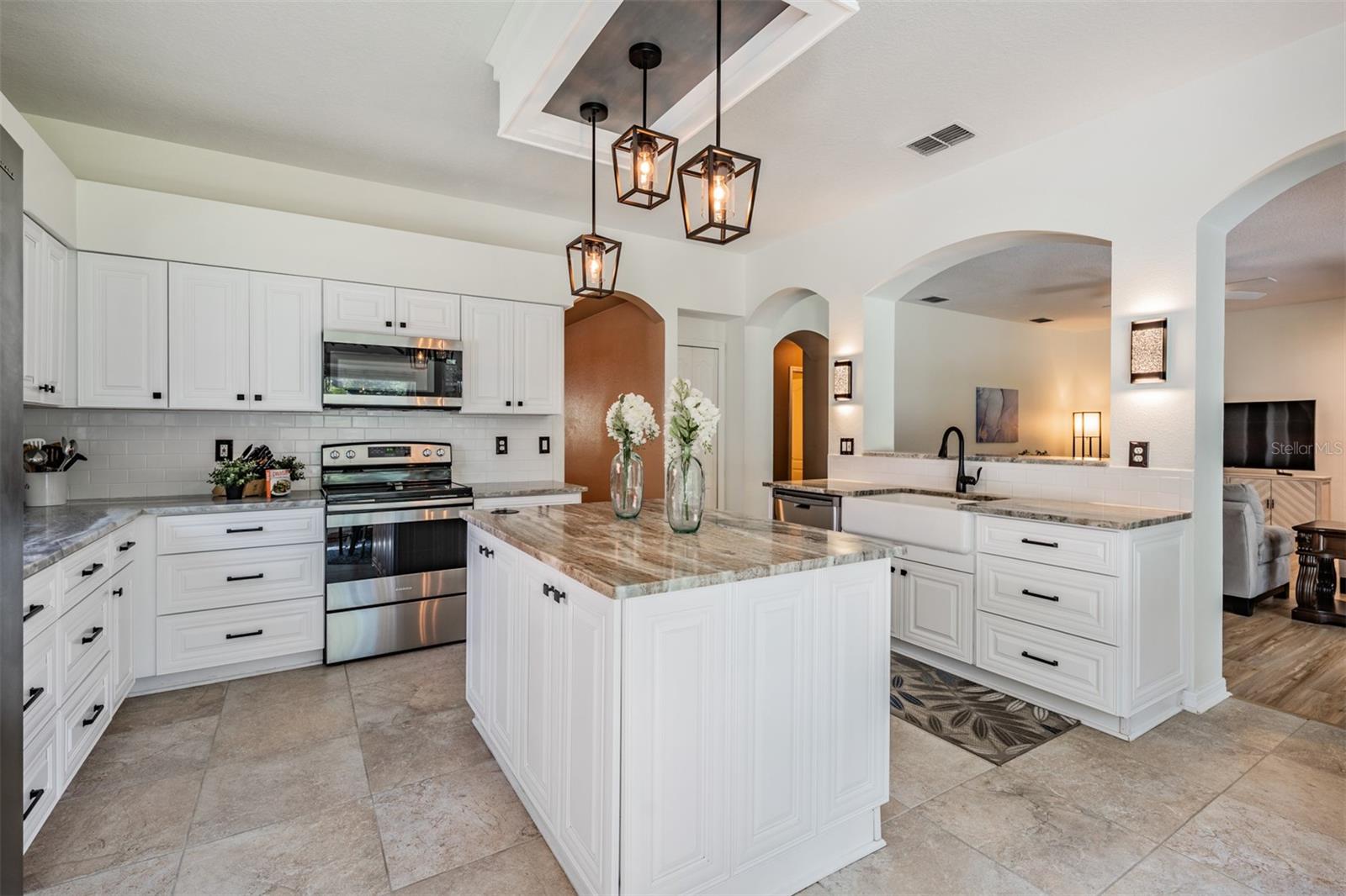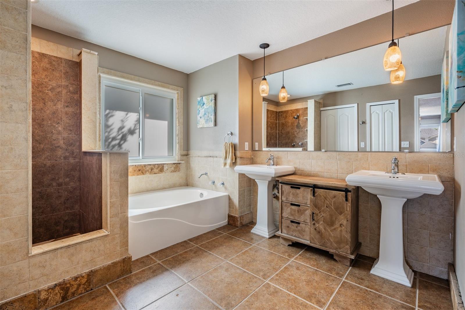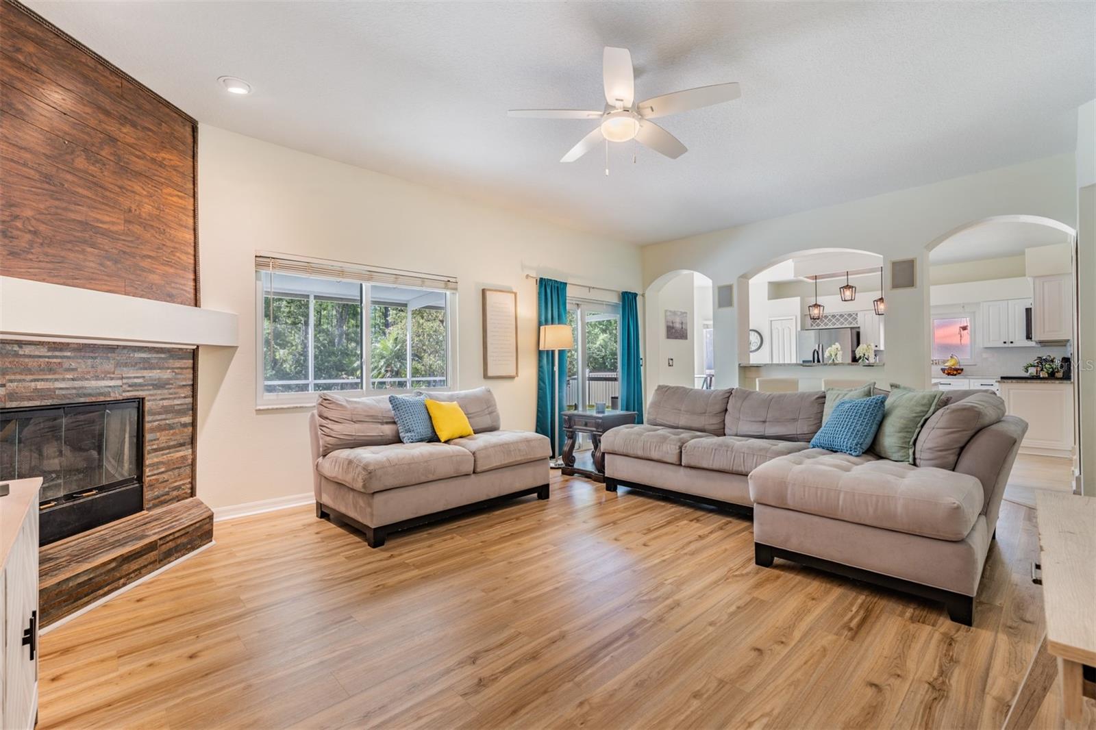 Heritage Harbor! This two story home has 5 Bedrooms/2.5 Bathrooms/3 Car Garage with a fenced in back yard for privacy (or 4 bedrooms with a Bonus Room/Office with a closet) One of the guest bedrooms is downstairs, the Primary Bedroom is upstairs along with the other guest bedrooms. All New Hurricane Windows and Doors installed along with Two AC Units, New Roof and Gutters all in 2019. Great Location and space with "A" RATED SCHOOLS in this beautiful open floor plan with upgraded Oak Staircase. This home features a separate Living Room and Dining Room, A Completely Renovated kitchen with plenty of cabinet space, Soft close drawers, Pop-up outlet tower with multiple charging outlets, Pot Drawers, Granite Counter Tops, Wine holder above the refrigerator, Pop up Phone charger on the counter top, Farmhouse sink and eat-in kitchen space, Walk-in Pantry, and opening to family room with a wood burning fireplace, which leads out to an enormous screened-in lanai with view of conservation and fenced in lot...NO backyard neighbors....great for PRIVATE outdoor living experience. Enjoy peace and quiet in an extra large Master Bedroom Suite .... a private retreat with a spacious bath including a garden tub and separate shower. Three additional large bedrooms and two bathrooms are also located on second level. The Laundry room and full three car garage newly painted, includes additional storage space. Homeowners can experience the many amenities at Heritage Harbor's 11,000 square-foot Harbor Town Clubhouse. The Community Residents can enjoy a wide variety of resort style features.... including a fitness center, library, activity center, playground, quarter acre Olympic size swimming pool with a thrilling three-story water-slide, bar and restaurant on the right side as well as a pavilion on the pool deck that can be rented for parties and gatherings, tennis courts, soccer field in the back with a walking path, and volleyball court, basketball hoops, and outdoor rollerblading rinks and of course the golf course and "A" RATED SCHOOLS plus the ramp for the Veteran's Expressway
