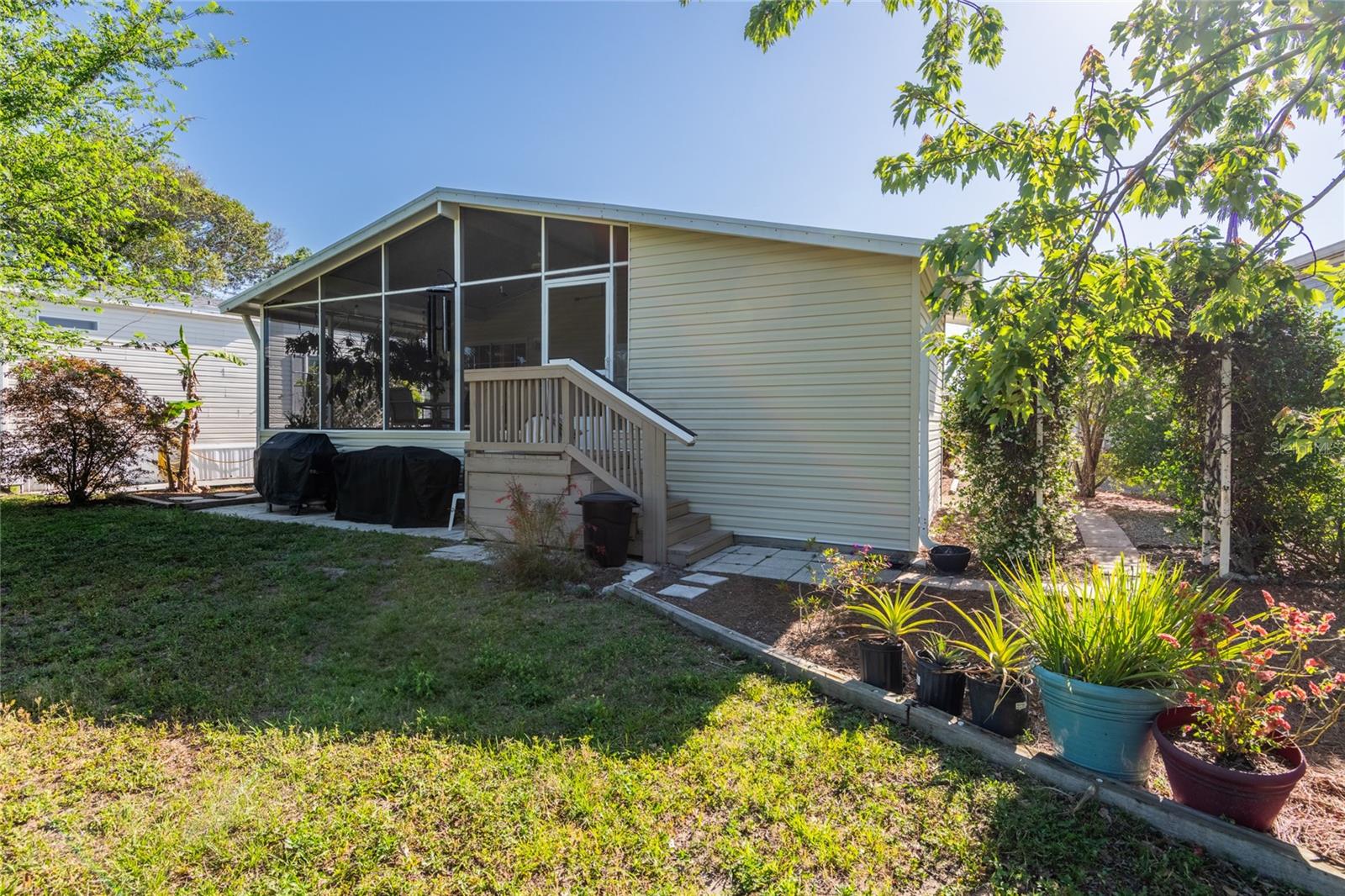SUN YOUR BUNS YEAR ROUND WHEN YOU LIVE WHERE OTHERS COME TO PLAY! LAKE COMO IS ONE OF THE FEW FAMILY AND PET FRIENDLY NUDIST RESORTS LOCATED IN THE LAND O LAKES, LUTZ, FLORIDA AREA. This 3 bedroom, 1,296 sf of carefree living comes with a 12 x 28' sf screen porch and a 20 x 28' carport! Spacious and modern, this home has beautiful laminate flooring, cathedral ceilings, ceiling fans, a huge Master bedroom, split bedroom plan and has one of the best views of the walking/jogging path right out your back door. This home radiates comfort from the time you step in the front door. The functional kitchen also offers plenty of eating space. The laundry closet is conveniently located just off the kitchen. There is also a 120 SF storage shed to store Christmas decorations, luggage and can also be a tool shop! This well care for home comes with a SHARE which gives you a voting right and a reduced monthly co-op fee of only $212/month and includes the trash. Lake Como is nudist, gated, golf cart community with night security and offers the residents a Clubhouse, restaurant, Butt Hut, beautiful lake, tennis and pickleball courts, pool, hot tub, golf and so many more fun amenities. Lots of entertainment, golf cart parades and more! Come and be a part of the fun for only $328,900! Call for your no obligation private tour.