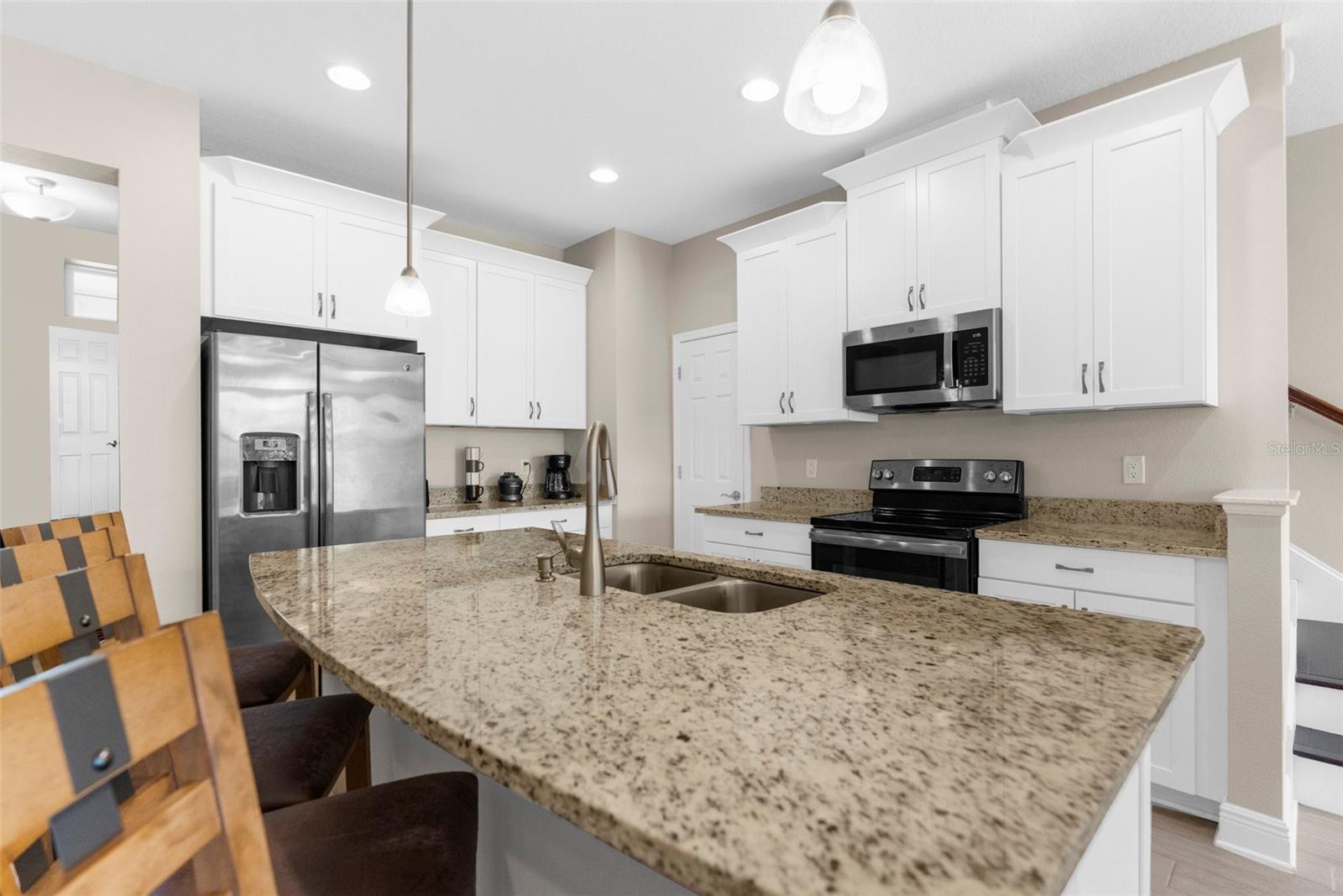 Welcome Home to this well-maintained townhome in the coveted community of Long Lake Ranch! This 1637 sq ft, 3-Bedrooms, 2.5- Bathrooms, 1-car garage home will not disappoint. The first floor has the half bath, kitchen has upgraded cabinetry with crown molding, large island with seating for at least 4 counter height chairs, granite countertops, walk-in closet pantry, stainless appliances, open to the living-room and dining room with a slider and large windows to the lanai overlooking the beautiful and tranquil pond view. The entire first floor is tiled. Heading upstairs to the second floor you have 3 nice sized bedrooms, 2 bathrooms, and a laundry closet with full size washer and dryer. The primary bedroom is towards the back with a pond view and a large walk-in-closet, ensuite with large walk-in shower, dual sinks, and linen closet. The second bathroom has the tub/shower combo. This community has a lot to offer including 2 pools, splash zone, playground, basketball & tennis/pickleball courts, dog park, 40-acre lake with fishing pier. The HOA also includes exterior, grounds, & repair maintenance, water, sewer, & trash. Close proximity to Suncoast, 41, Medical, Shopping, Restaurants & Entertainment. Check out the attached Matterport/Video. Call to schedule your private showing today!