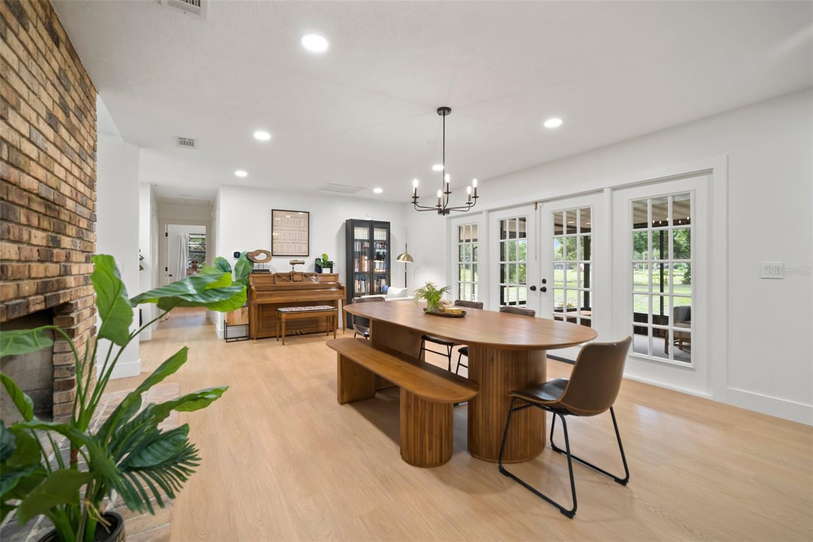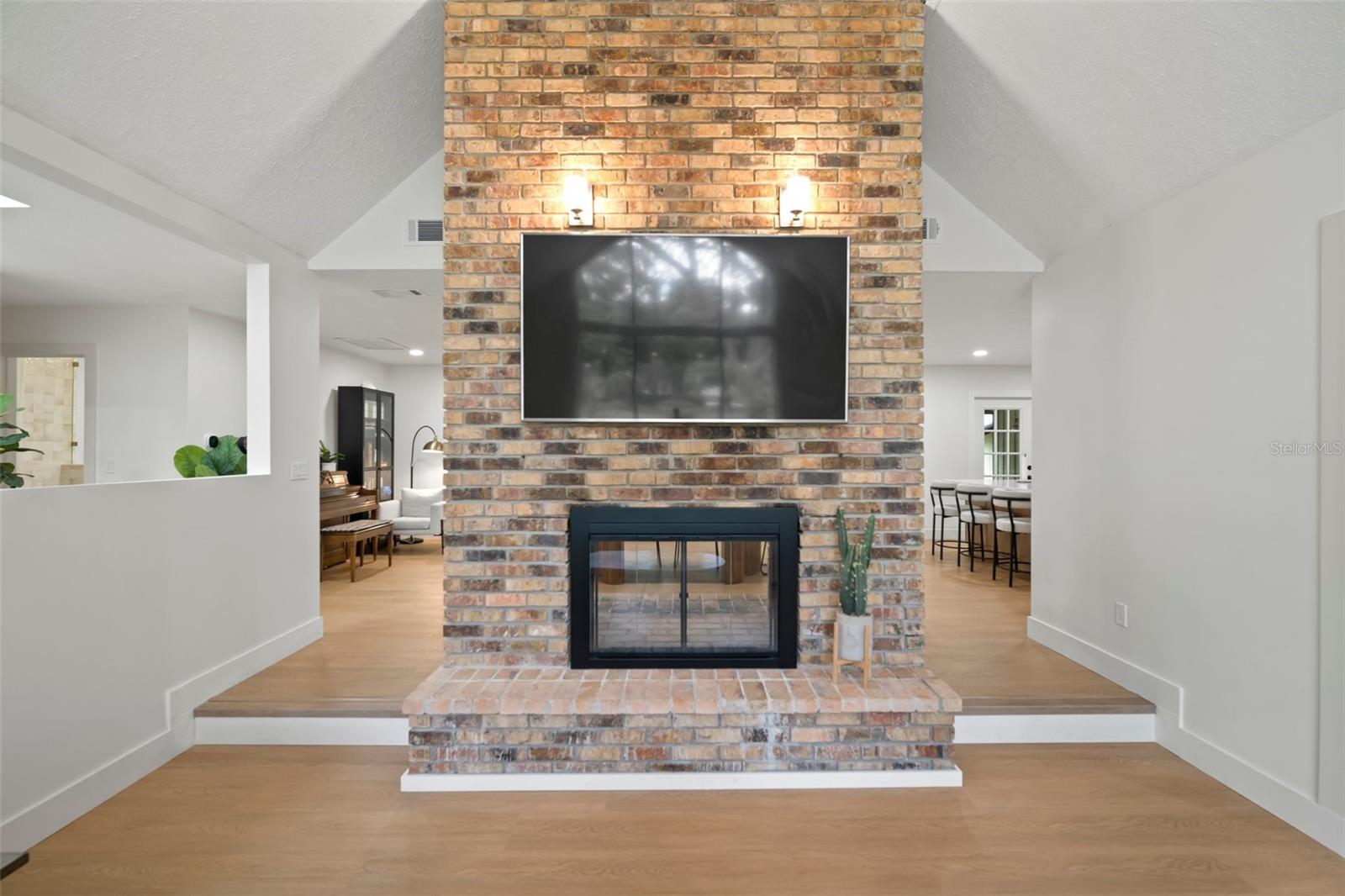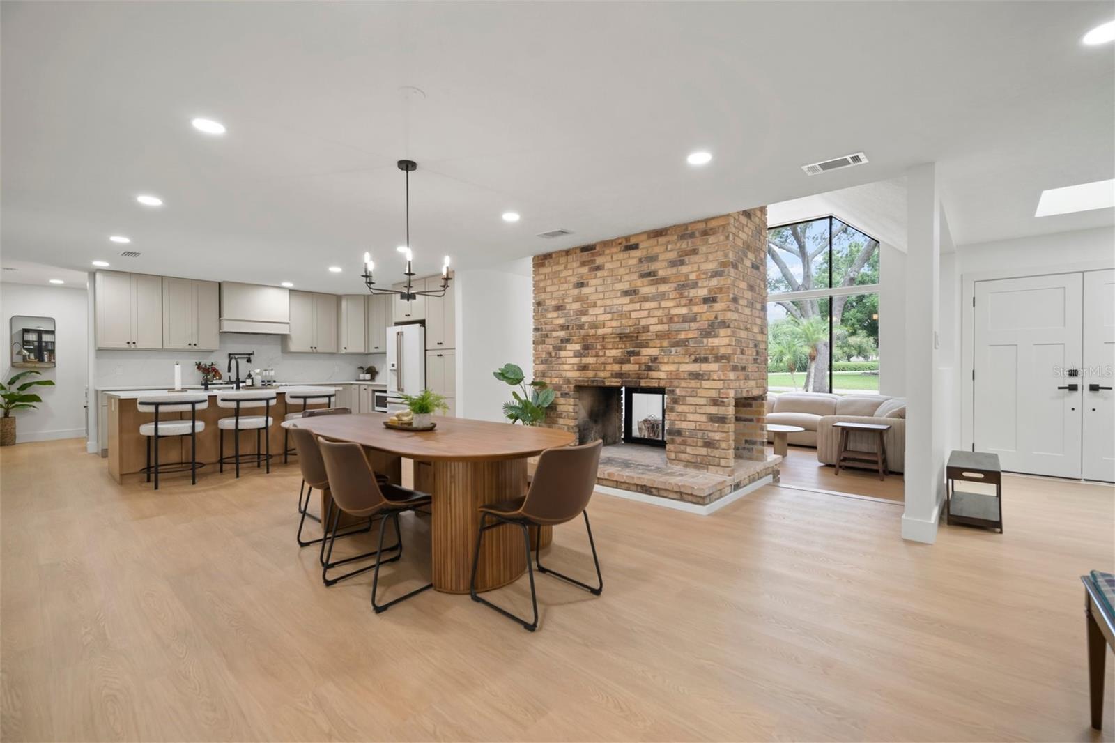 Welcome to your dream home—perfectly located on 1.25 acres in the heart of Lutz, showcasing a top-to-bottom renovation that blends modern luxury with timeless style. This beautifully updated residence offers 3 bedroom with 2 bath in 2264 square feet of exceptional craftsmanship and thoughtful upgrades throughout, making it truly move-in ready. Step inside to discover an open and airy floor plan with luxury vinyl plank flooring that runs seamlessly through the home, creating a warm and inviting atmosphere. Every detail has been considered—from the new interior doors and stylish baseboards to the high-end finishes that create luxury and style throughout. The heart of the home is the fully renovated chef’s kitchen, where you’ll find stunning quartz countertops, custom cabinetry, a sleek tile backsplash, and premium GE Café appliances that combine professional performance with striking design. Family and dining rooms are flanked by a gorgeous double sided brick wood burning fireplace. Both bathrooms have been meticulously remodeled, offering a spa-like retreat with modern tile work, upgraded fixtures, and elegant vanities. Additional upgrades include designer lighting and hardware and fresh neutral paint throughout. Whether you're hosting guests or enjoying a quiet evening in, this home delivers a comfortable casual elegance. Don't miss your chance to own a turnkey home in a prime Lutz location—schedule your private showing today!