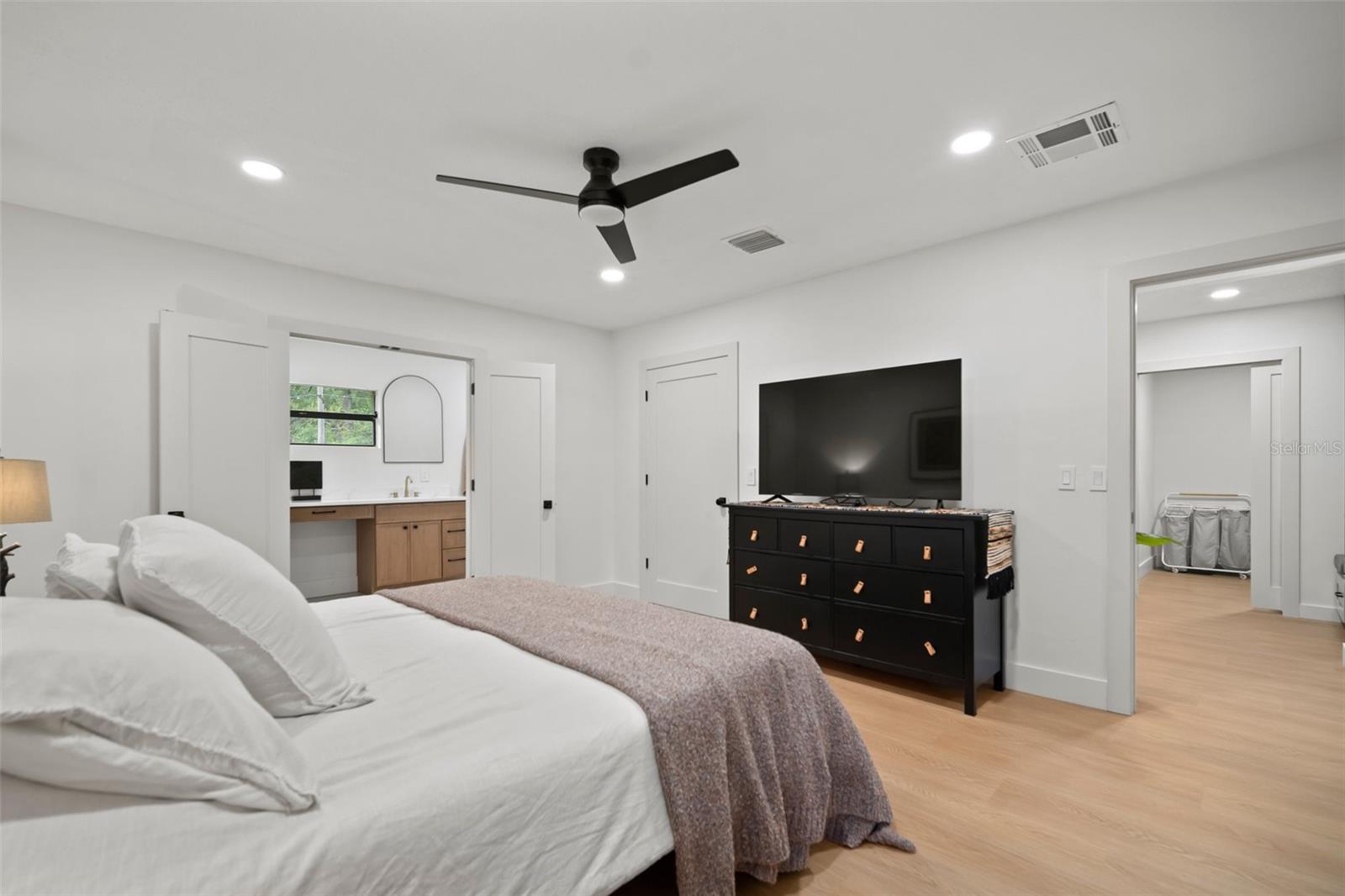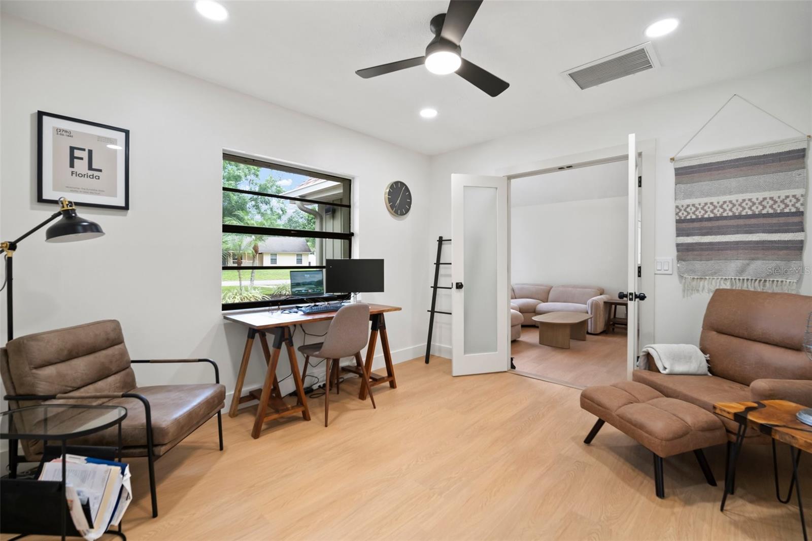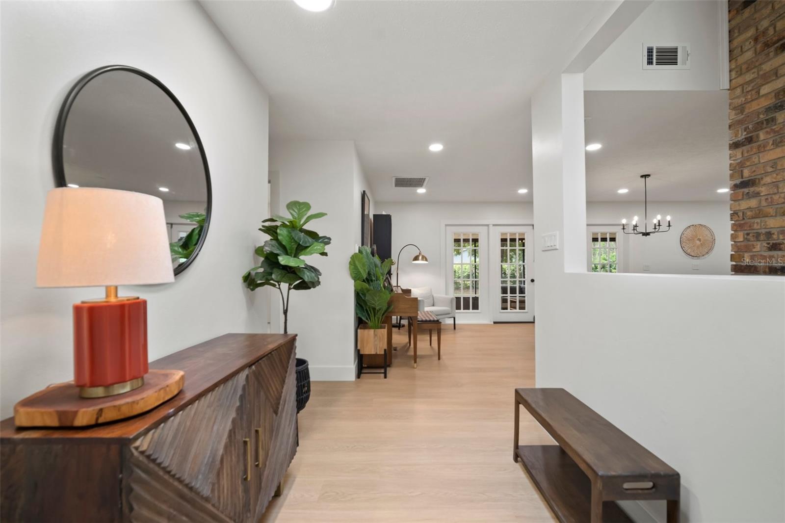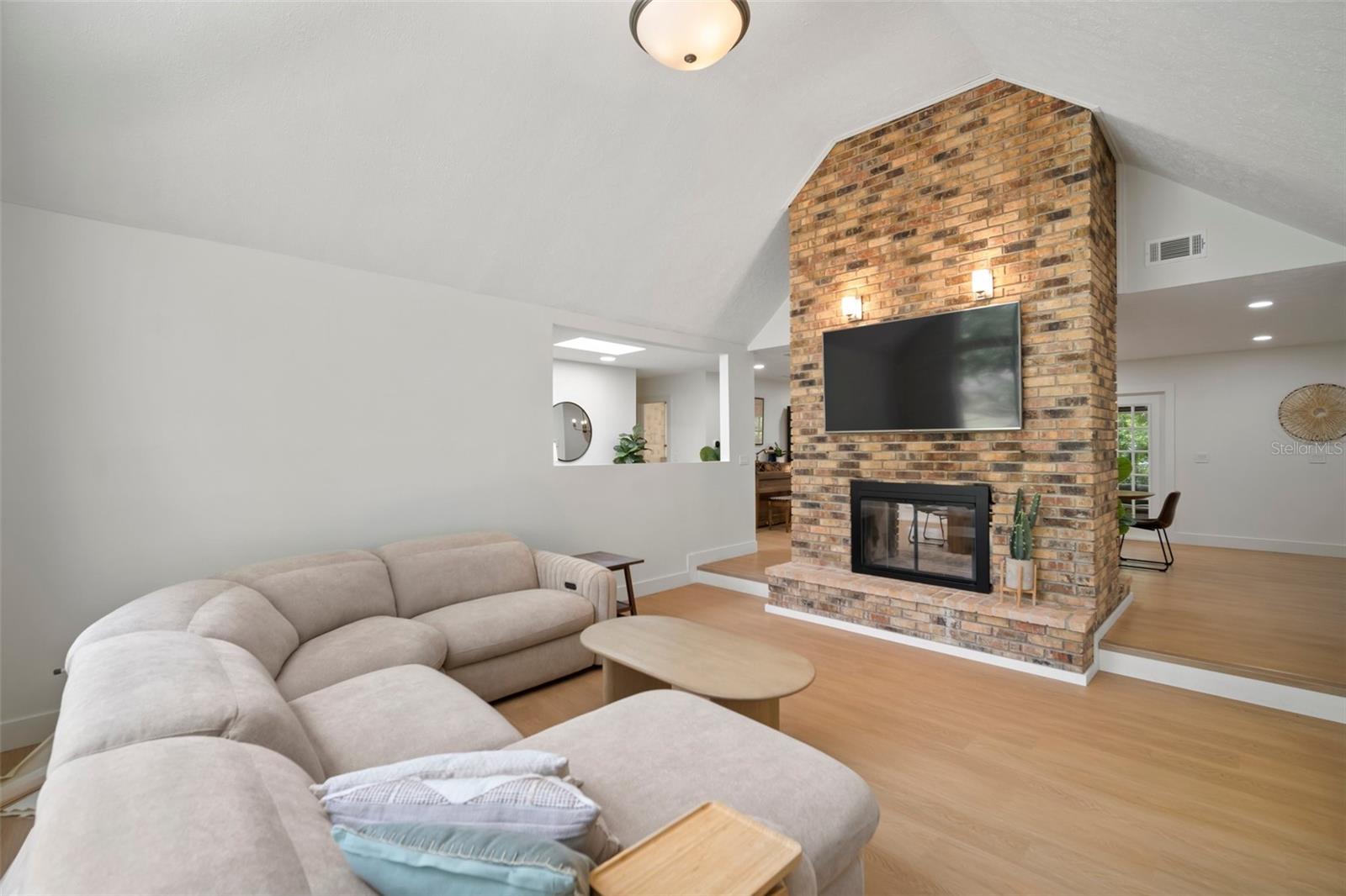 Welcome to your dream home—perfectly located on 1.25 acres in the heart of Lutz, showcasing a top-to-bottom renovation that blends modern luxury with timeless style. This beautifully updated residence offers 3 bedroom with 2 bath in 2264 square feet of exceptional craftsmanship and thoughtful upgrades throughout, making it truly move-in ready. Step inside to discover an open and airy floor plan with luxury vinyl plank flooring that runs seamlessly through the home, creating a warm and inviting atmosphere. Every detail has been considered—from the new interior doors and stylish baseboards to the high-end finishes that create luxury and style throughout. The heart of the home is the fully renovated chef’s kitchen, where you’ll find stunning quartz countertops, custom cabinetry, a sleek tile backsplash, and premium GE Café appliances that combine professional performance with striking design. Family and dining rooms are flanked by a gorgeous double sided brick wood burning fireplace. Both bathrooms have been meticulously remodeled, offering a spa-like retreat with modern tile work, upgraded fixtures, and elegant vanities. Additional upgrades include designer lighting and hardware and fresh neutral paint throughout. Whether you're hosting guests or enjoying a quiet evening in, this home delivers a comfortable casual elegance. Don't miss your chance to own a turnkey home in a prime Lutz location—schedule your private showing today!