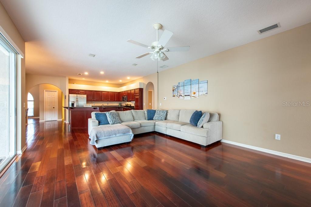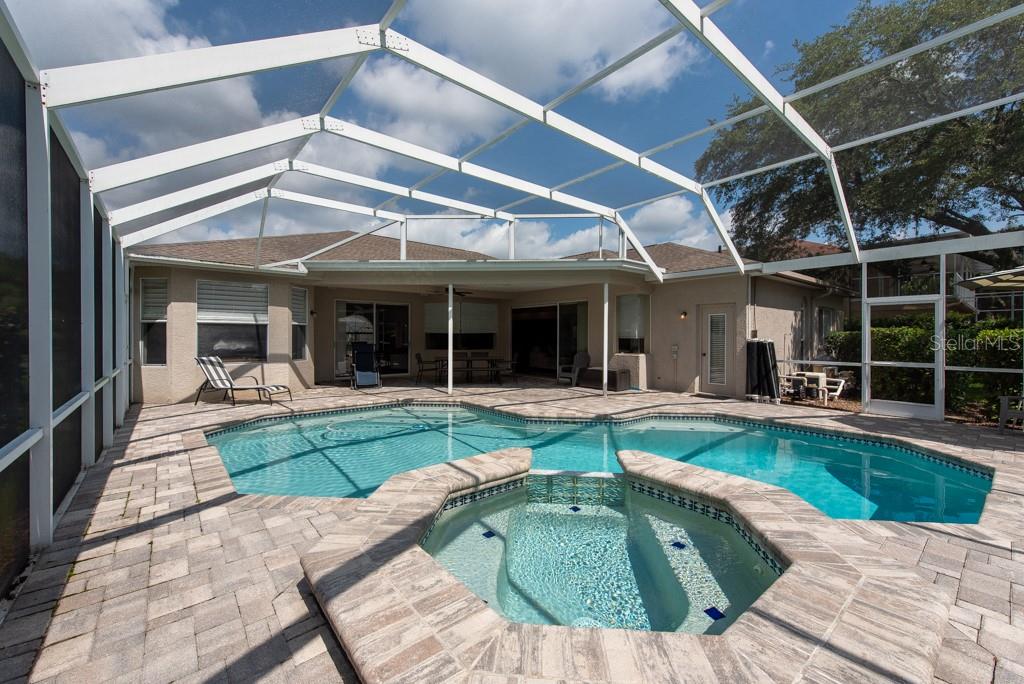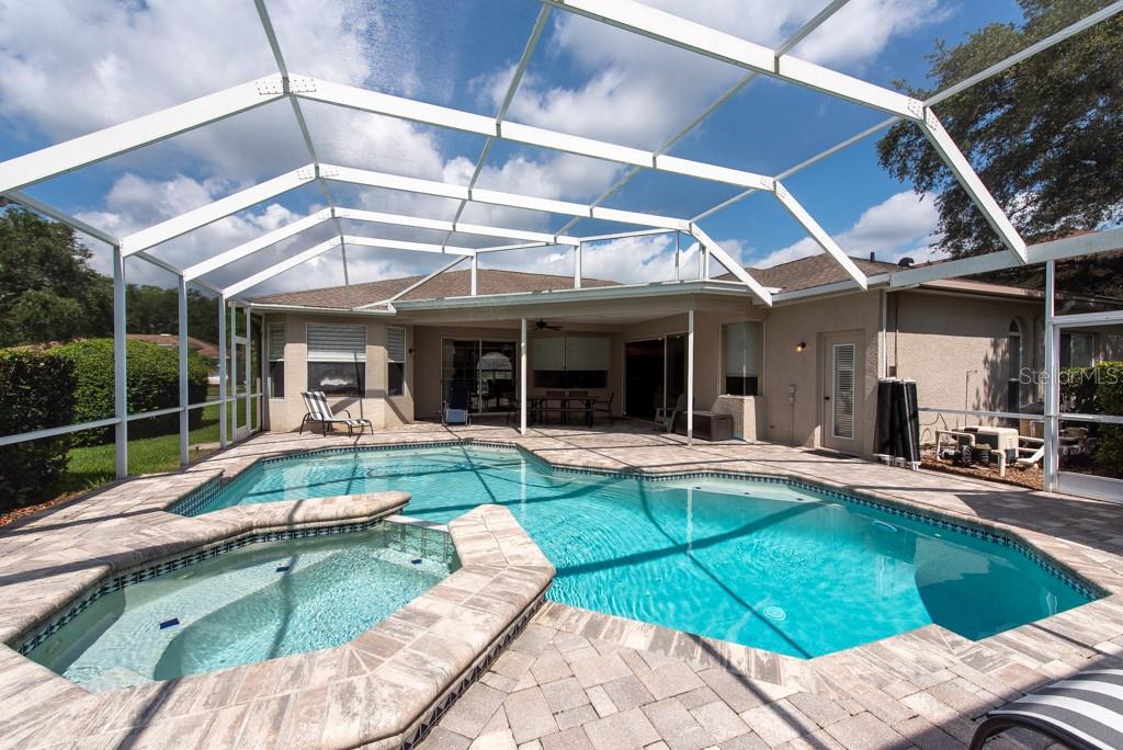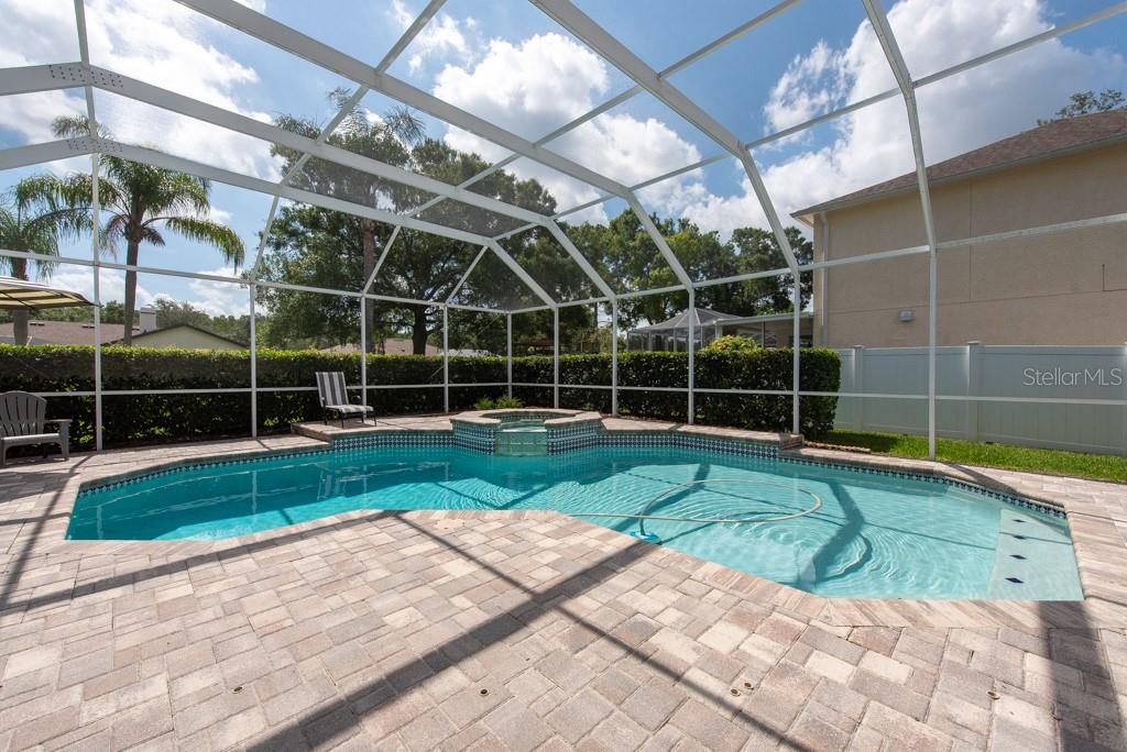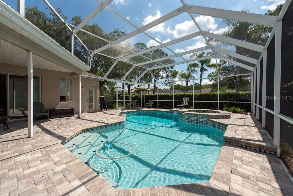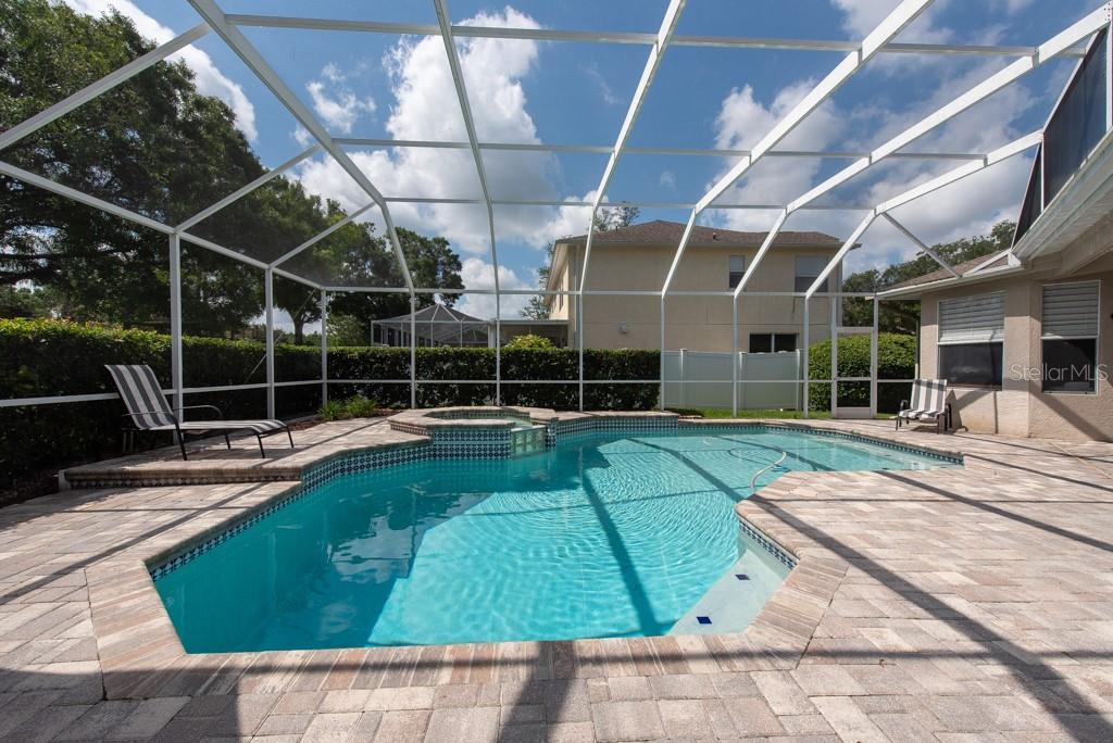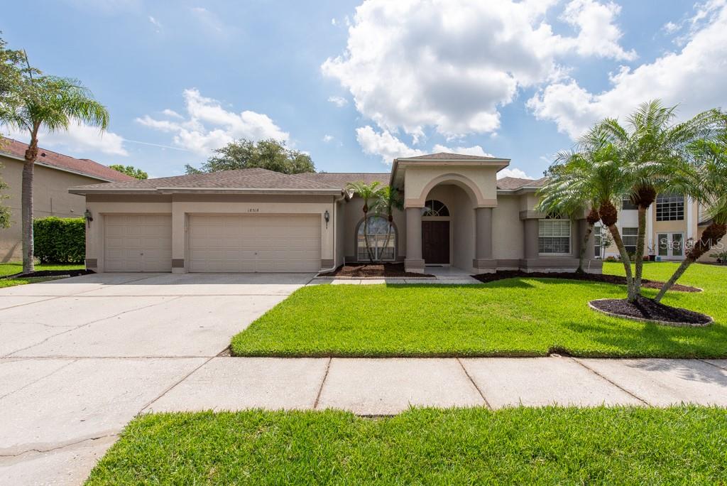 Sunshine, style, and space—this stunning 4-bedroom, 3-bath pool home delivers it all in the sought-after Steinbrenner School District. With 2,574 square feet of beautifully designed living space, a 3-car garage, and a brand-new A/C, every inch of this home is built for comfort and function. Inside, rich wood flooring flows throughout the home, creating warmth and cohesion. The split-bedroom layout offers privacy and flexibility, with updated bathrooms and thoughtful touches throughout. The kitchen stands out with its solid wood cabinetry, breakfast bar, and generous storage—ideal for both everyday meals and hosting a crowd. The primary suite is a true retreat, complete with serene views of the pool, a spacious walk-in closet, and a spa-inspired en-suite featuring wide stone counters, dual sinks, a soaking tub, and a separate glass-enclosed shower. Step outside to your personal resort—an oversized screened-in pool and spa surrounded by a large backyard, perfect for barbecues, birthday parties, or simply relaxing in the Florida sun. Whether you're entertaining friends or letting the family and pets roam, there's plenty of room to spread out and enjoy. Set on a quiet street with low HOA fees and no CDD, this home pairs peace of mind with prime location. Zoned for some of the best schools in the area and meticulously maintained, it’s the kind of place you move into and never want to leave.