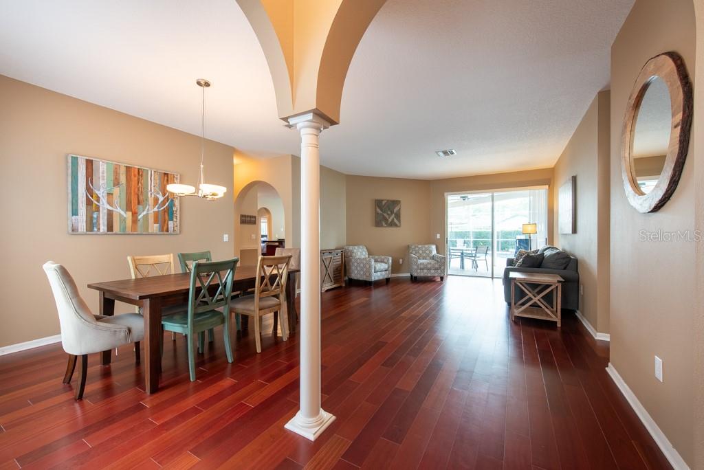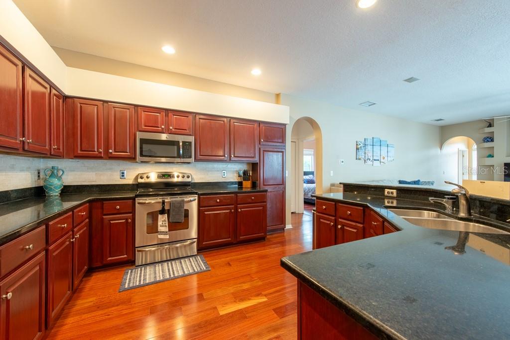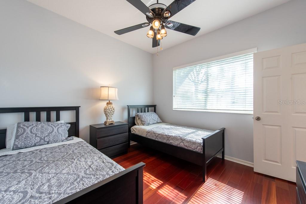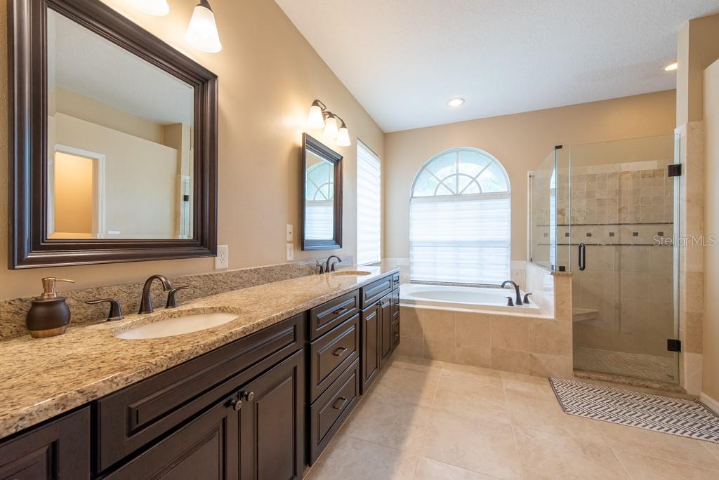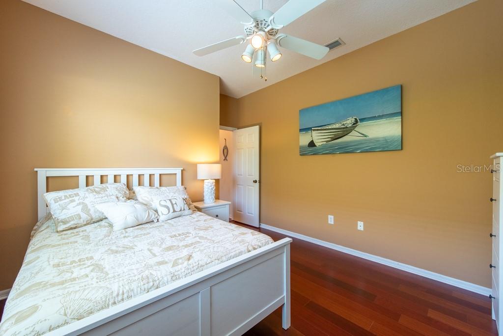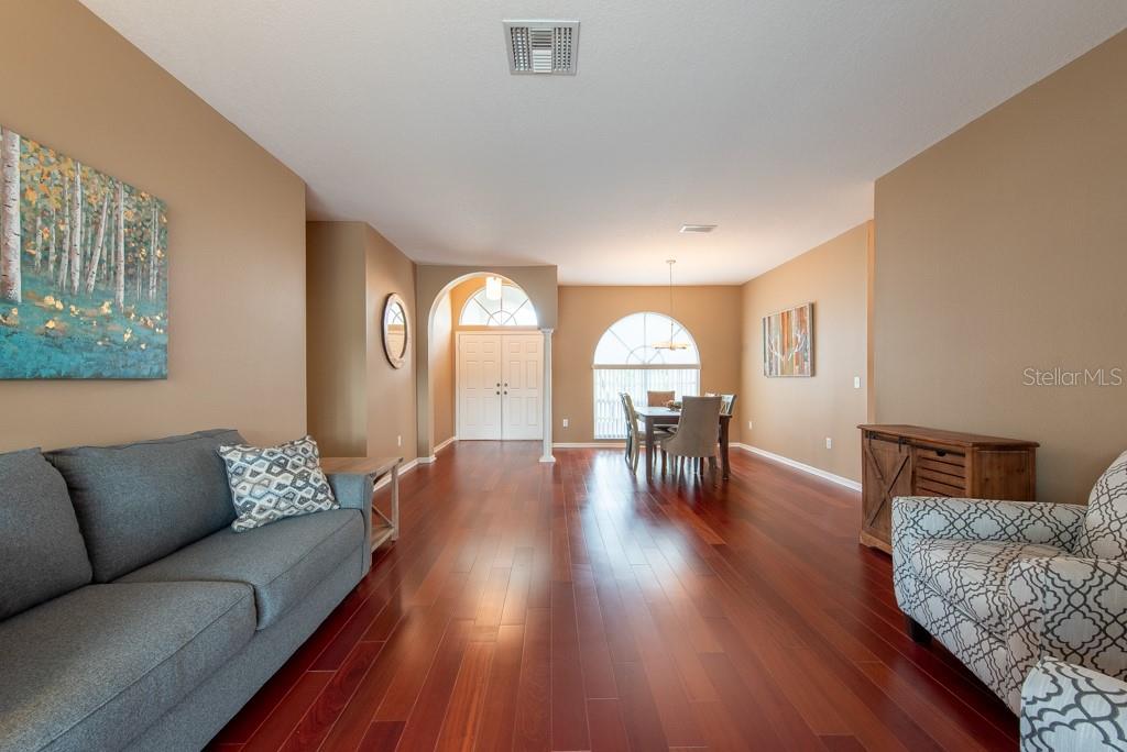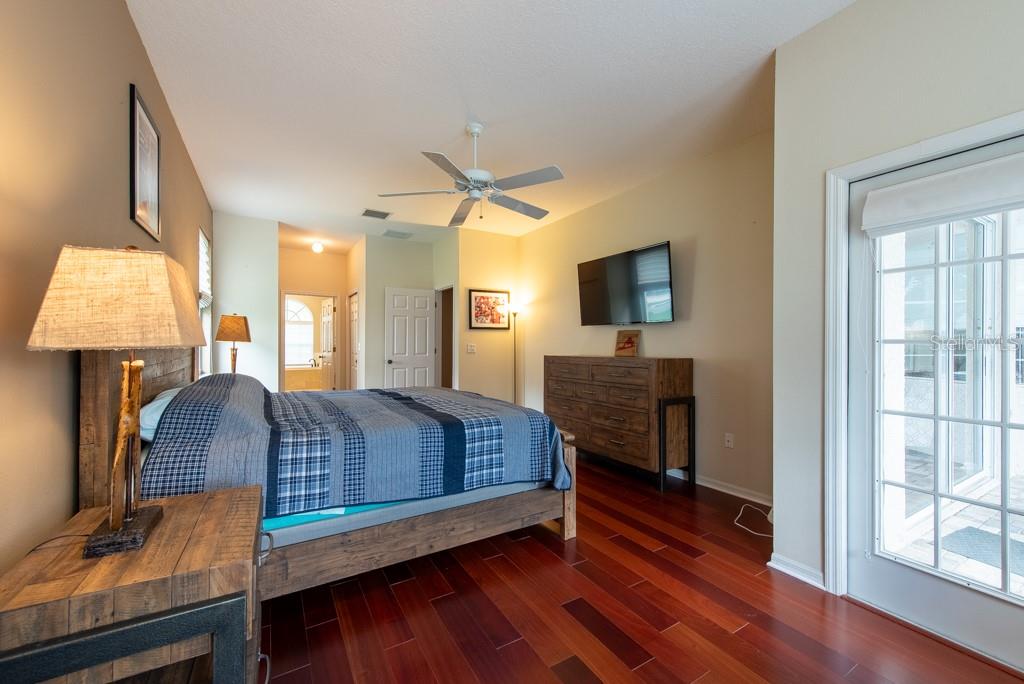 Sunshine, style, and space—this stunning 4-bedroom, 3-bath pool home delivers it all in the sought-after Steinbrenner School District. With 2,574 square feet of beautifully designed living space, a 3-car garage, and a brand-new A/C, every inch of this home is built for comfort and function. Inside, rich wood flooring flows throughout the home, creating warmth and cohesion. The split-bedroom layout offers privacy and flexibility, with updated bathrooms and thoughtful touches throughout. The kitchen stands out with its solid wood cabinetry, breakfast bar, and generous storage—ideal for both everyday meals and hosting a crowd. The primary suite is a true retreat, complete with serene views of the pool, a spacious walk-in closet, and a spa-inspired en-suite featuring wide stone counters, dual sinks, a soaking tub, and a separate glass-enclosed shower. Step outside to your personal resort—an oversized screened-in pool and spa surrounded by a large backyard, perfect for barbecues, birthday parties, or simply relaxing in the Florida sun. Whether you're entertaining friends or letting the family and pets roam, there's plenty of room to spread out and enjoy. Set on a quiet street with low HOA fees and no CDD, this home pairs peace of mind with prime location. Zoned for some of the best schools in the area and meticulously maintained, it’s the kind of place you move into and never want to leave.