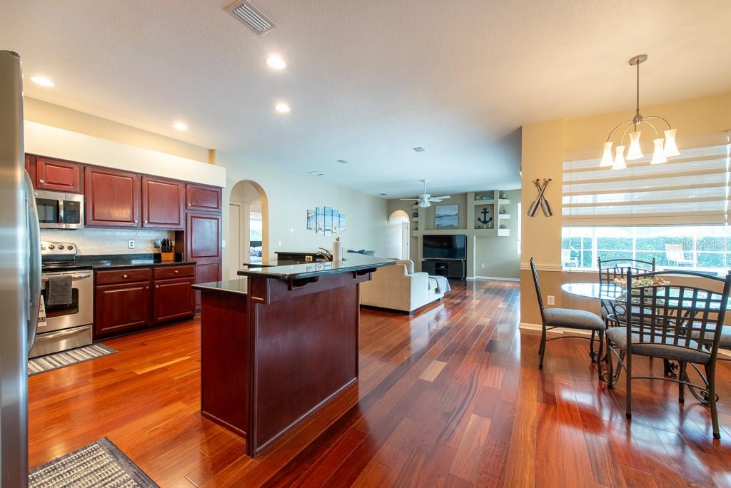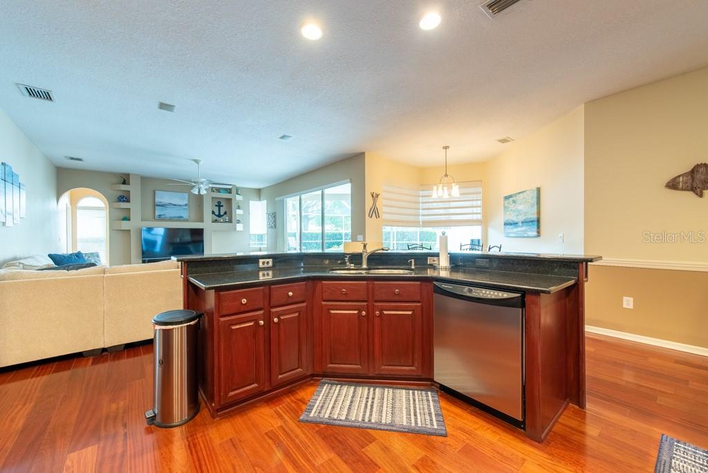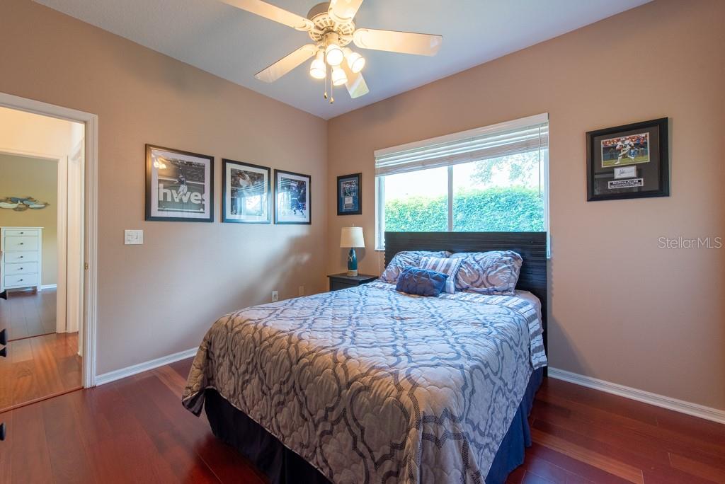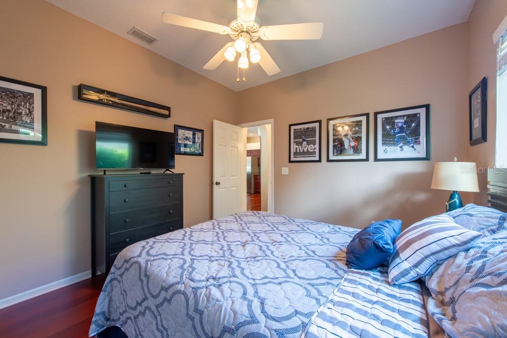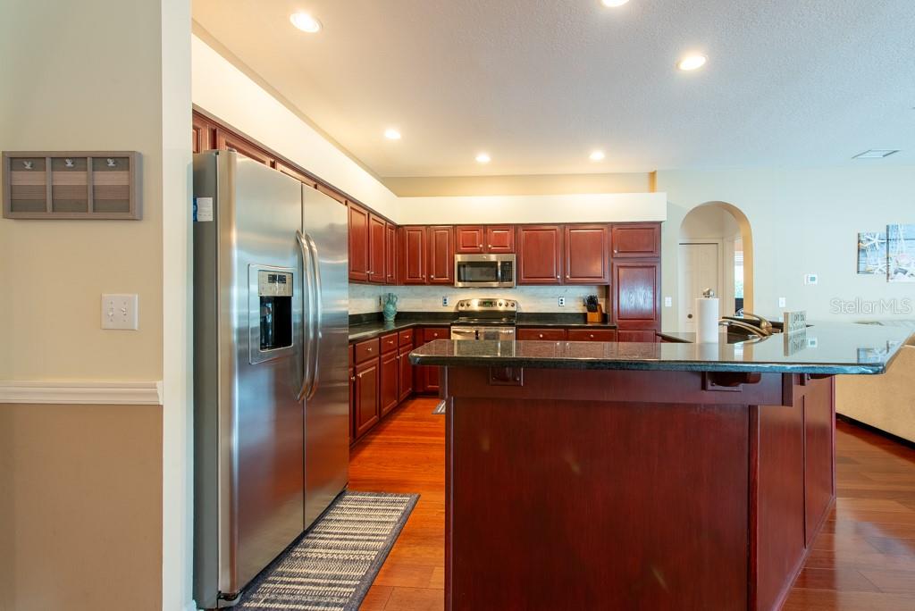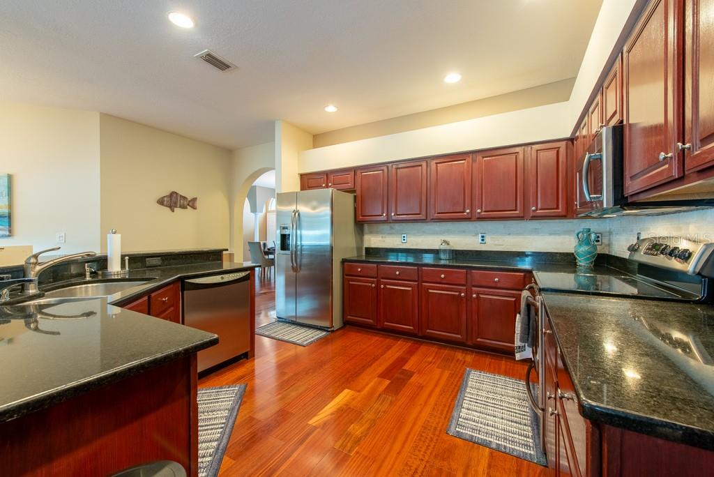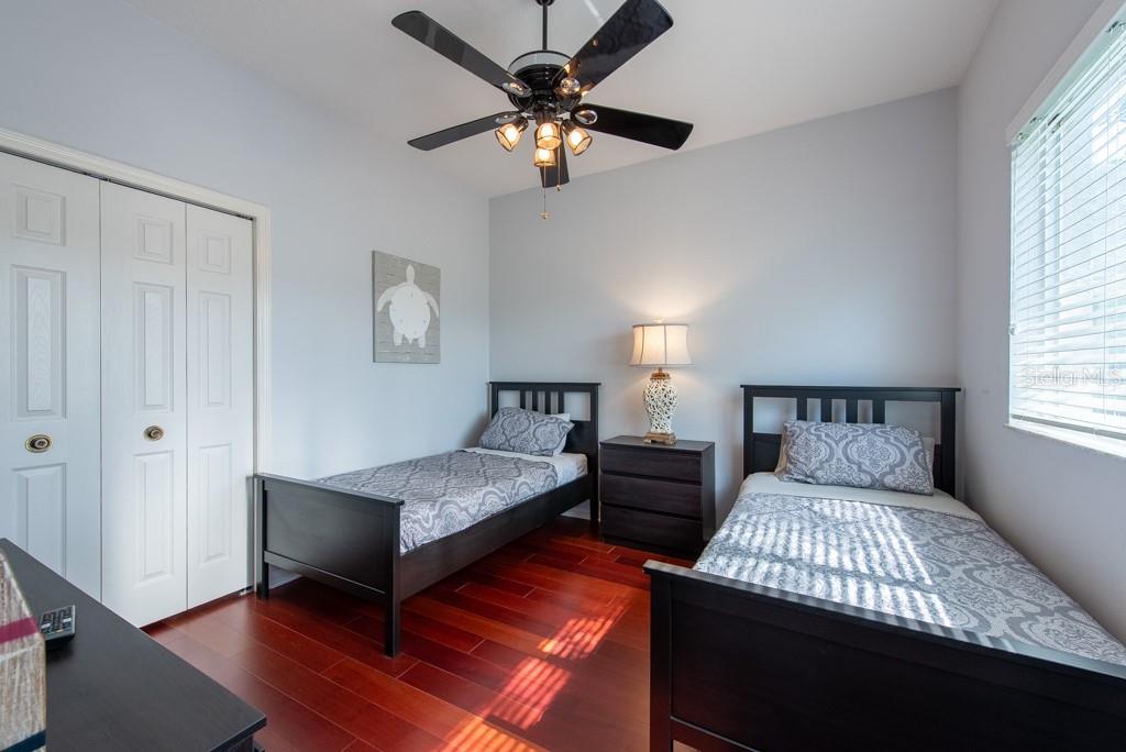Sunshine, style, and space—this stunning 4-bedroom, 3-bath pool home delivers it all in the sought-after Steinbrenner School District. With 2,574 square feet of beautifully designed living space, a 3-car garage, and a brand-new A/C, every inch of this home is built for comfort and function. Inside, rich wood flooring flows throughout the home, creating warmth and cohesion. The split-bedroom layout offers privacy and flexibility, with updated bathrooms and thoughtful touches throughout. The kitchen stands out with its solid wood cabinetry, breakfast bar, and generous storage—ideal for both everyday meals and hosting a crowd. The primary suite is a true retreat, complete with serene views of the pool, a spacious walk-in closet, and a spa-inspired en-suite featuring wide stone counters, dual sinks, a soaking tub, and a separate glass-enclosed shower. Step outside to your personal resort—an oversized screened-in pool and spa surrounded by a large backyard, perfect for barbecues, birthday parties, or simply relaxing in the Florida sun. Whether you're entertaining friends or letting the family and pets roam, there's plenty of room to spread out and enjoy. Set on a quiet street with low HOA fees and no CDD, this home pairs peace of mind with prime location. Zoned for some of the best schools in the area and meticulously maintained, it’s the kind of place you move into and never want to leave.