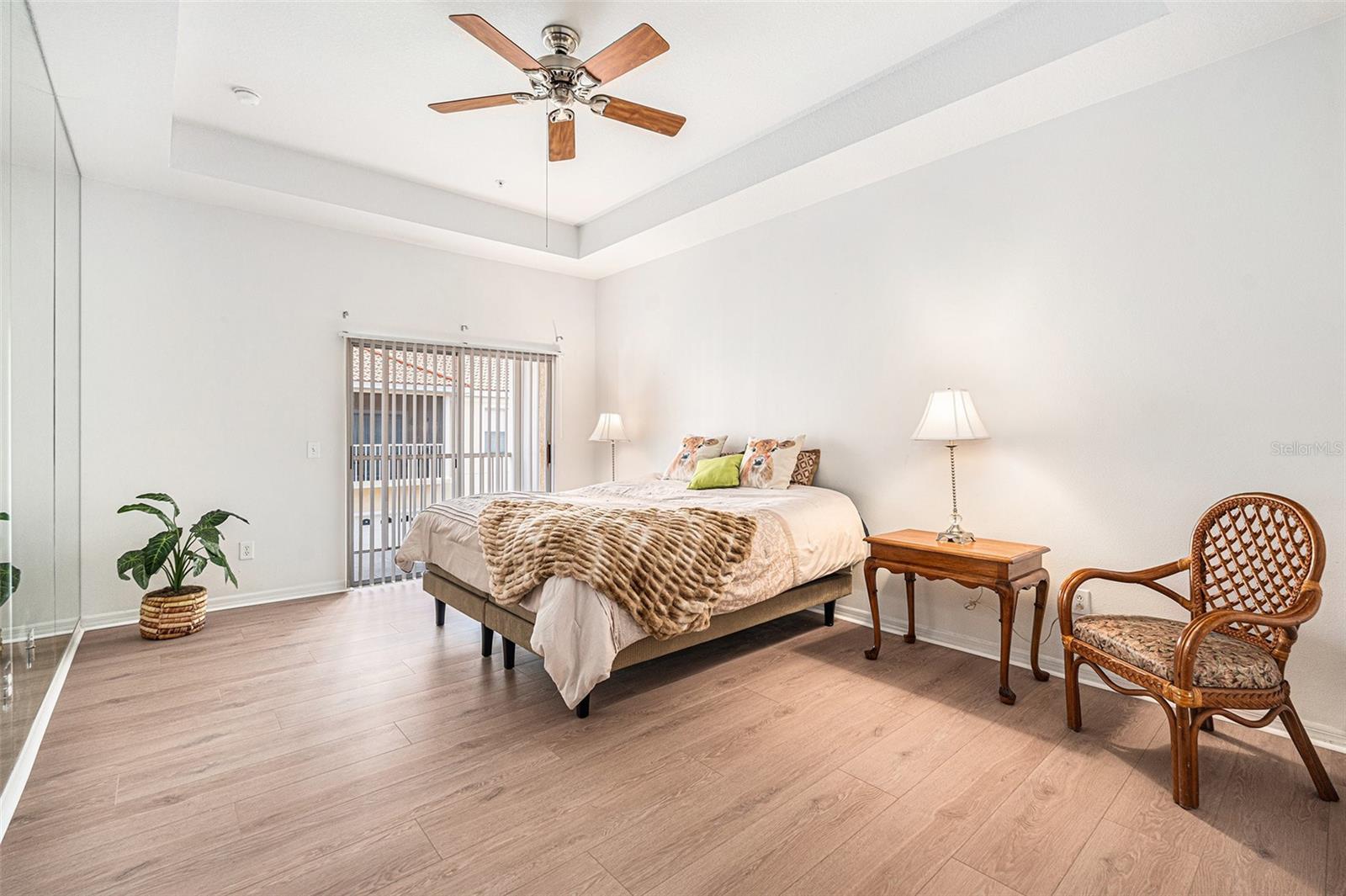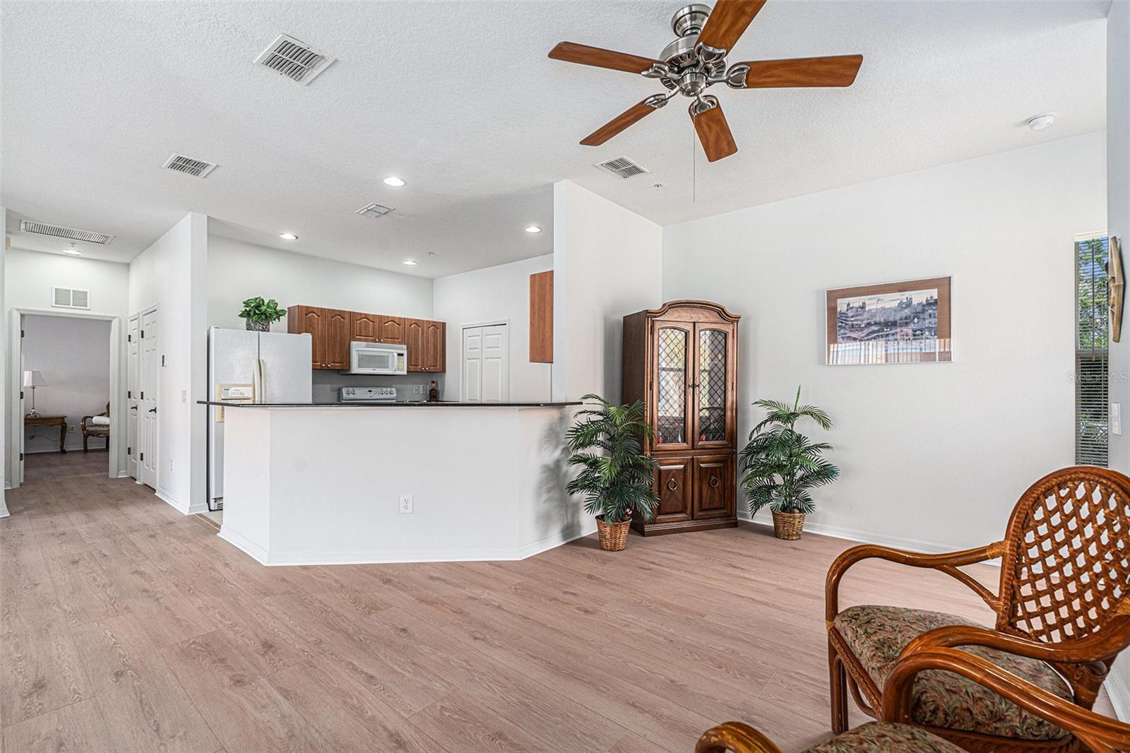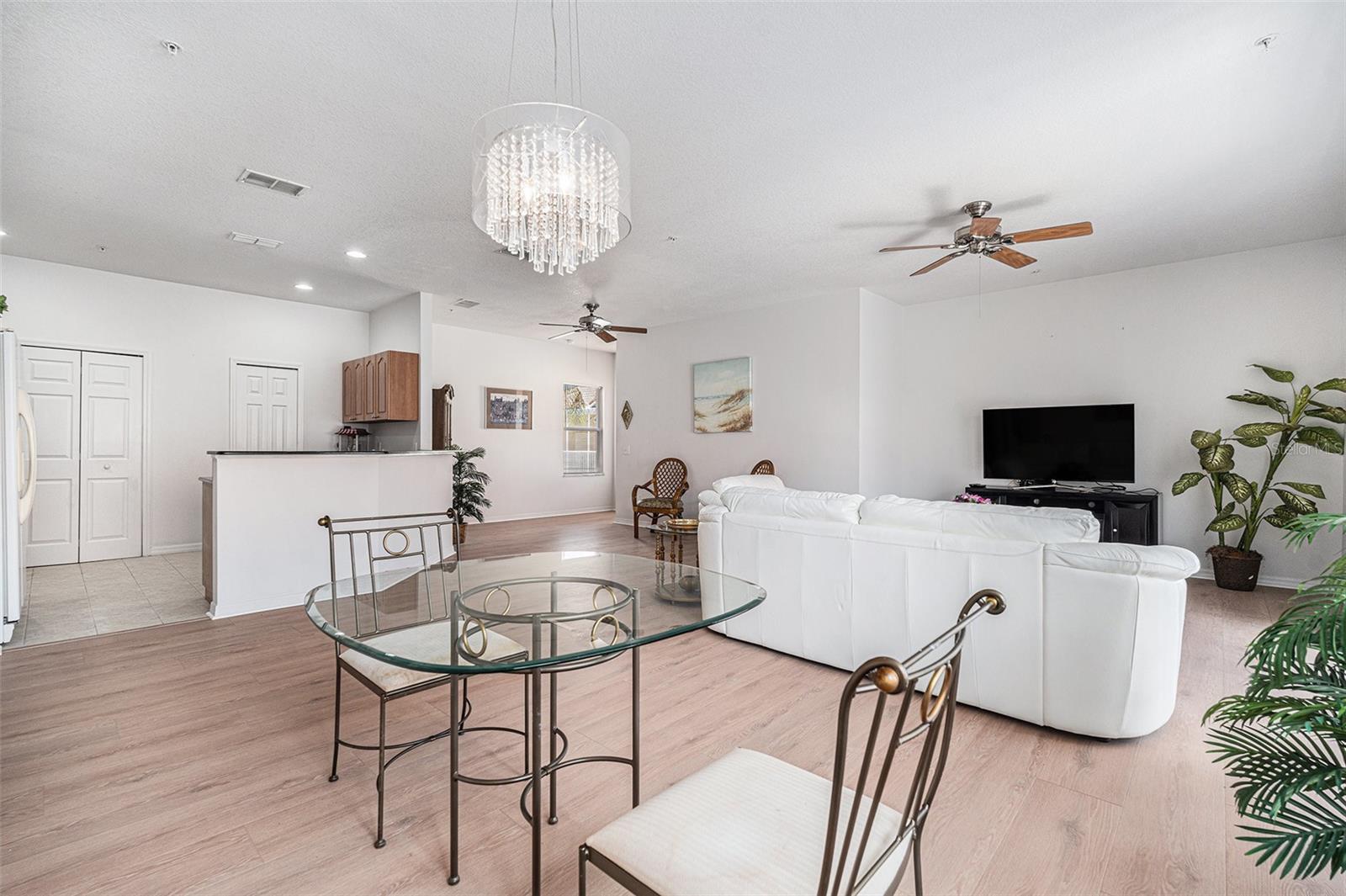 If you enjoy the finer things in life — and a lifestyle with a little more freedom (or a little less clothing) — welcome home. This BEAUTIFULLY UPDATED, GORGEOUS CONDO in The Terraces at Paradise Lakes, a NUDIST/CLOTHING OPTIONAL community, blends modern style with laid-back resort living. Step into the tiled foyer, with direct access to the garage on your left, and head up the stairs featuring newly installed luxury vinyl plank (LVP) flooring. At the top, turn left and enjoy brand-new LVP floors flowing throughout the entire living area — easy on the eyes and underfoot. The open floor plan makes entertaining a breeze. The kitchen boasts granite countertops and a breakfast bar, seamlessly connecting to the spacious living and dining area. Don’t need a formal dining space? Expand your lounge area and make it your own. Slide open the glass doors to bring the outside in and create even more room for guests to mingle. Down the hallway, you'll find a guest bedroom and full bath, followed by a roomy primary suite with dual vanities, a soaking tub, and a separate shower — your personal spa retreat. Recent updates include a NEW A/C, NEW FLOORING, and a NEW ROOF. The one-car garage also has space for a second vehicle just outside. Whether you're entertaining friends or simply enjoying the freedom to be yourself, this condo checks all the boxes. The Terraces and Paradise Lakes are ***NUDIST/CLOTHING OPTIONAL communities**