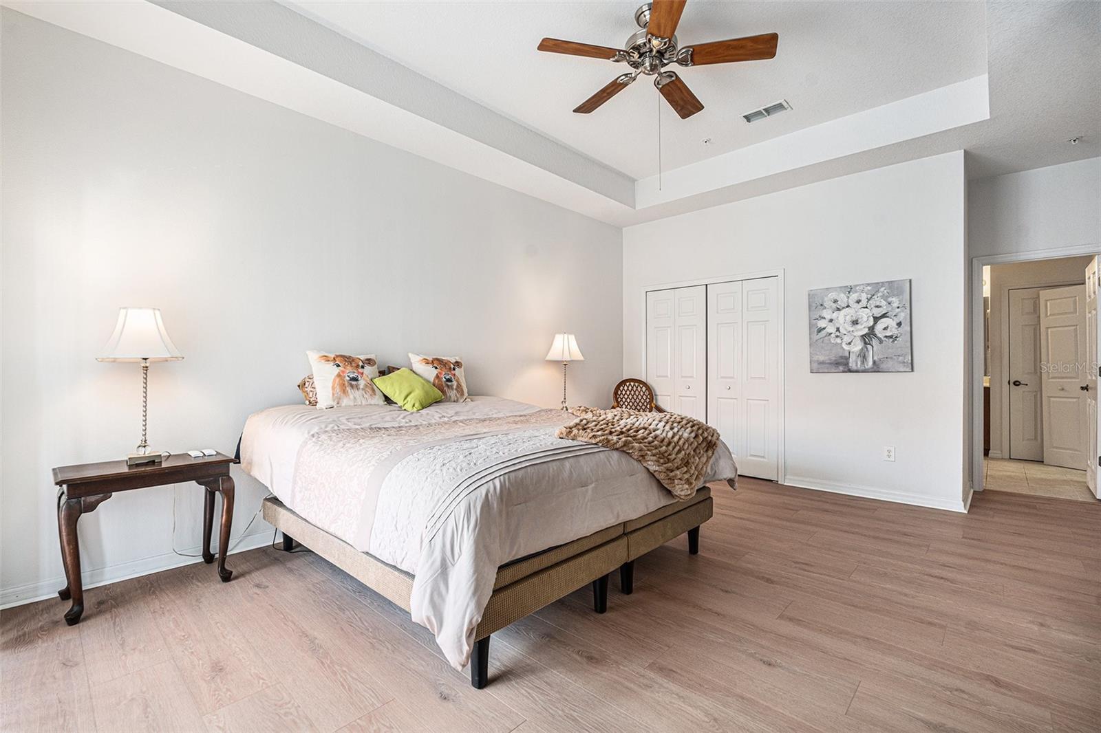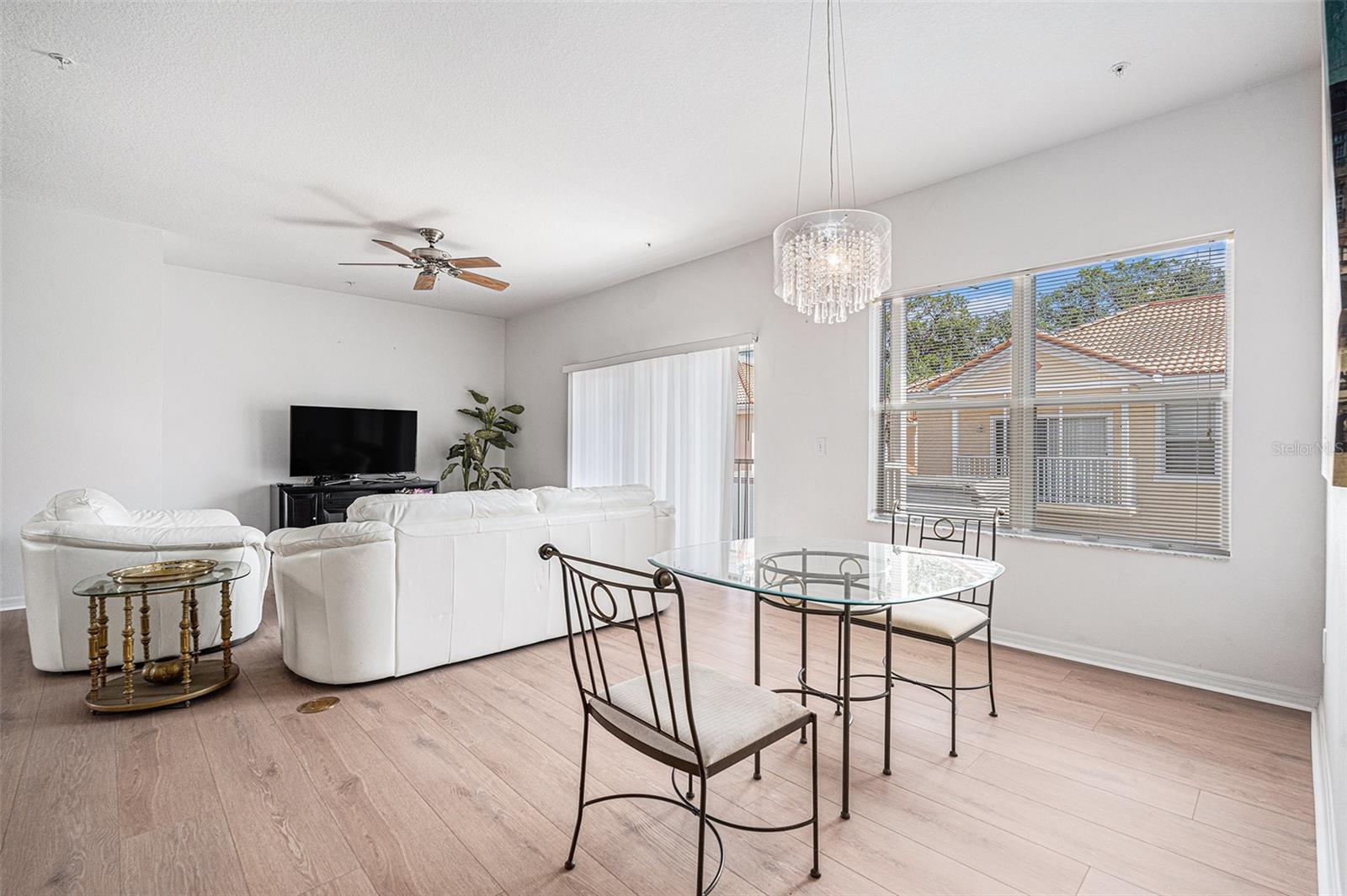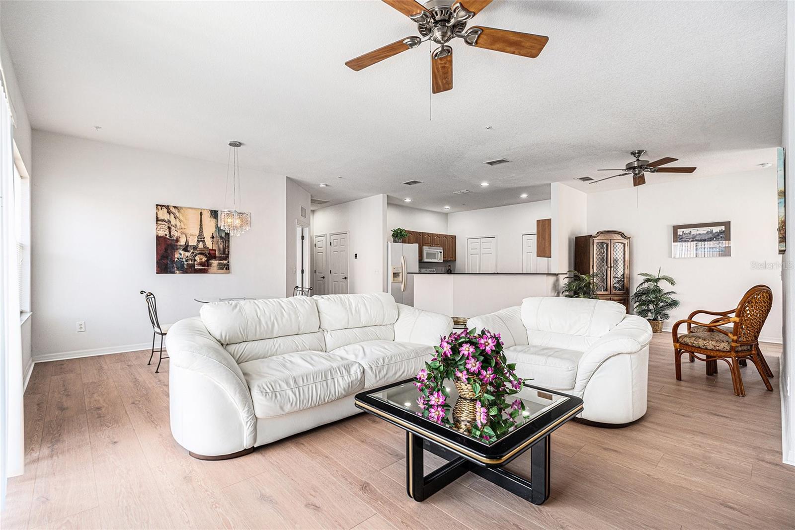If you enjoy the finer things in life — and a lifestyle with a little more freedom (or a little less clothing) — welcome home. This BEAUTIFULLY UPDATED, GORGEOUS CONDO in The Terraces at Paradise Lakes, a NUDIST/CLOTHING OPTIONAL community, blends modern style with laid-back resort living. Step into the tiled foyer, with direct access to the garage on your left, and head up the stairs featuring newly installed luxury vinyl plank (LVP) flooring. At the top, turn left and enjoy brand-new LVP floors flowing throughout the entire living area — easy on the eyes and underfoot. The open floor plan makes entertaining a breeze. The kitchen boasts granite countertops and a breakfast bar, seamlessly connecting to the spacious living and dining area. Don’t need a formal dining space? Expand your lounge area and make it your own. Slide open the glass doors to bring the outside in and create even more room for guests to mingle. Down the hallway, you'll find a guest bedroom and full bath, followed by a roomy primary suite with dual vanities, a soaking tub, and a separate shower — your personal spa retreat. Recent updates include a NEW A/C, NEW FLOORING, and a NEW ROOF. The one-car garage also has space for a second vehicle just outside. Whether you're entertaining friends or simply enjoying the freedom to be yourself, this condo checks all the boxes. The Terraces and Paradise Lakes are ***NUDIST/CLOTHING OPTIONAL communities**
