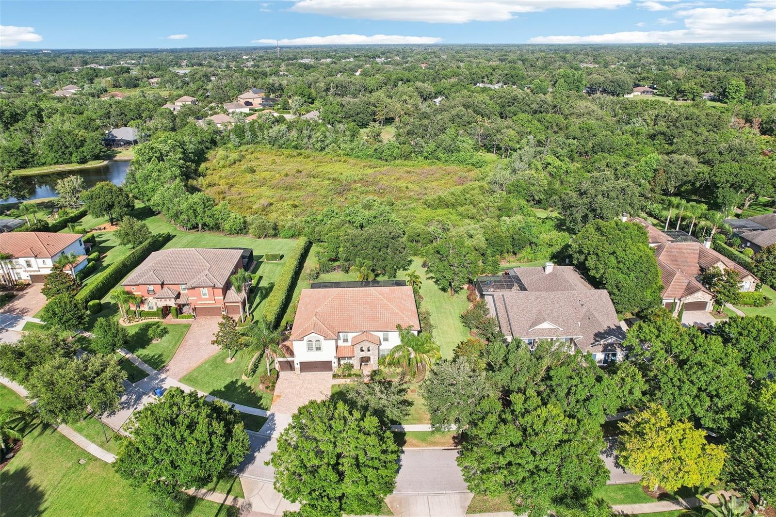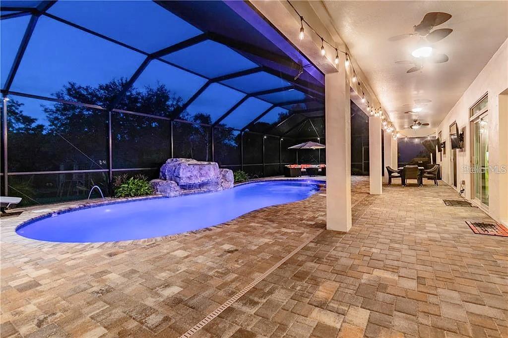 One or more photo(s) has been virtually staged. Welcome to 19711 Wellington Manor Blvd, an extraordinary 7-bedroom, 4-bathroom custom-built estate nestled within the exclusive gated community of Wellington Manor in Lutz, Florida. Spanning 4,742 square feet and set on nearly half an acre of pristine conservation land, this 2014 masterpiece seamlessly blends timeless elegance with modern sophistication. From the moment you step through the grand double doors, you’re greeted by soaring ceilings, refined architectural details, and an open-concept design that flows effortlessly from formal living spaces to relaxed family areas. The chef’s kitchen is a true showstopper, featuring top-of-the-line appliances, custom cabinetry, granite countertops, and an expansive island perfect for entertaining. The luxurious primary suite offers a serene retreat with direct access to the lanai, a spa-like en-suite bath with a soaking tub and walk-in shower, and a generous walk-in closet. Designed for both grandeur and comfort, the home includes seven spacious bedrooms, four full baths, a four-car garage, energy-efficient systems, a whole-house water purification system, and integrated smart home features for ultimate convenience. Step outside to your private outdoor oasis, complete with a heated saltwater pool and spa, a screened enclosure, and a covered lanai ideal for year-round entertaining and tranquil relaxation. Perfectly situated near top-rated schools, premier shopping, and major highways, this exquisite estate offers the best of luxury living in a coveted location. Experience unparalleled quality, space, and privacy—welcome to a residence that truly redefines Florida elegance.