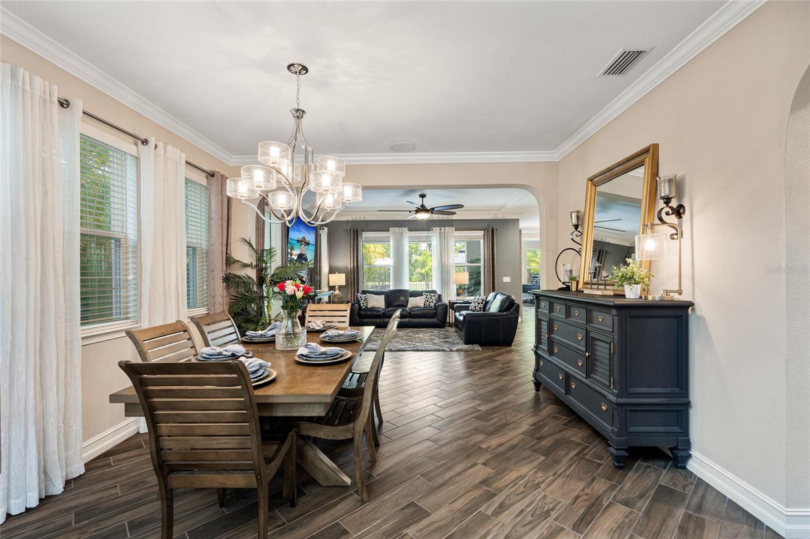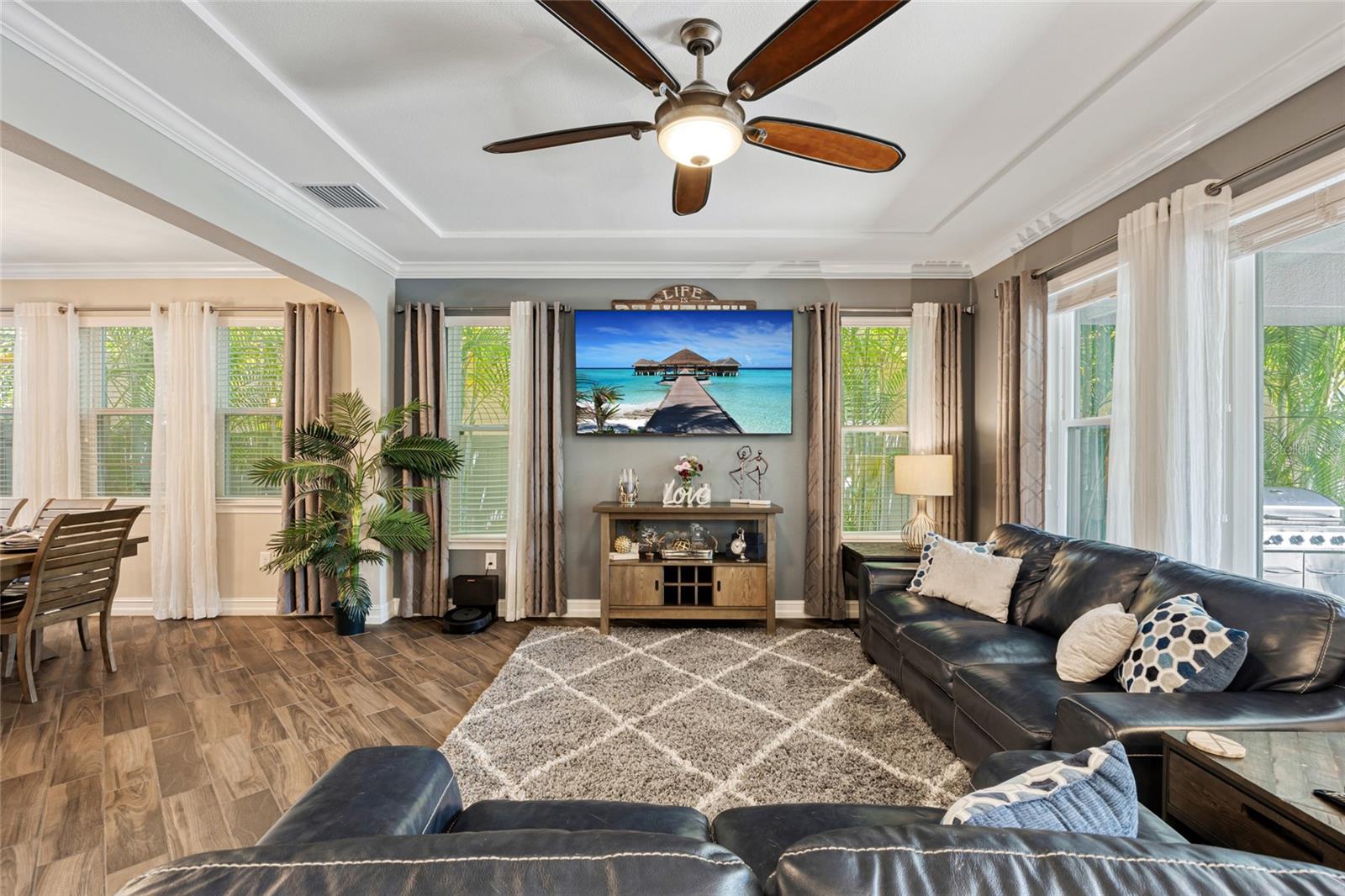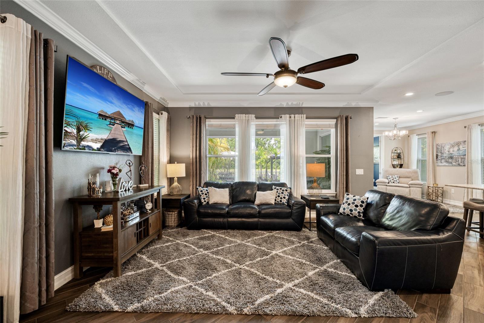 Welcome to your dream home in the highly sought-after gated community of The Promenade At The Lake Park! This stunning 4-bedroom, 3-bathroom home offers the perfect blend of luxury, comfort, and privacy. As you enter, you're greeted by soaring ceilings, elegant archways, and an abundance of natural light. The open floor plan features a formal dining room, a spacious living area, and a chef's kitchen complete with quartz countertops, stainless steel appliances, a large center island, and wood cabinetry - perfect for entertaining or family gatherings. Retreat to the primary suite boasting coffered ceilings, sitting area, large walk-in closets and a spa-like ensuite bathroom. Step outside to your private covered lanai, ideal for enjoying Florida's beautiful weather all year round. Enjoy a glass of wine in the heated hot tub, shaded and protected under the gazebo. Patio has been plumbed along with gas and electric hook-up for outdoor kitchen. Additional highlights include a high-tech whole home surround sounds system, a 3-car garage, dedicated home office or bonus room, concrete tile roof, and low HOA fees with no CDD. Conveniently located near top-rated schools, shopping, dining, and major highways for an easy commute to Tampa, Tampa Airport and St. Petersburg. Don't miss your opportunity to own this exquisite property in one of Lutz's premier neighborhoods.